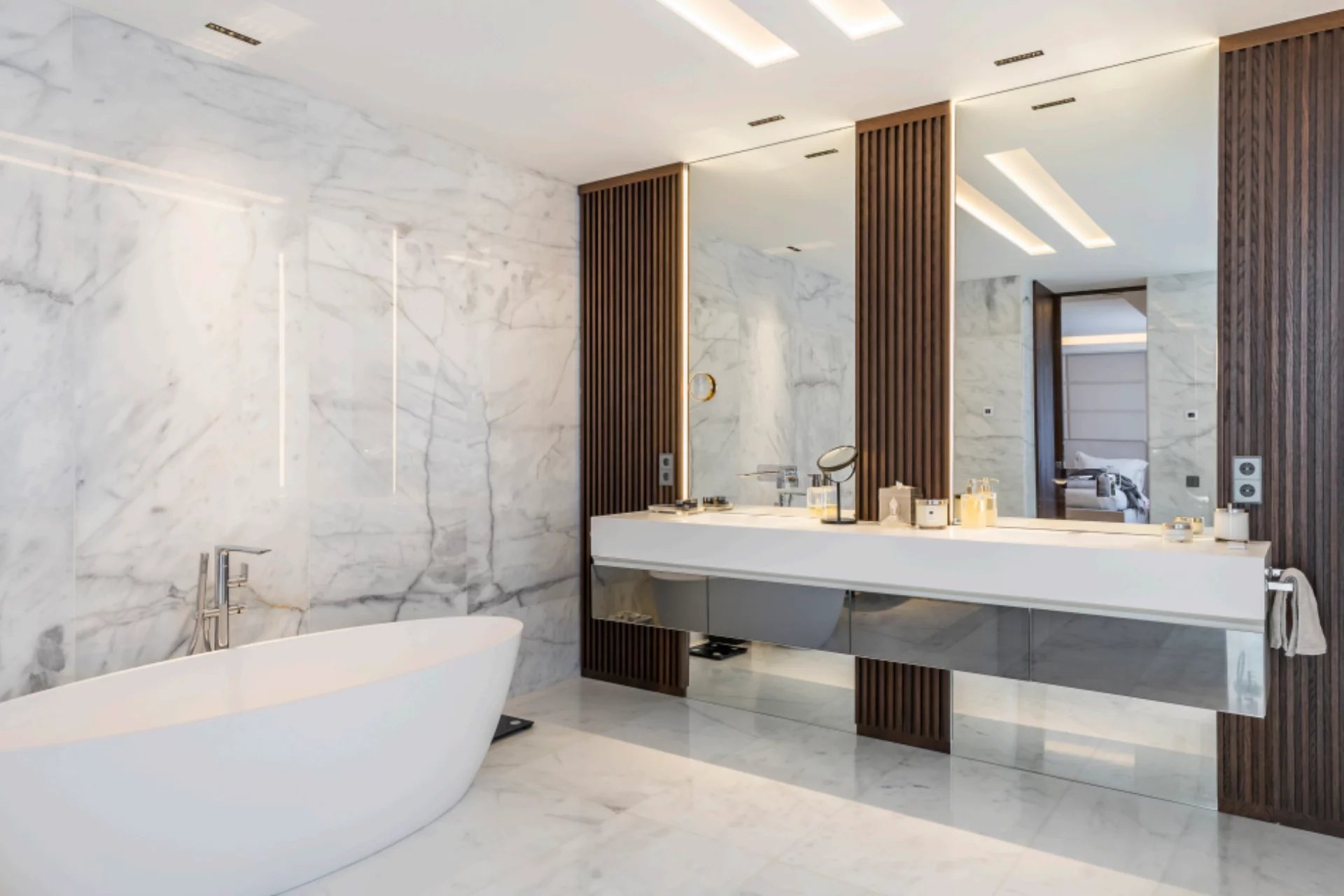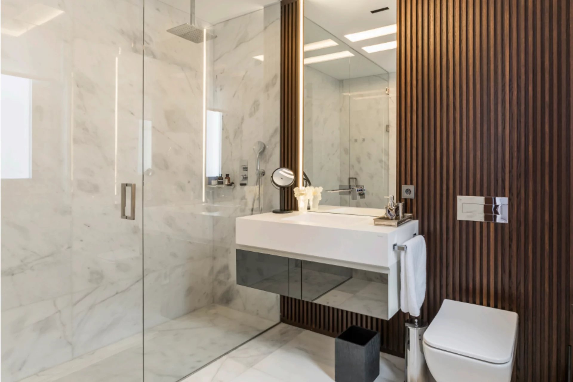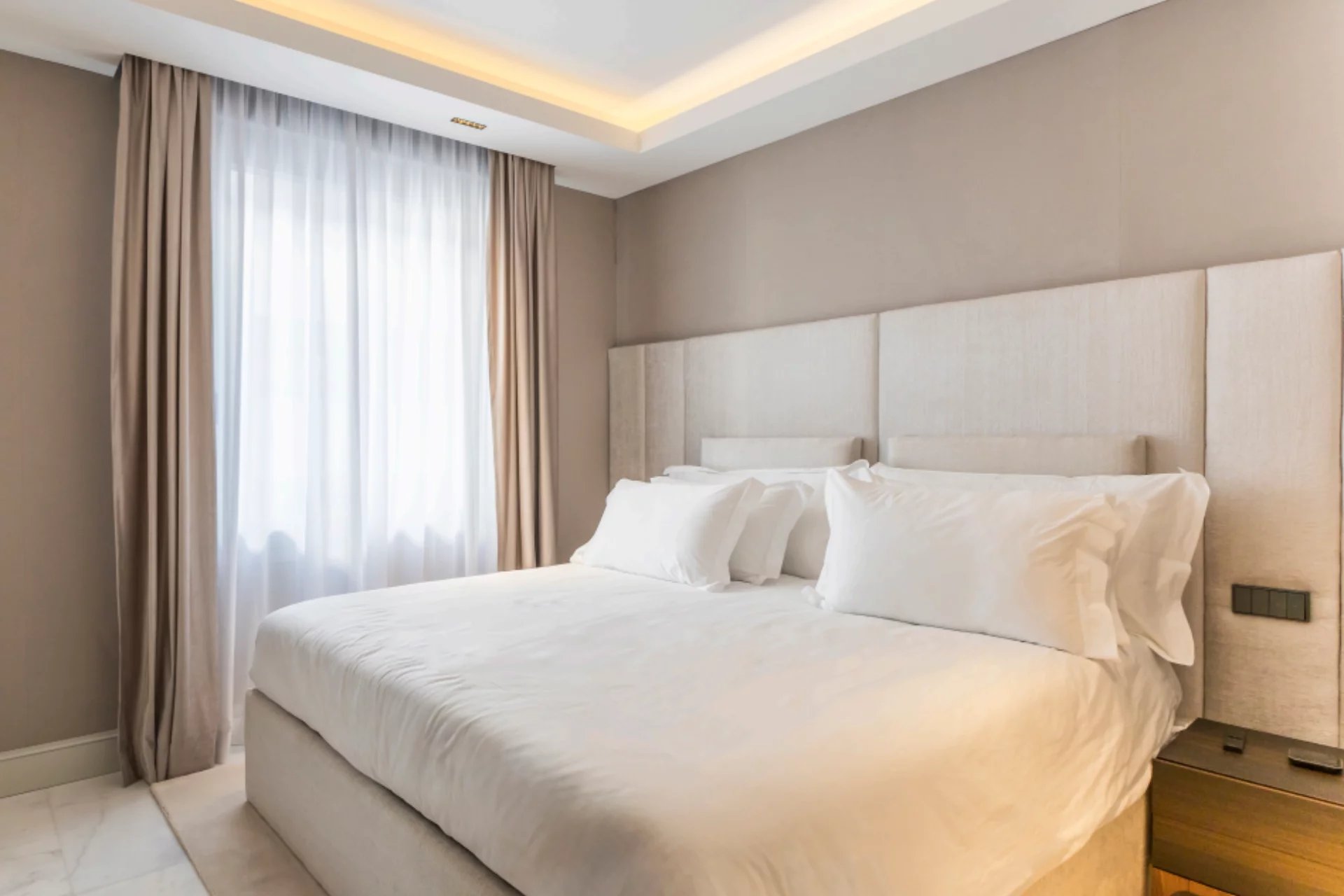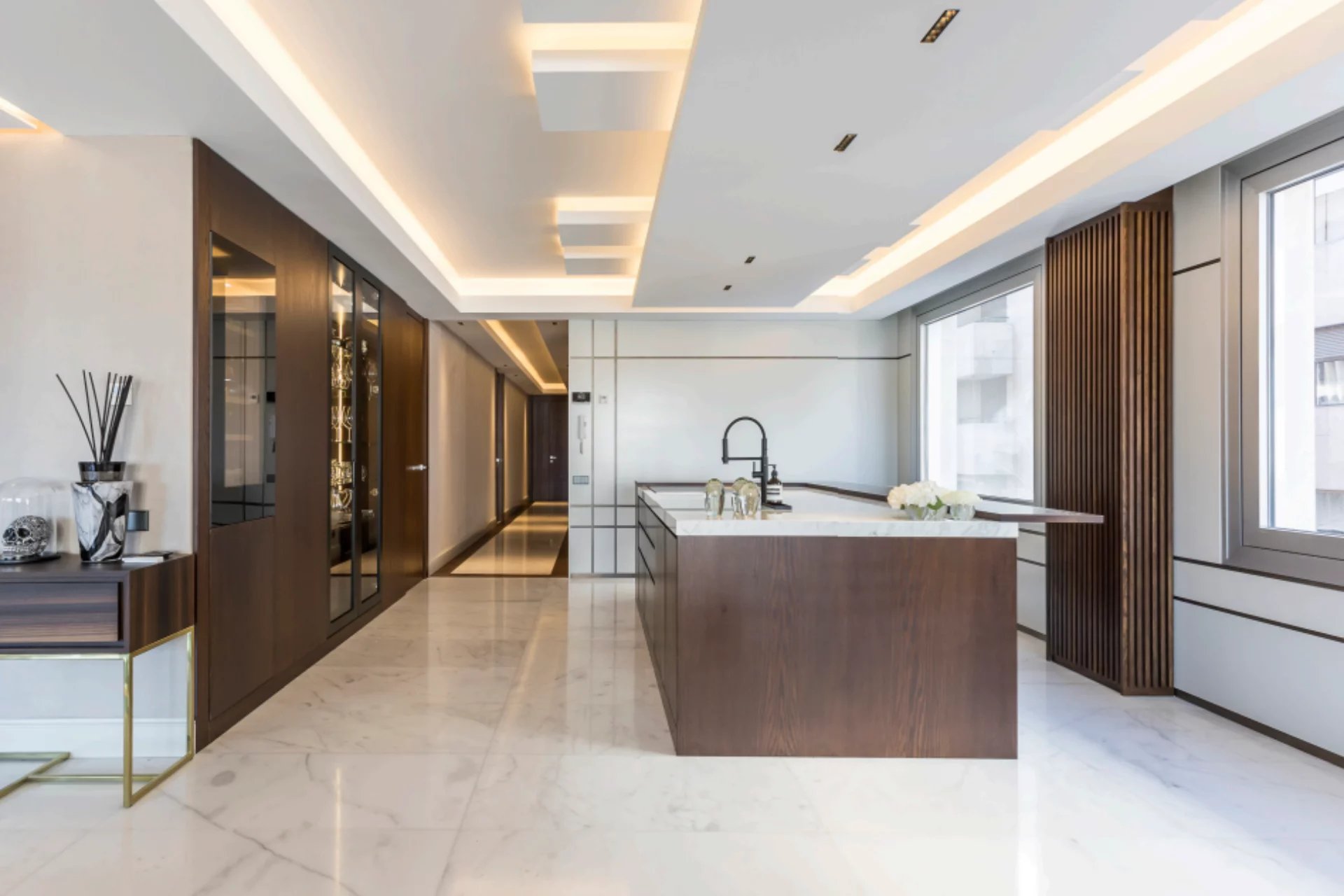 Located in one of the best areas of Madrid, this exceptional property combines international modern design with top-quality finishes. Created by a renowned interior design studio, it features noble materials such as dolomite marble and natural oak wood, giving the home a unique character.