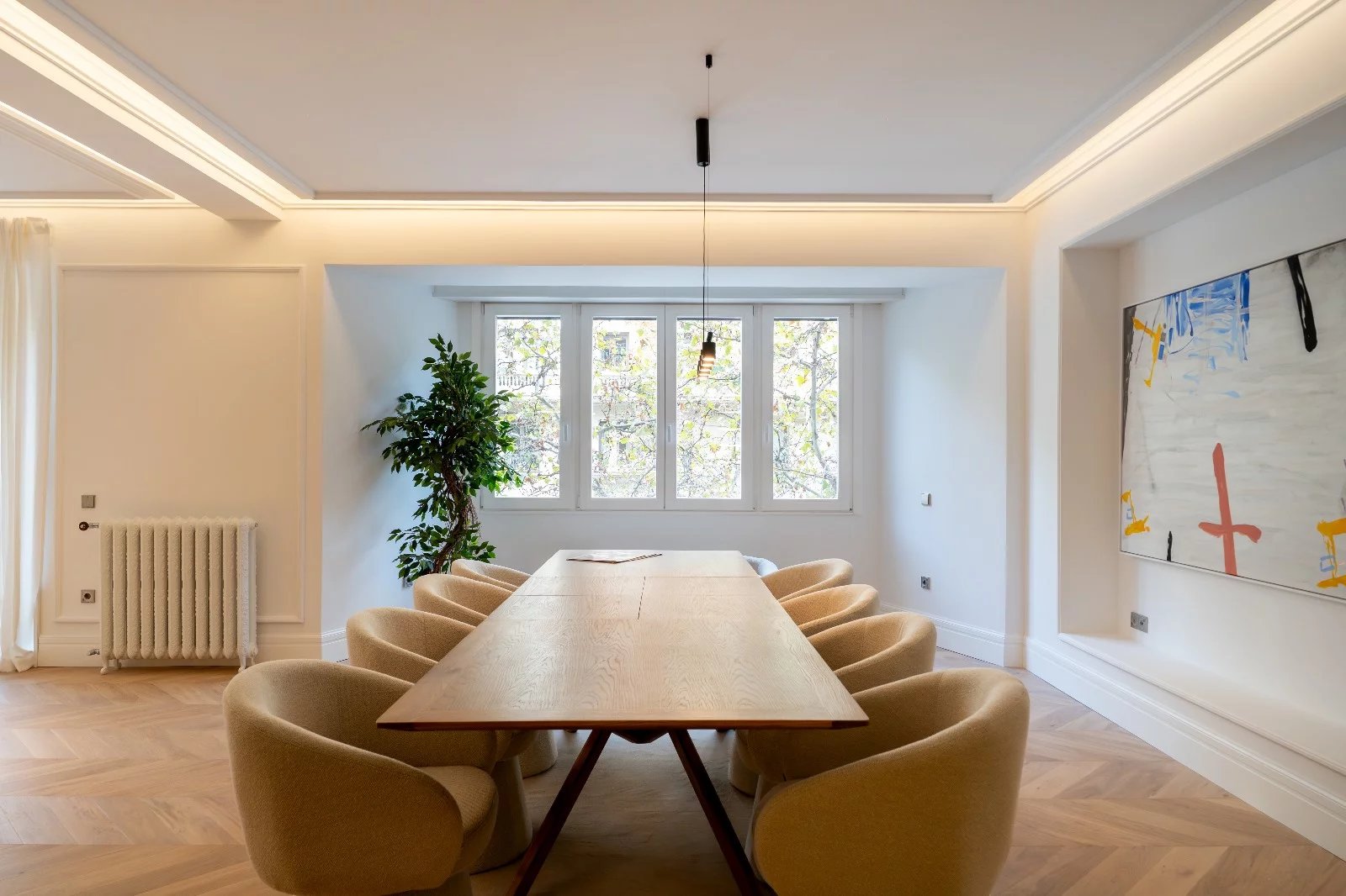 Learn moreThe main entrance is through a majestic double door, which gives it character from the very first moment. The spaces are spacious, bright and sophisticated, thanks to its large windows open to the street.