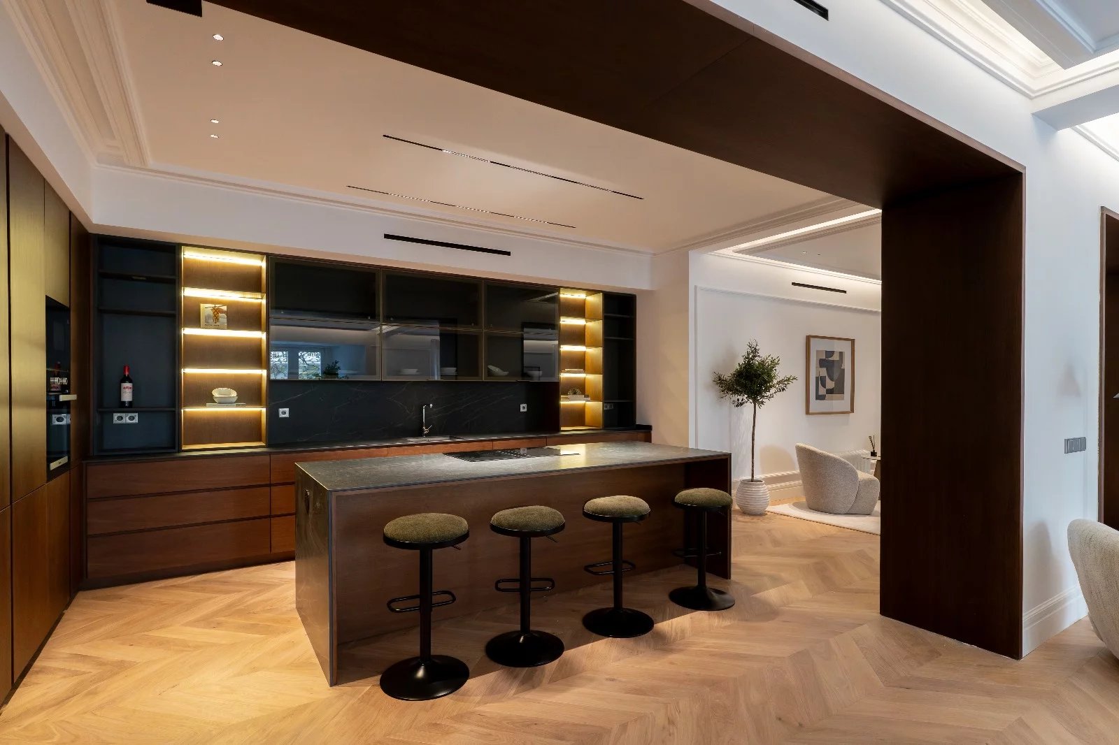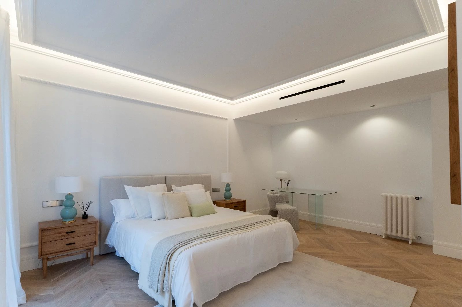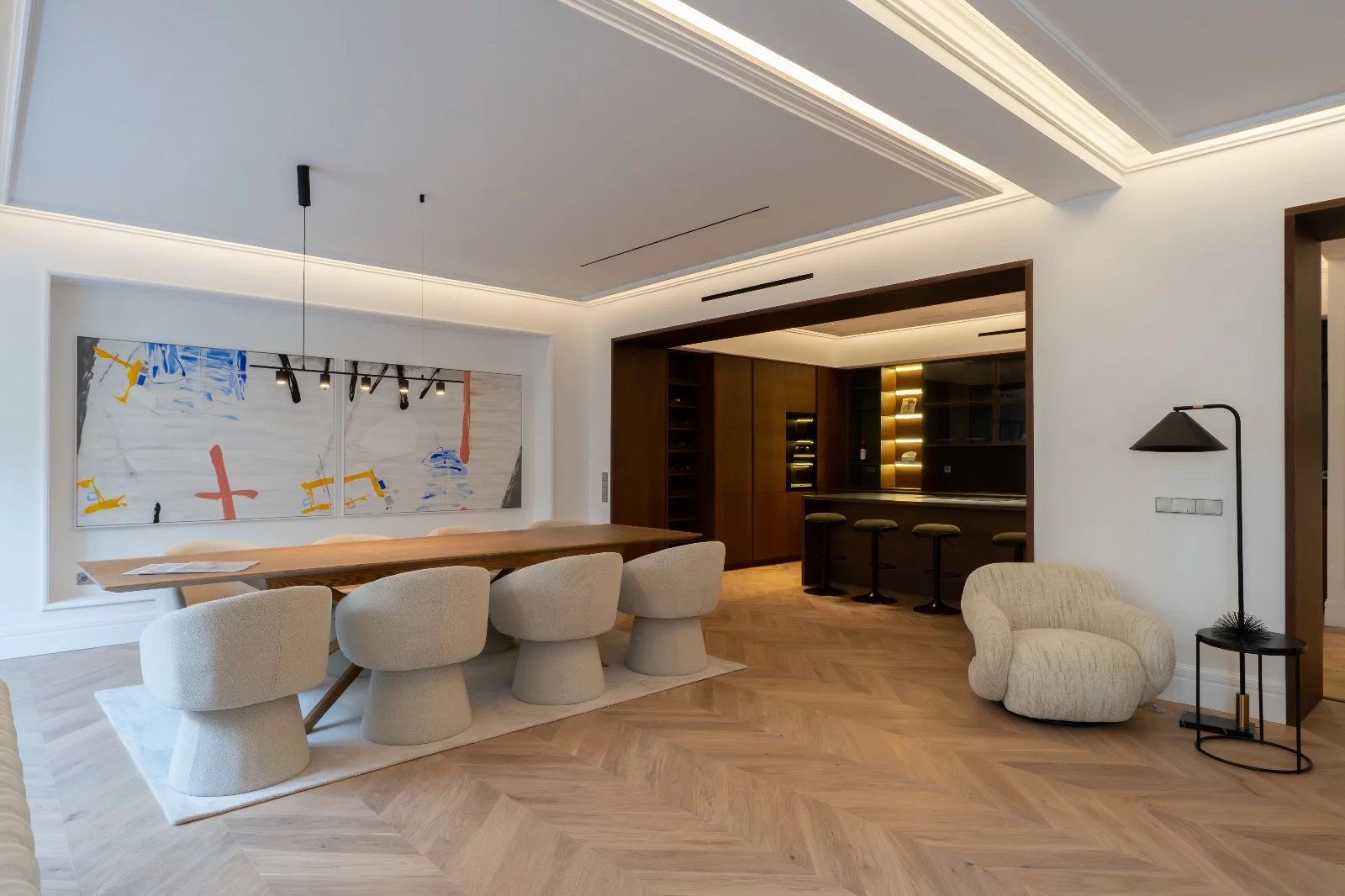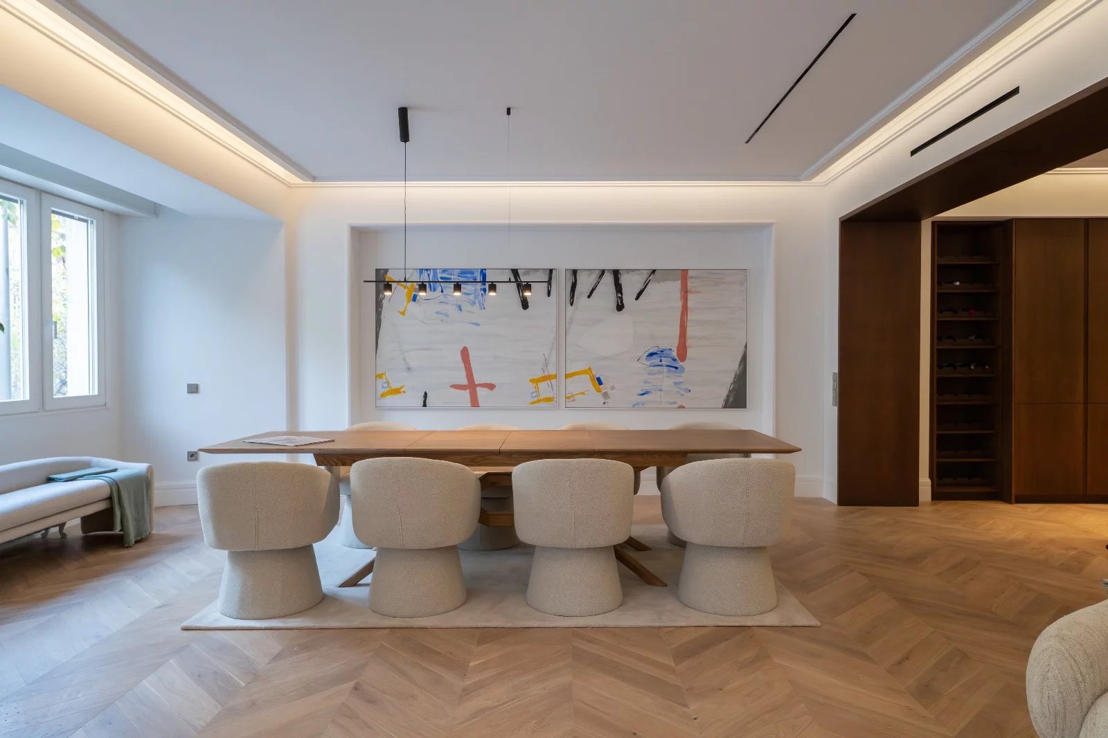 This exceptional residence stands out for its large size, its three-meter high ceilings and for occupying the entire second floor of the building. It also has a completely independent apartment that provides privacy for both visitors and other family members.
