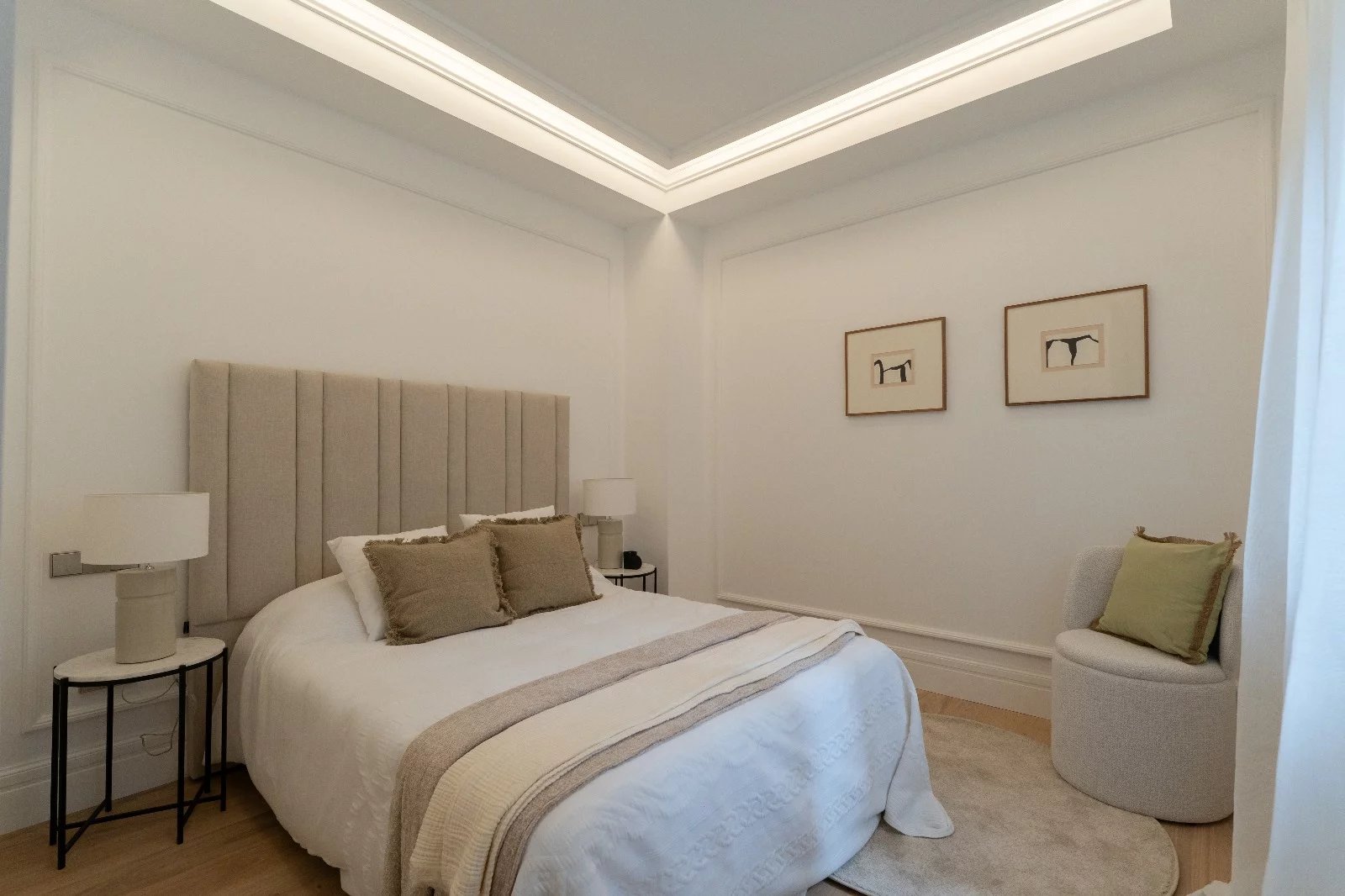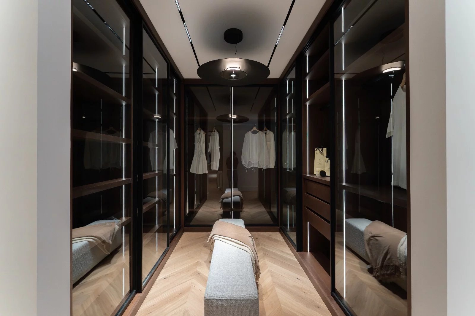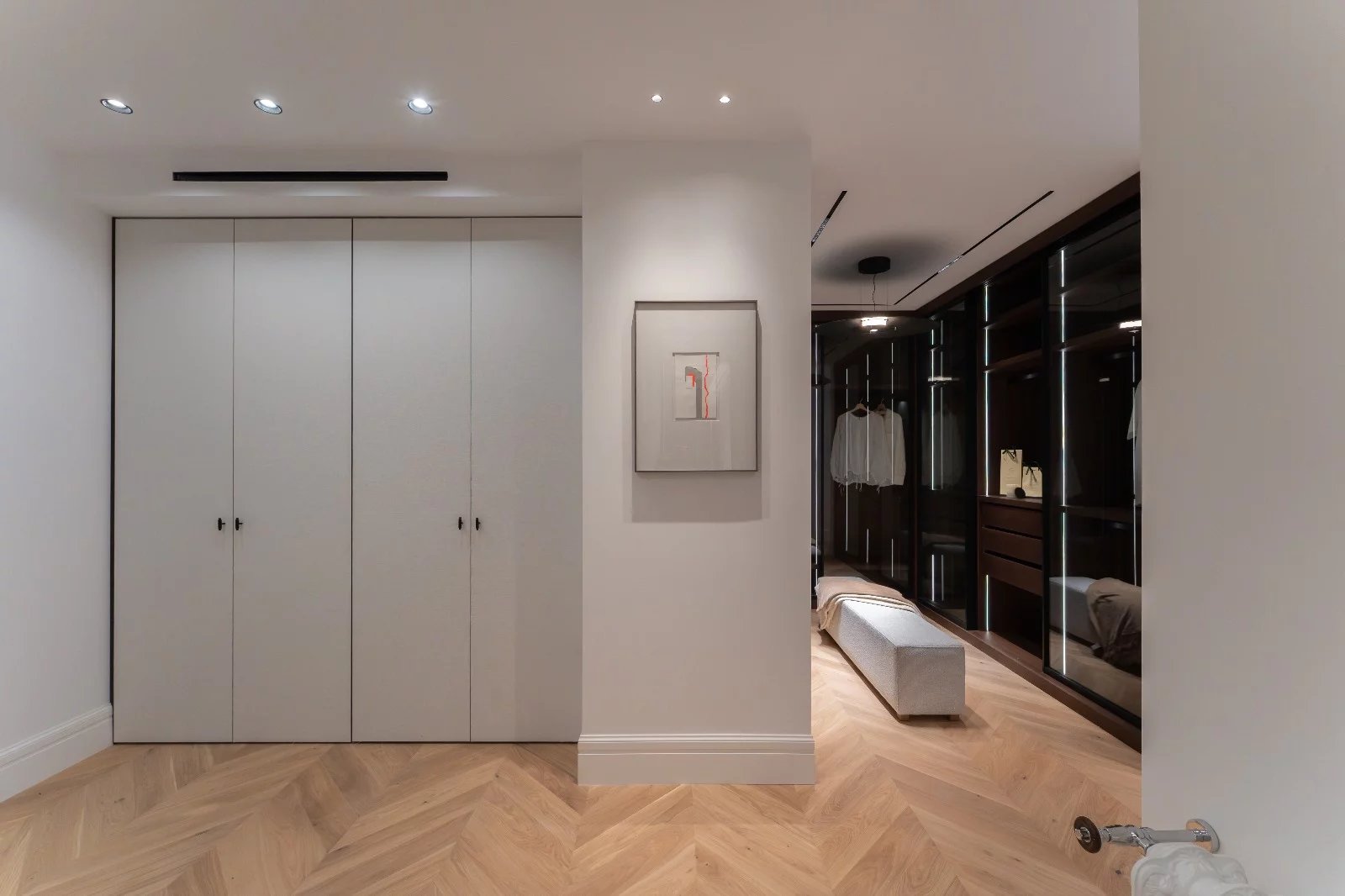 The master bedroom is at the height of the best hotels in the world, spacious, with large windows overlooking the street, two separate dressing rooms and an en suite bathroom covered in exclusive Pietra Grey marble, equipped with contemporary design faucets and luxury finishes.