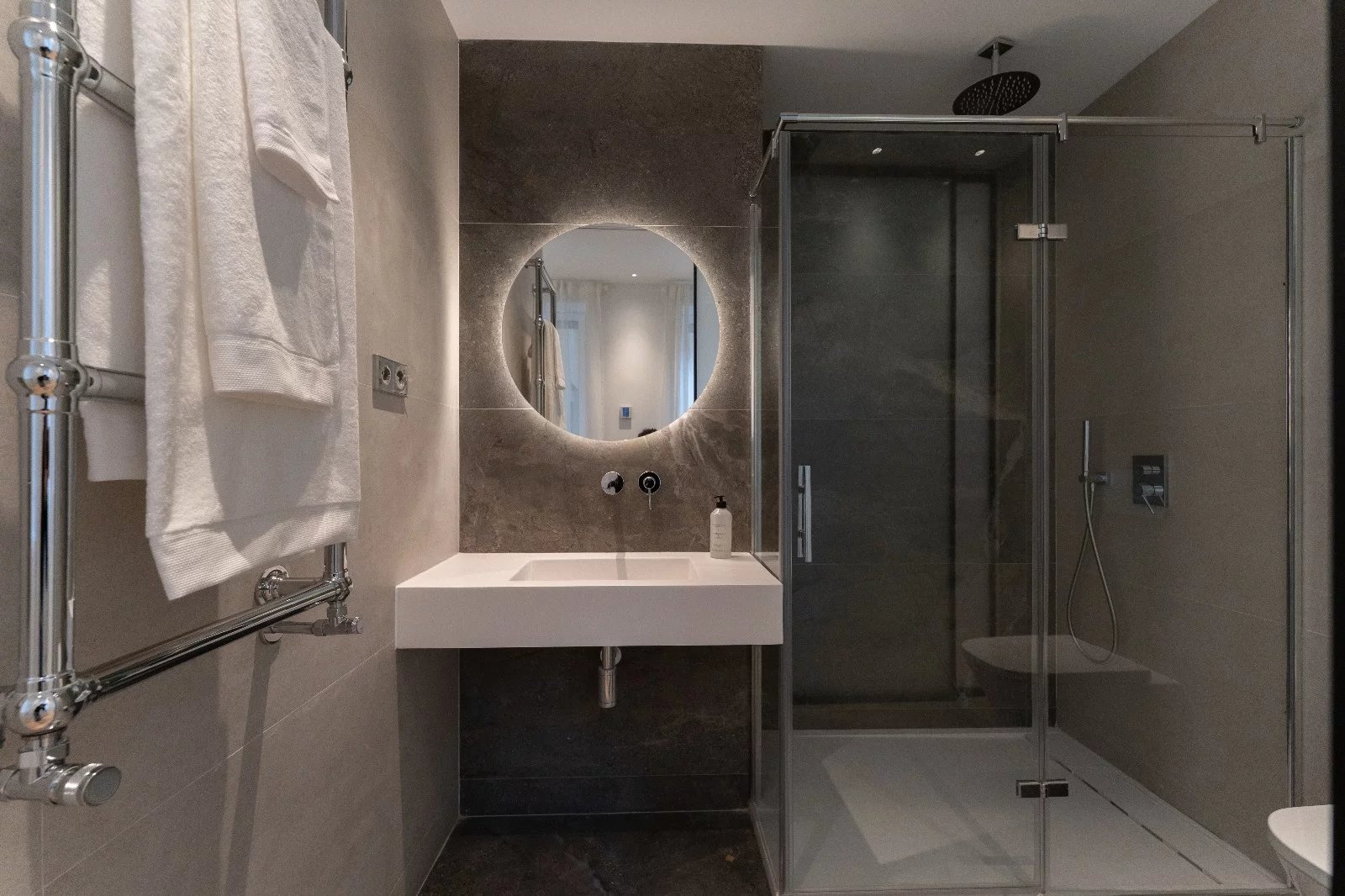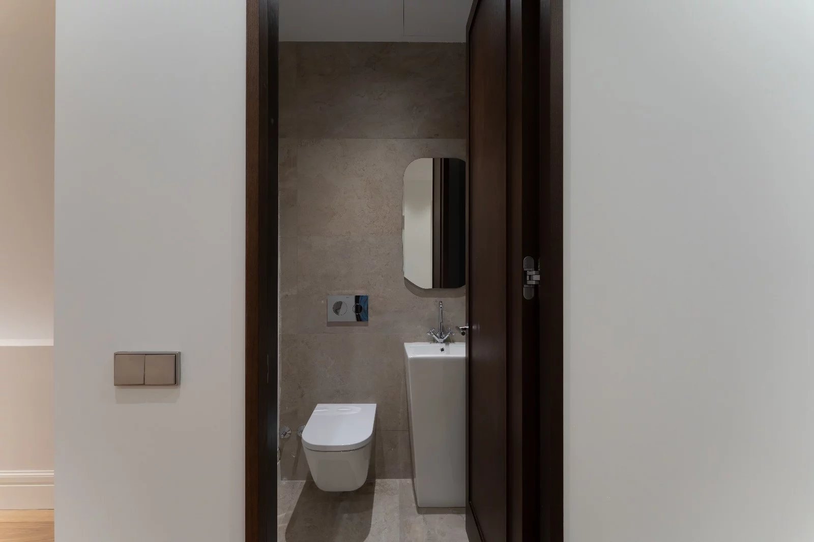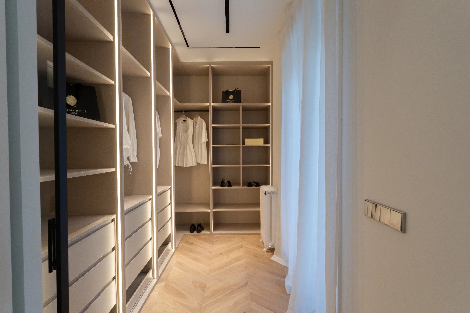 The master bedroom is at the height of the best hotels in the world, spacious, with large windows overlooking the street, two separate dressing rooms and an en suite bathroom covered in exclusive Pietra Grey marble, equipped with contemporary design faucets and luxury finishes.