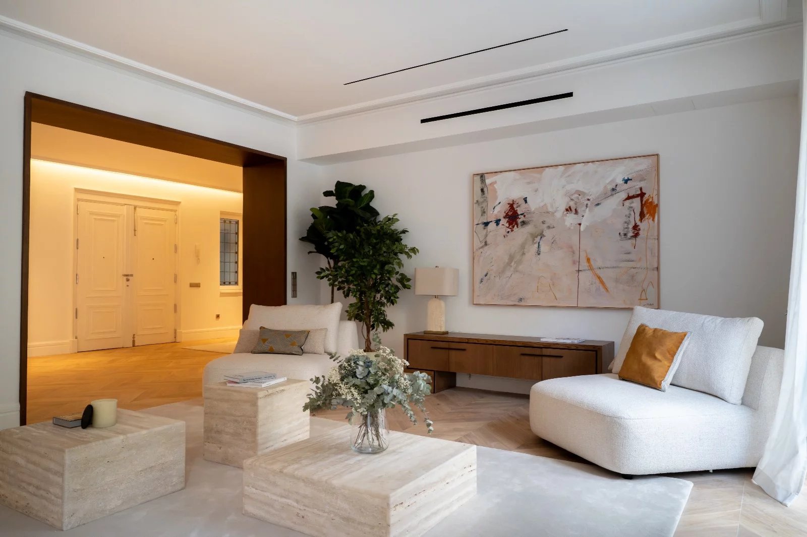 The independent apartment, with private entrance, is perfect as a guest area, work space or to accommodate service personnel, providing a versatility that is unusual in the Salamanca neighborhood.