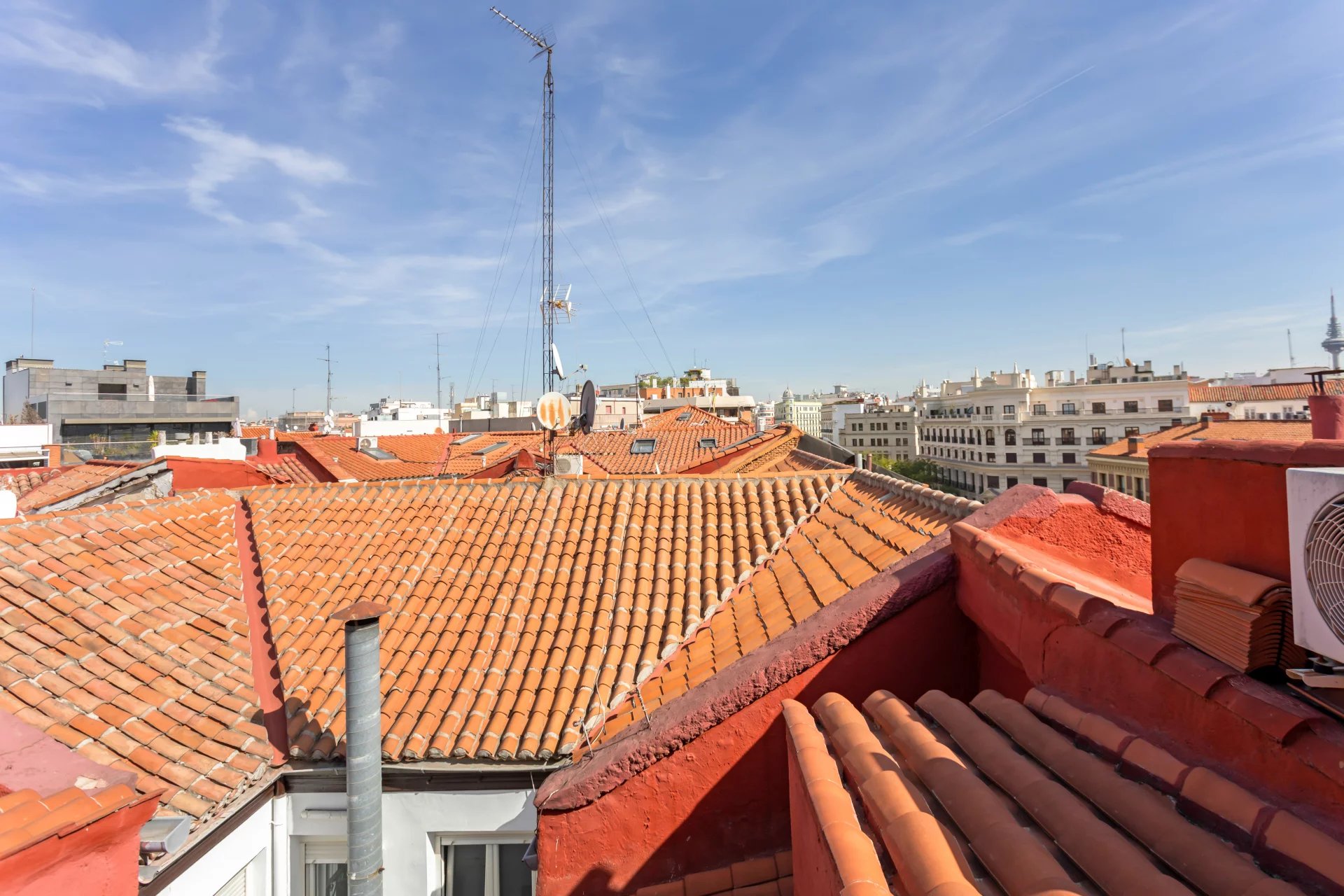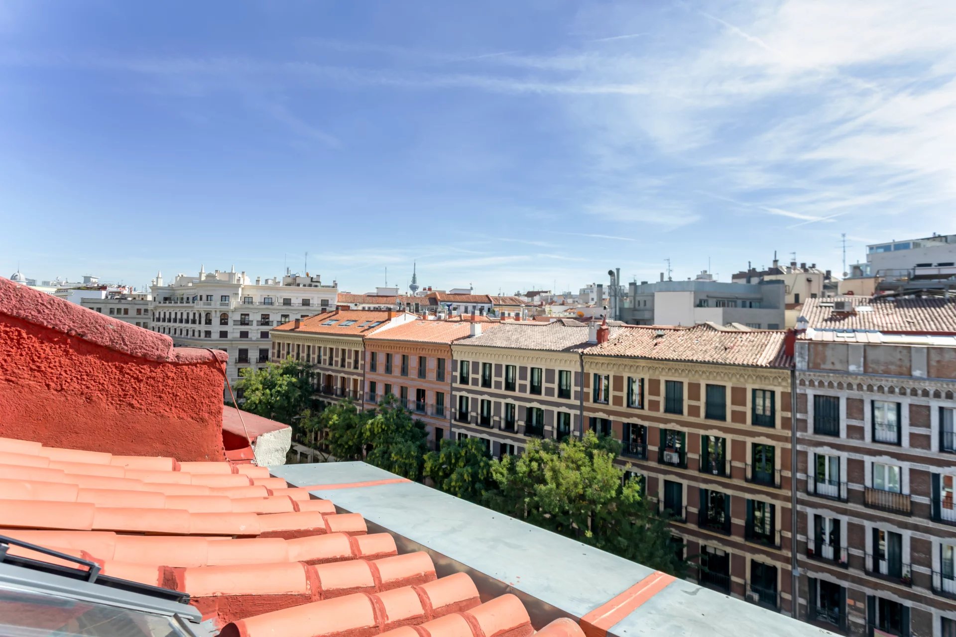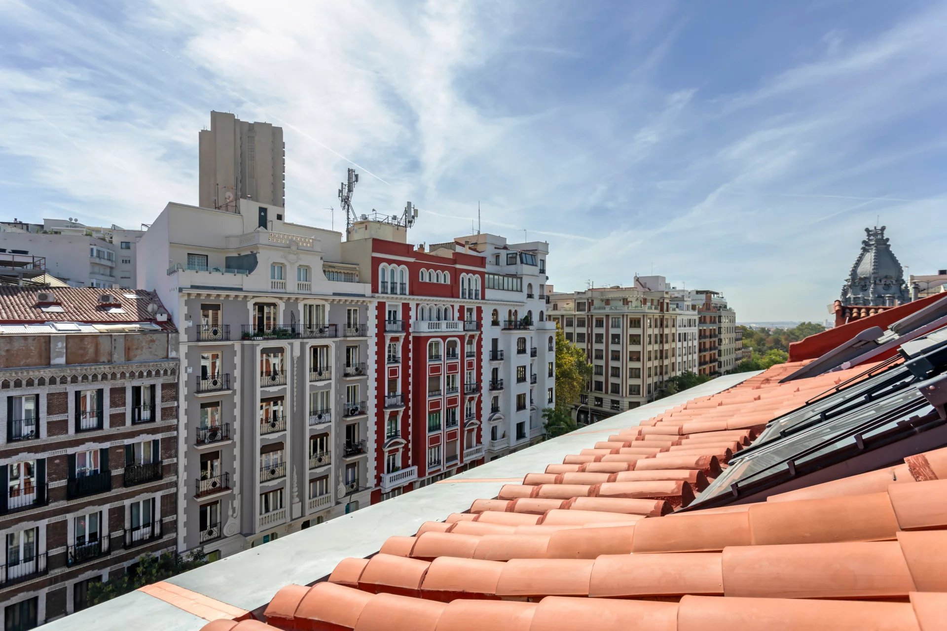 The living room and the bedroom have windows on the roof overlooking Alcalá street, from where you can admire beautiful classical buildings and part of the Retiro Park. This is a penthouse for lovers of sun and natural light.