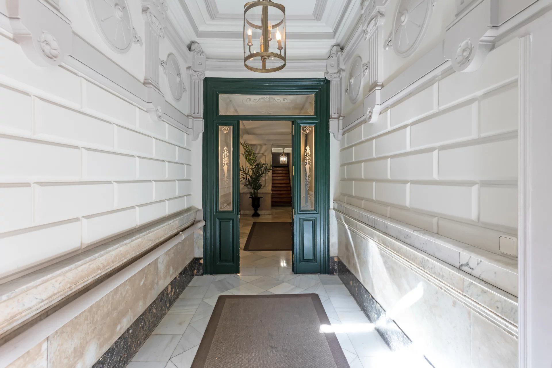 The building, of classic style, dates from 1897 and preserves an elegant entrance and protected wooden stairs. The elevator goes up to the fifth floor.