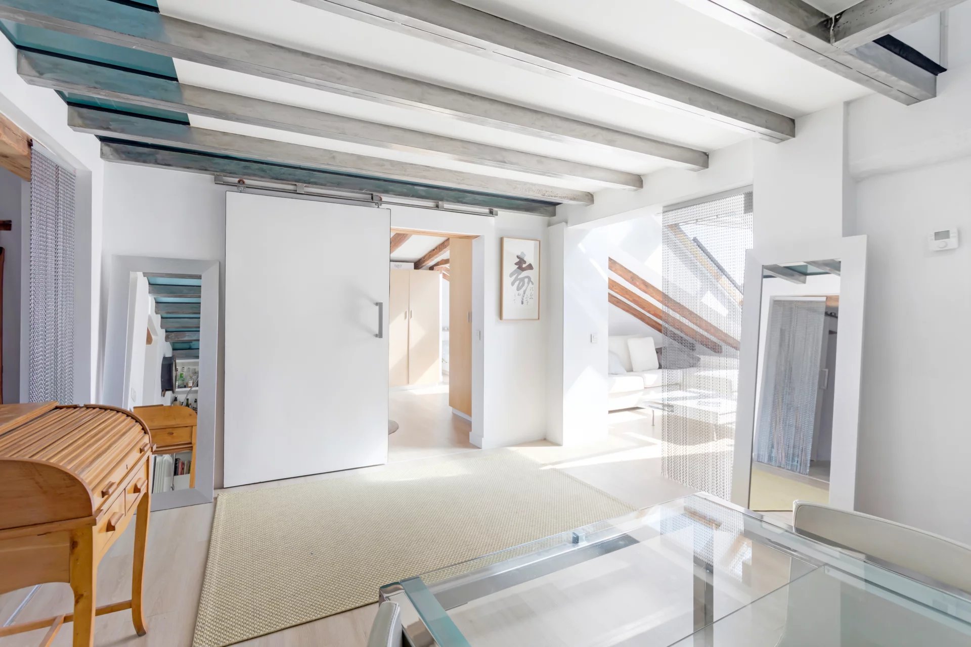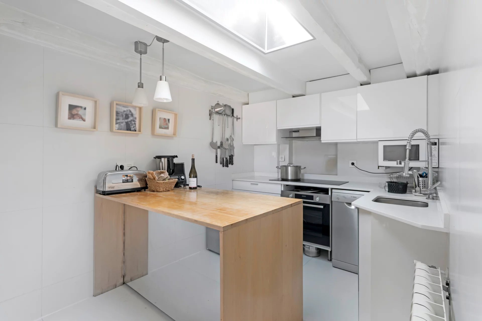 The interior features an open and functional concept with lots of character.