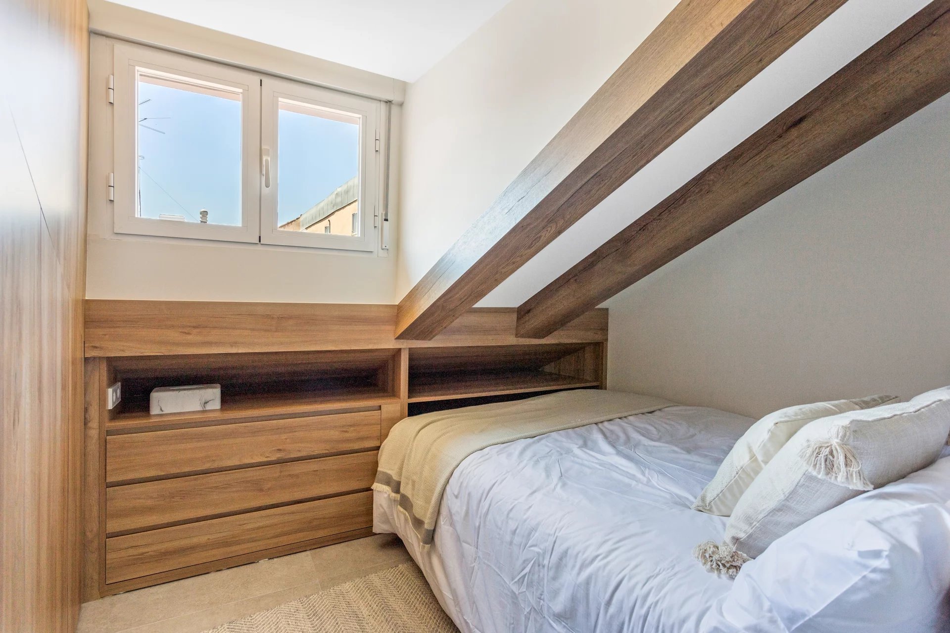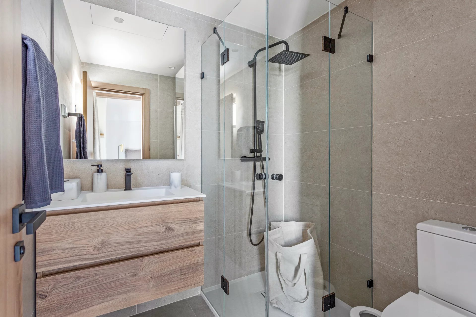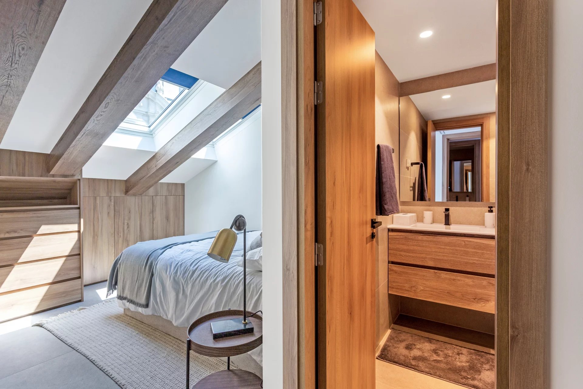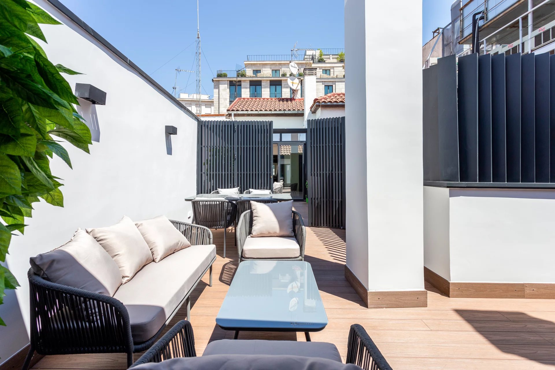 Learn moreEach flat has two bedrooms with en suite bathrooms, fitted wardrobes, individual heating and ducted air conditioning with AirZone. They each have their own terrace (21 m² + 14 m²) connected by a beautiful metal door. The terraces have total privacy.