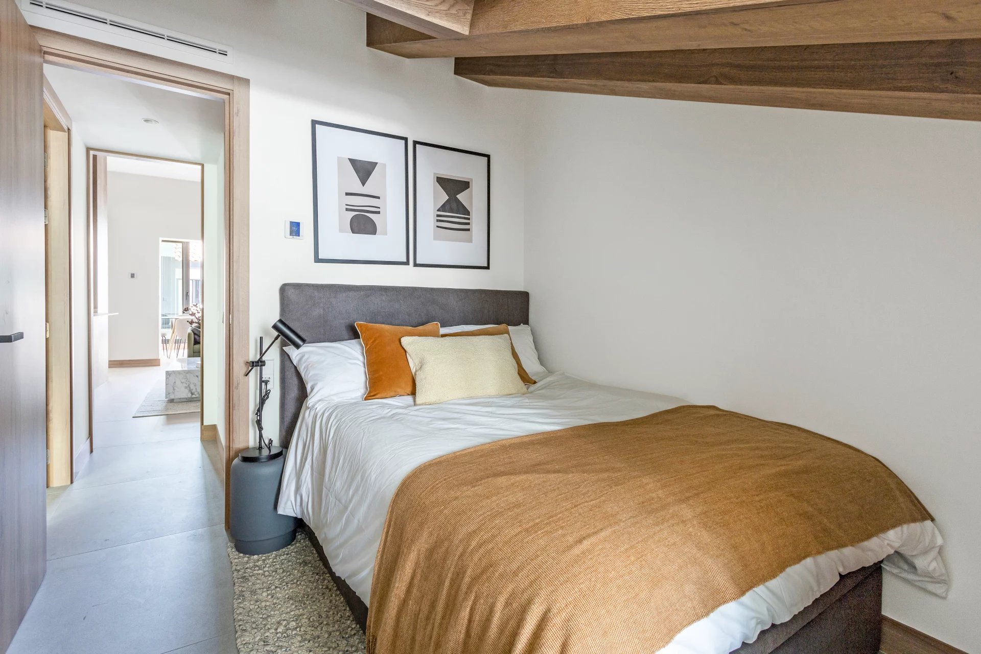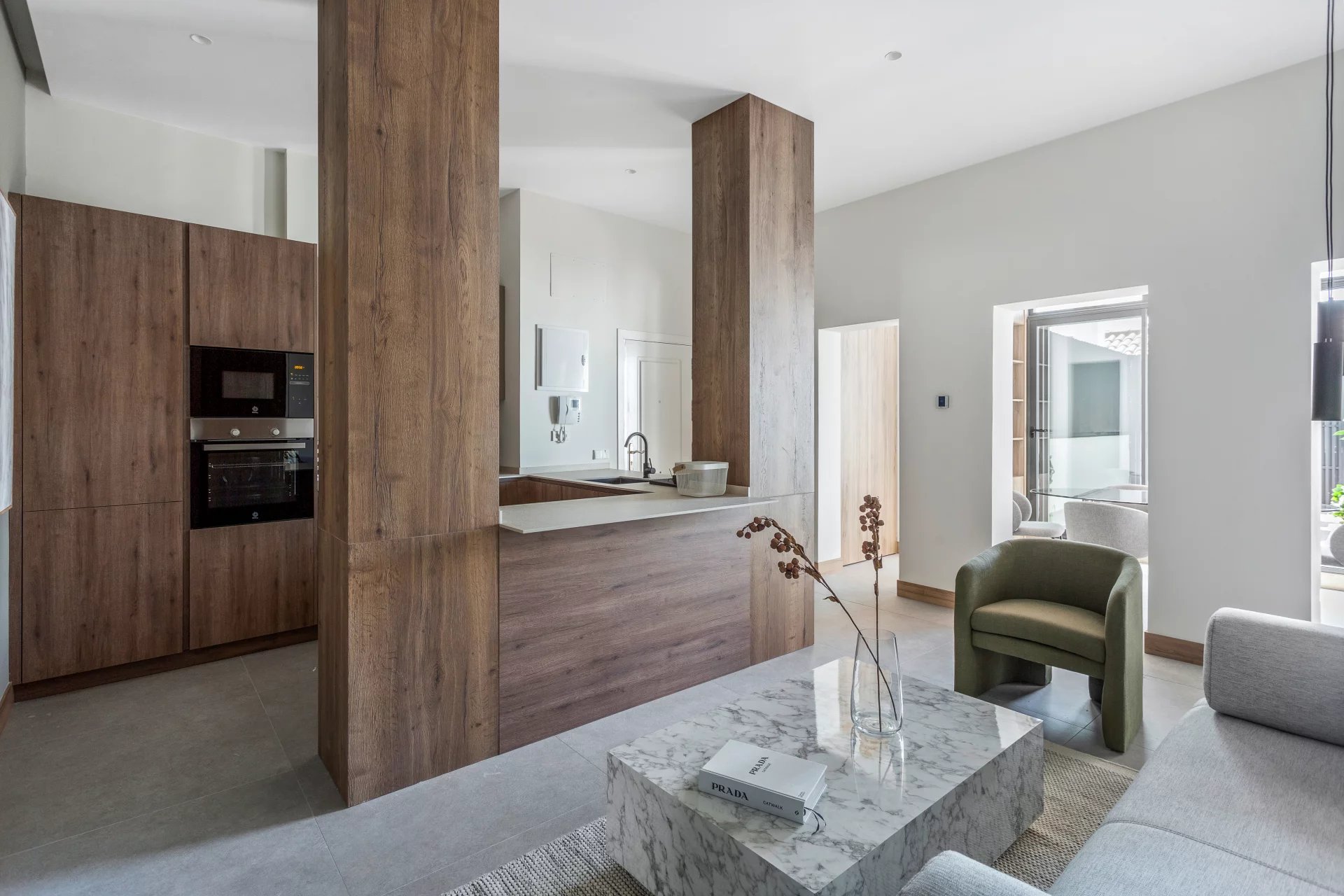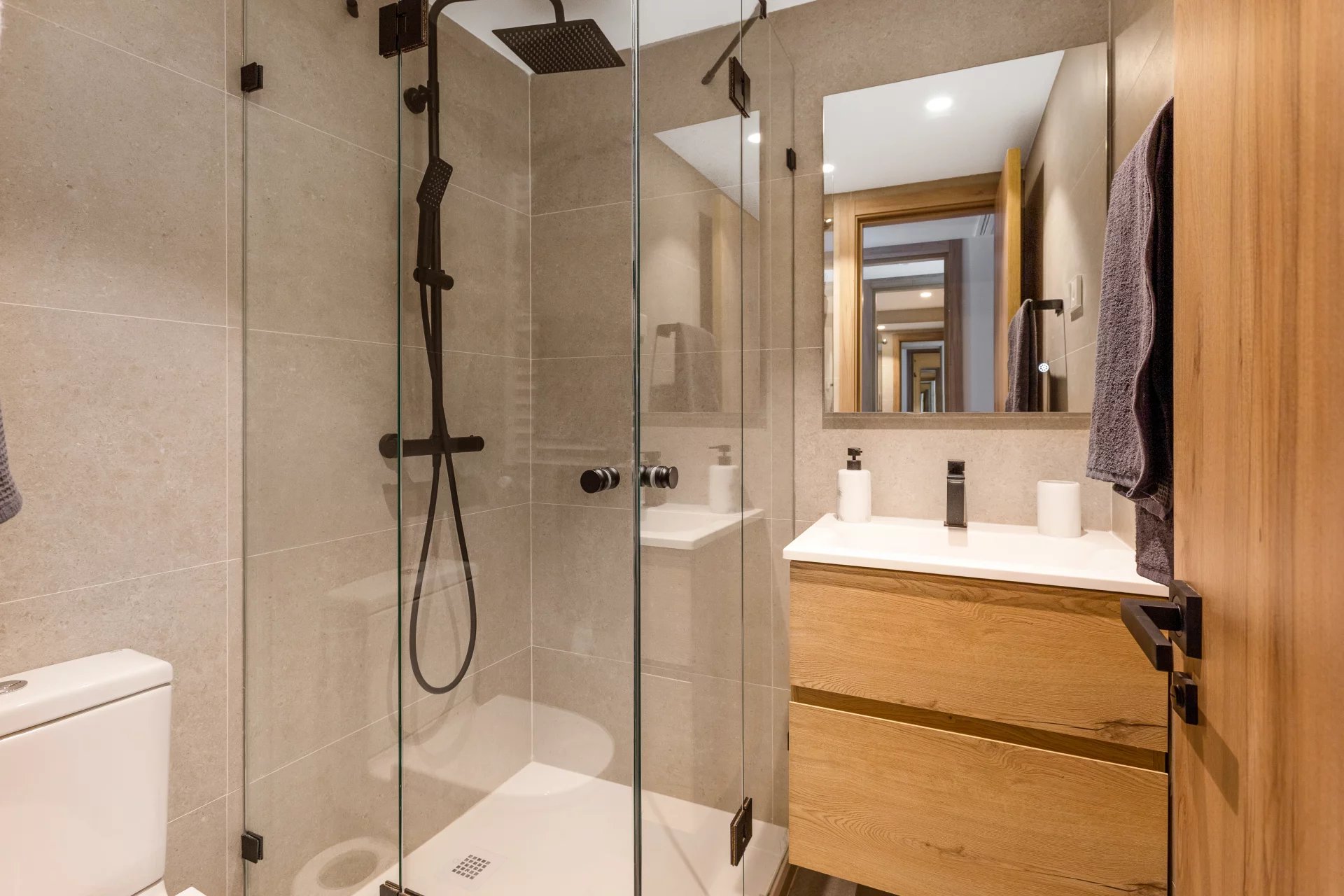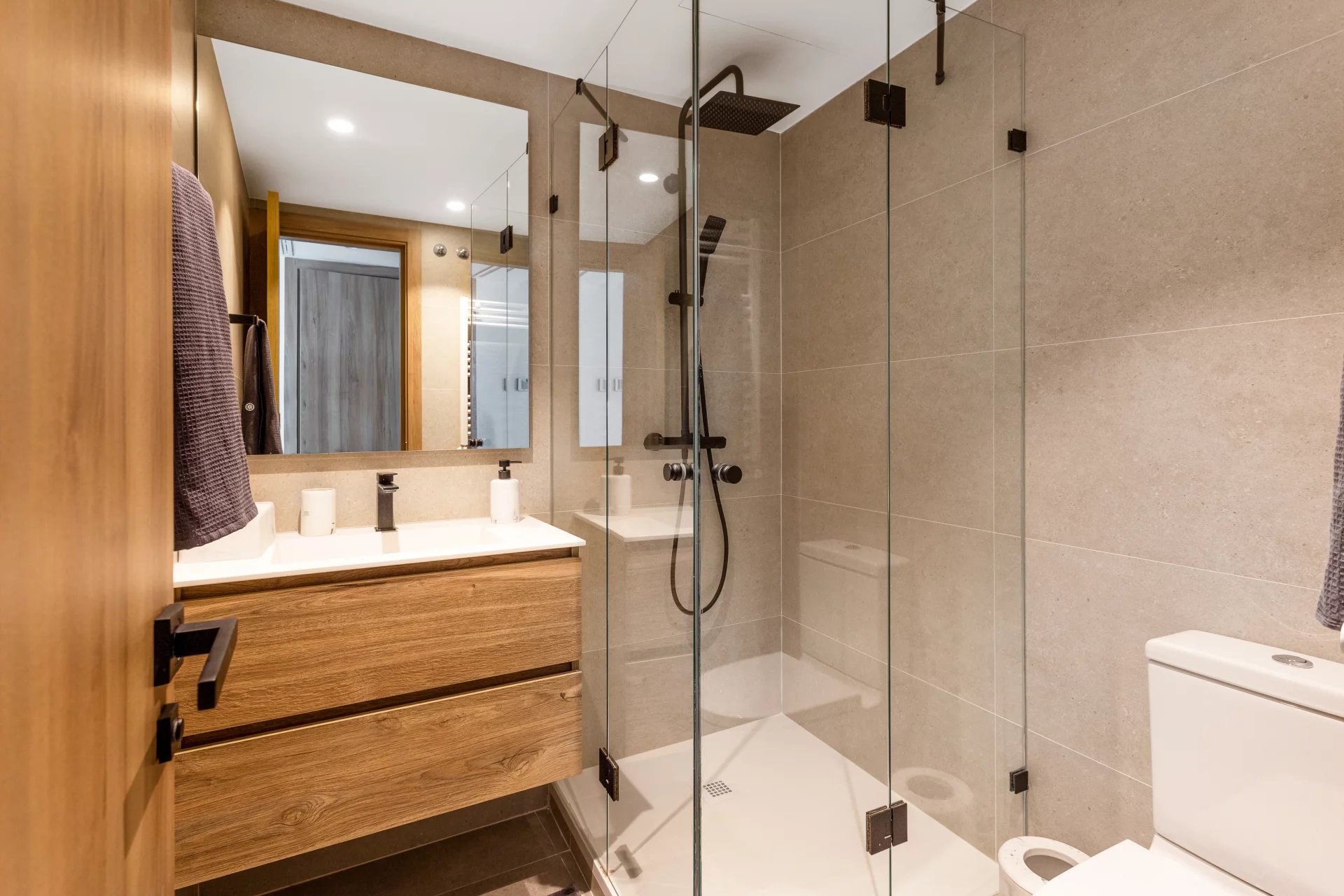 Learn moreEach flat has two bedrooms with en suite bathrooms, fitted wardrobes, individual heating and ducted air conditioning with AirZone. They each have their own terrace (21 m² + 14 m²) connected by a beautiful metal door. The terraces have total privacy.