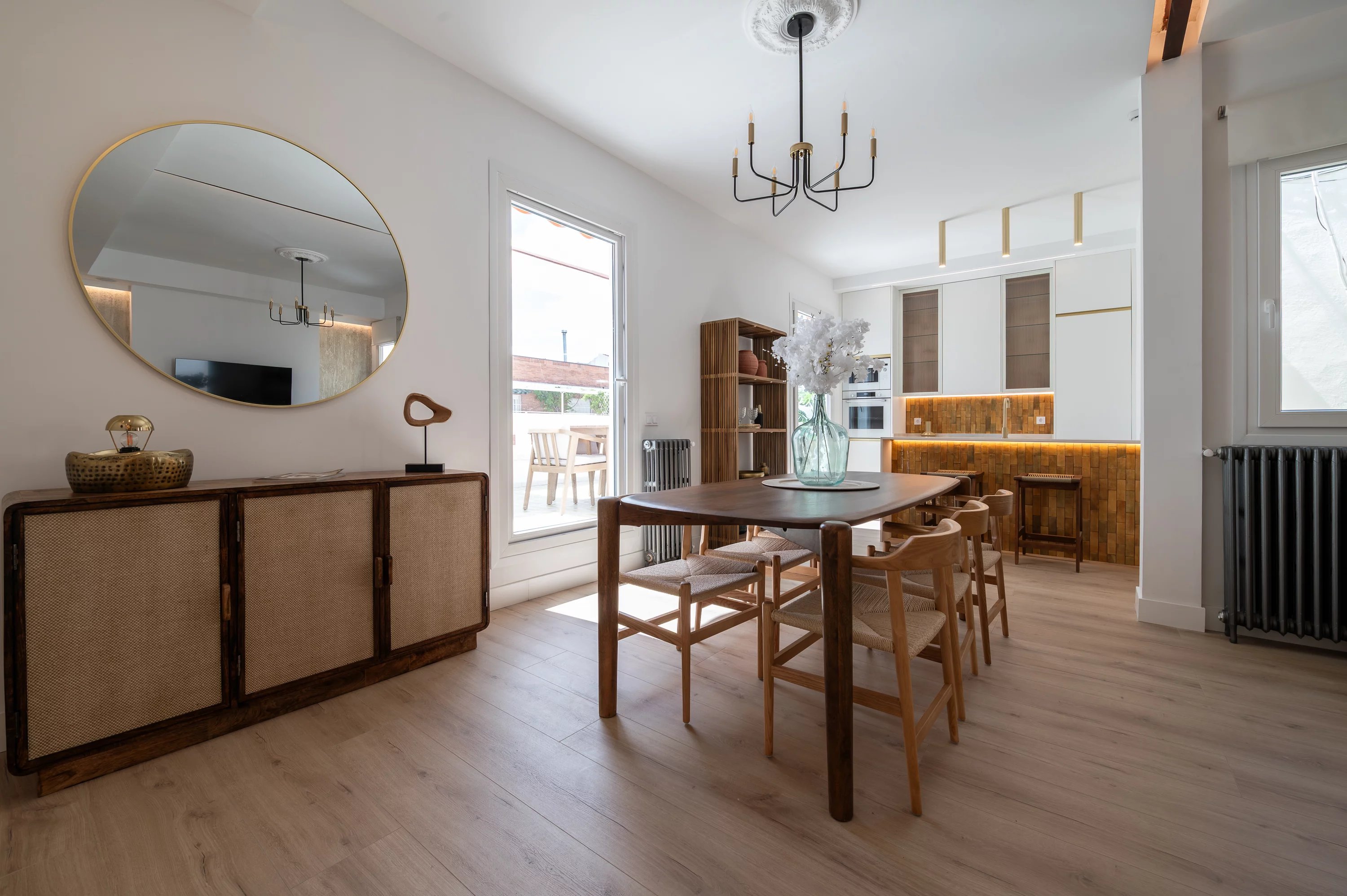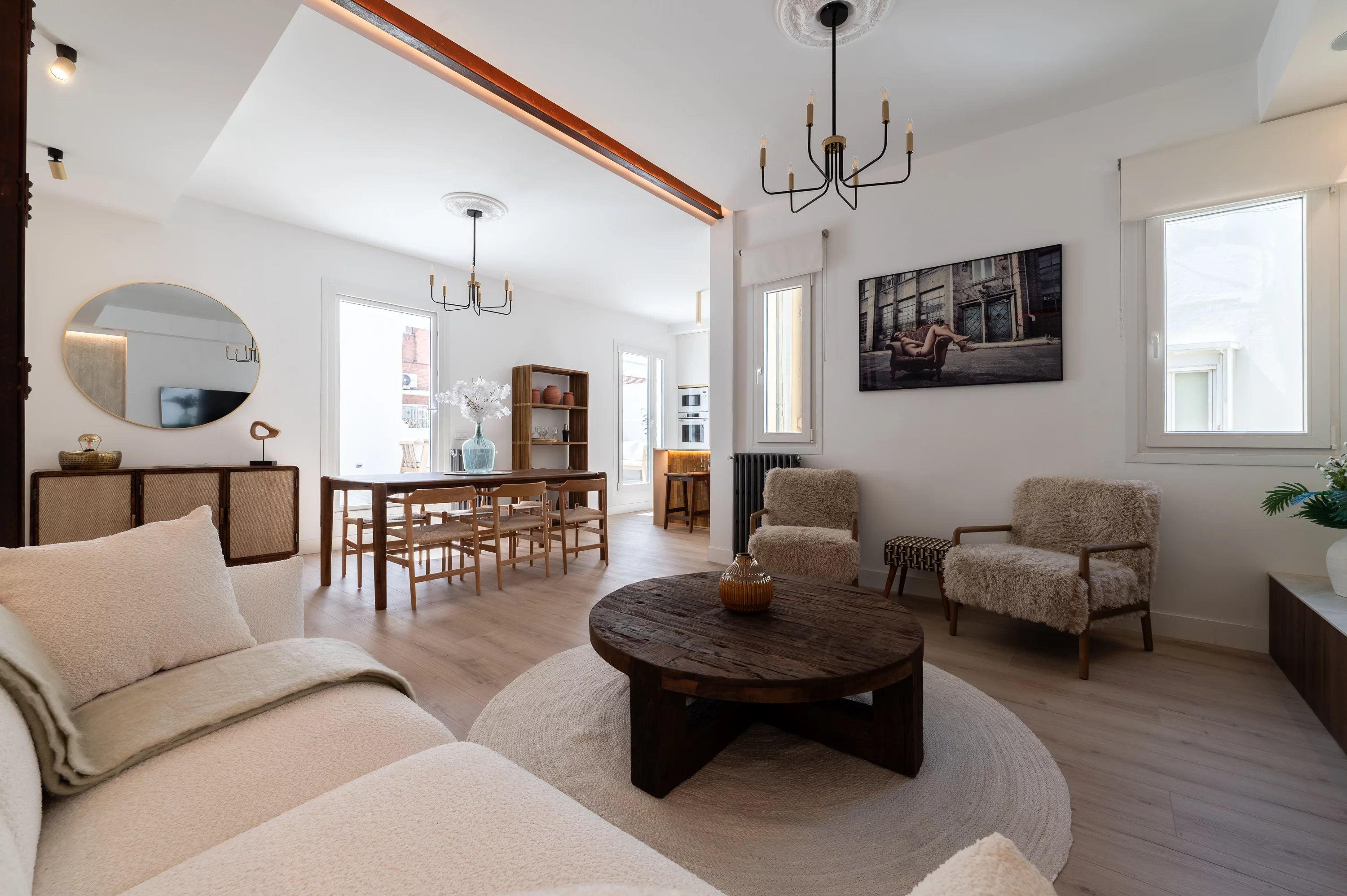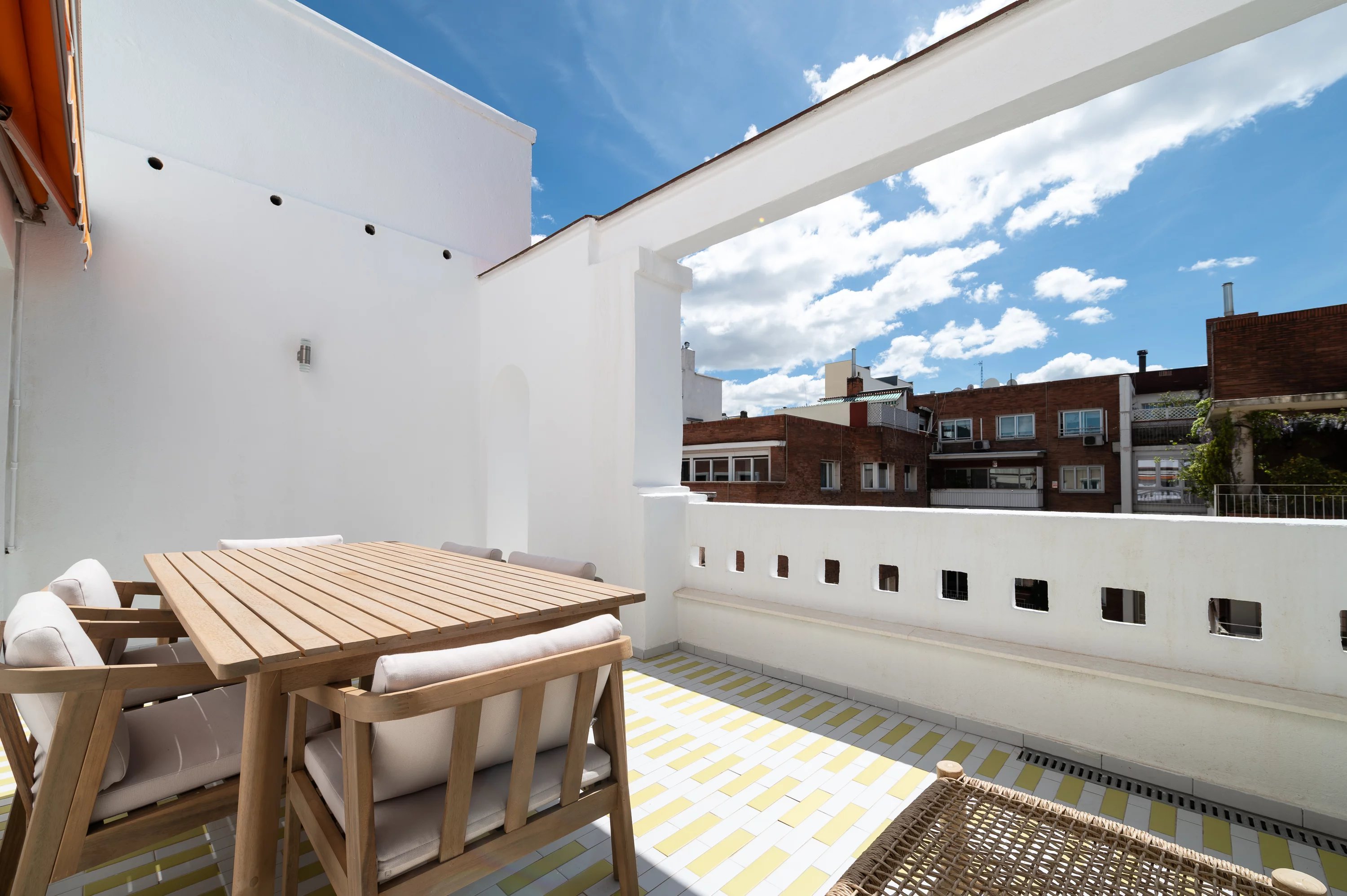 Penthouse facing south in a classic building, where natural light and serenity elevate the living experience in Madrid.The apartment is organized around a large open space of living room, dining room, and integrated kitchen, with direct access to a pleasant private terrace that extends outdoor living. The three bedrooms, including a refined master suite with walk-in closet, are designed to offer comfort and privacy.High-quality materials, high-performance carpentry, and a careful selection of finishes bring coherence and sophistication to each room. Fully furnished and decorated, this penthouse has been designed to be enjoyed from the very first moment, without need for adaptation.