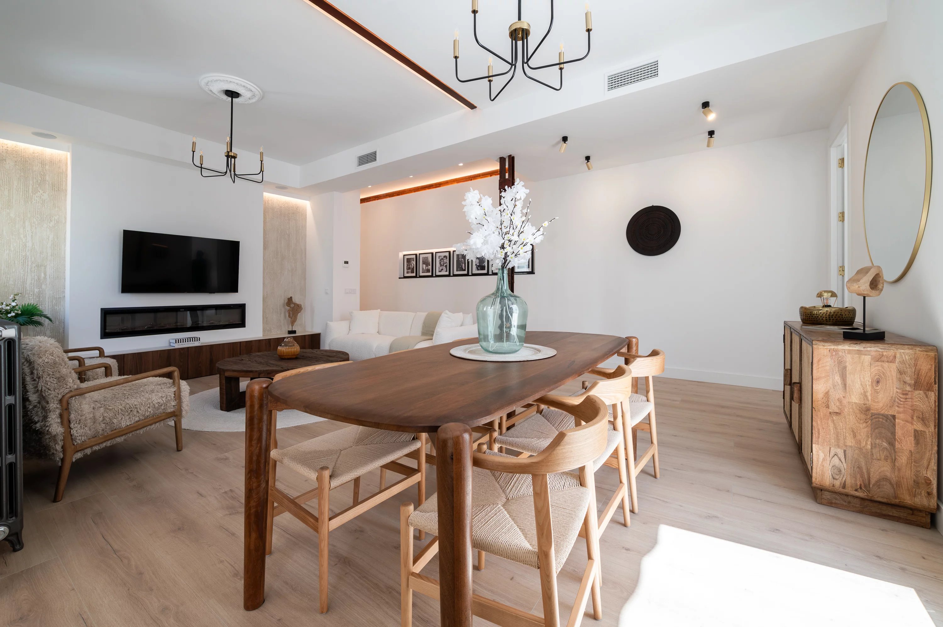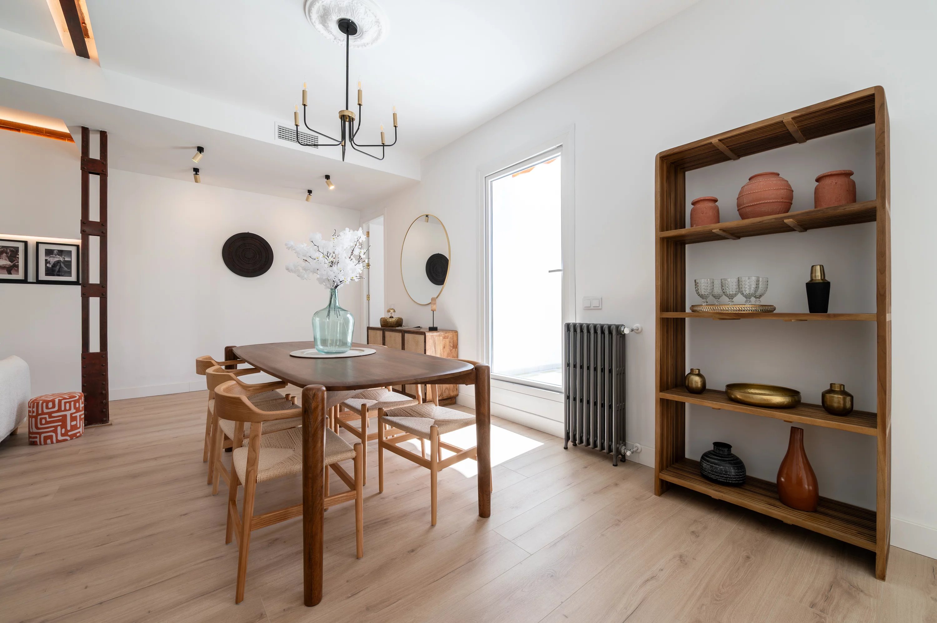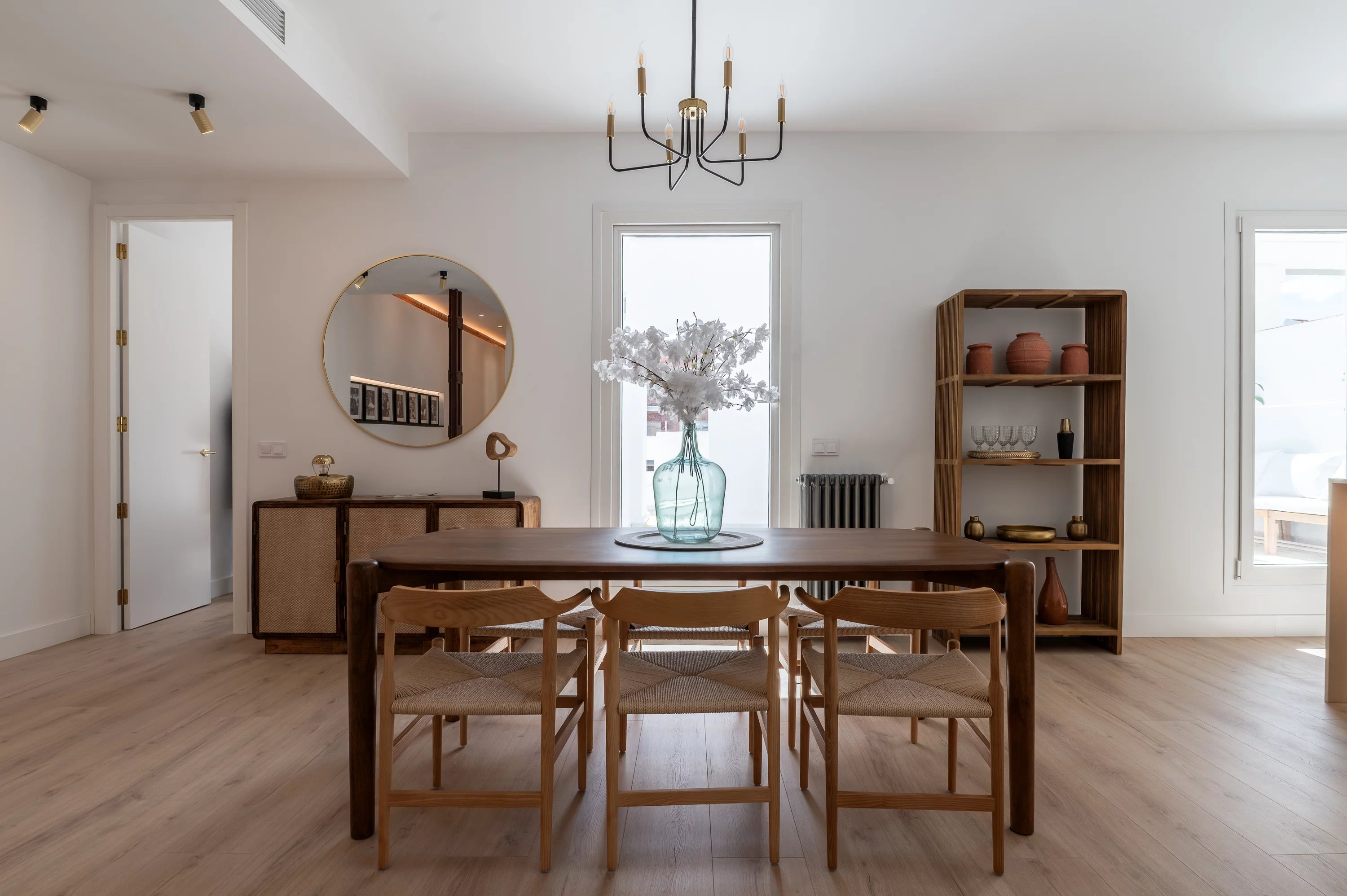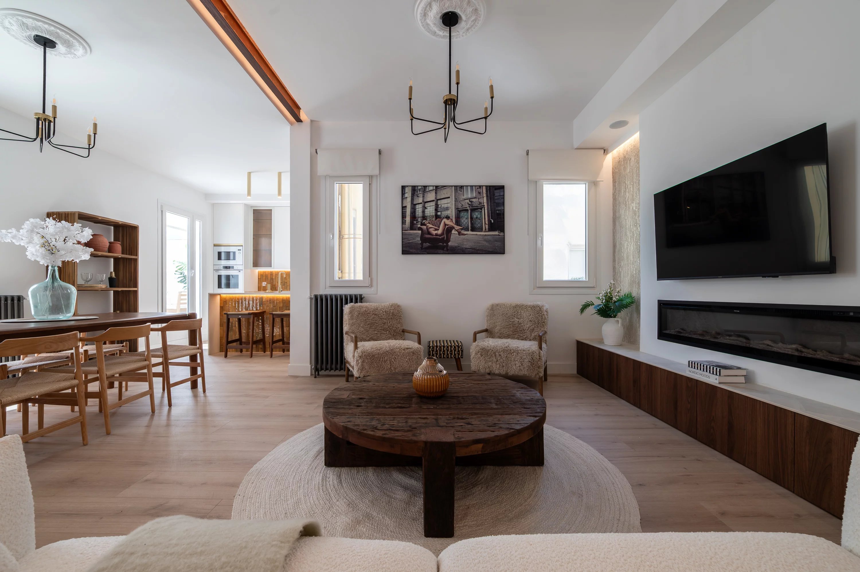 Penthouse facing south in a classic building, where natural light and serenity elevate the living experience in Madrid.The apartment is organized around a large open space of living room, dining room, and integrated kitchen, with direct access to a pleasant private terrace that extends outdoor living. The three bedrooms, including a refined master suite with walk-in closet, are designed to offer comfort and privacy.High-quality materials, high-performance carpentry, and a careful selection of finishes bring coherence and sophistication to each room. Fully furnished and decorated, this penthouse has been designed to be enjoyed from the very first moment, without need for adaptation.