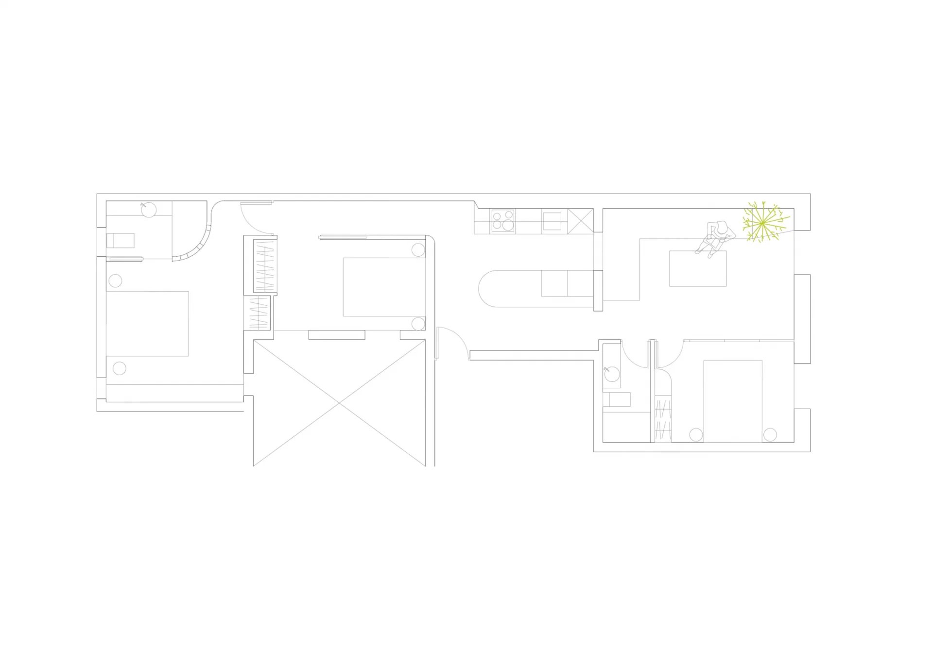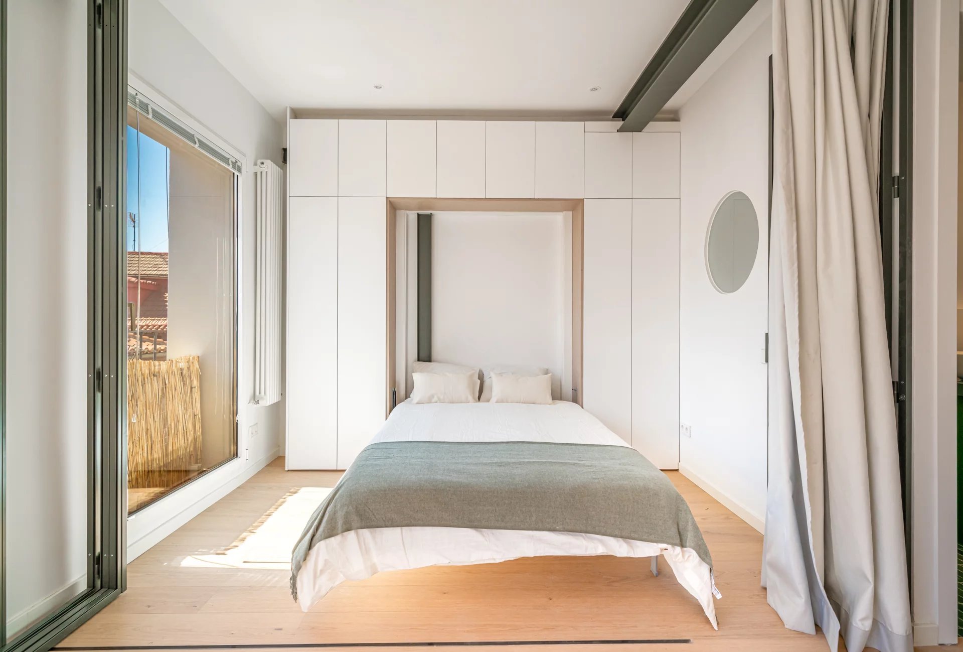 Learn moreThe apartment features a charming living room with a balcony overlooking the street, next to which there is a modular glass-enclosed room with a hidden bed that can serve as a guest bedroom or office. The fully equipped kitchen includes an island and dining area. There are also two additional bedrooms and two bathrooms, the main one en suite.