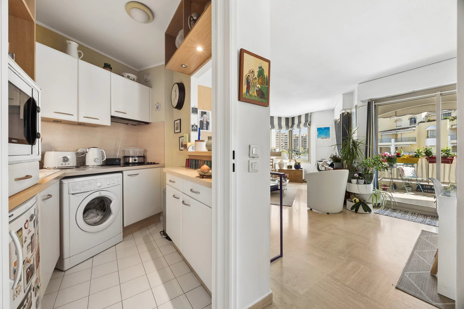 Ideally located in the heart of Mandelieu, in a private and secure residence with caretaker and swimming pool, discover this bright 1-bedroom apartment of approximately 50 m² on the first floor.