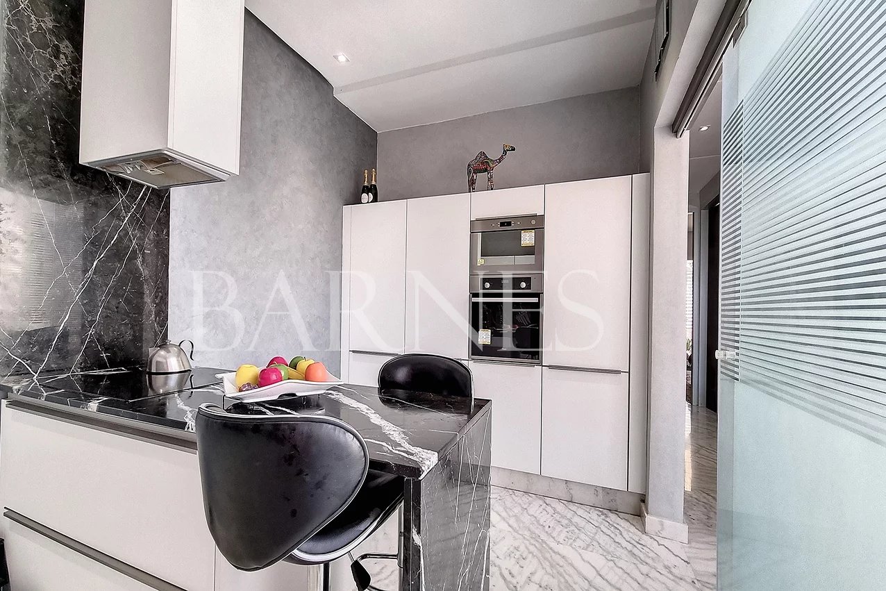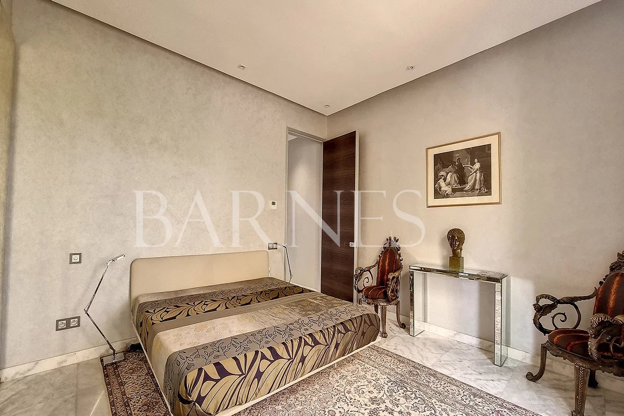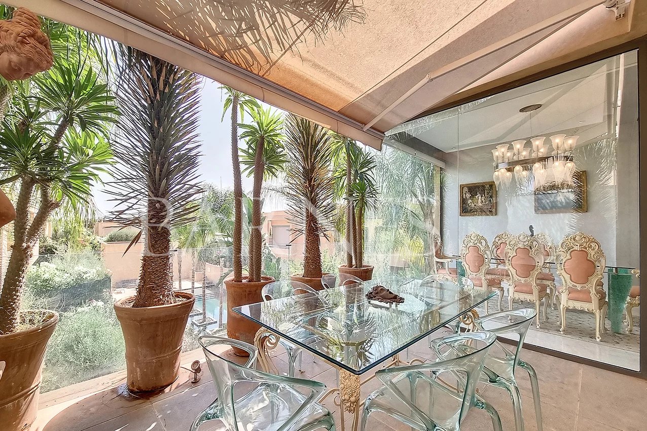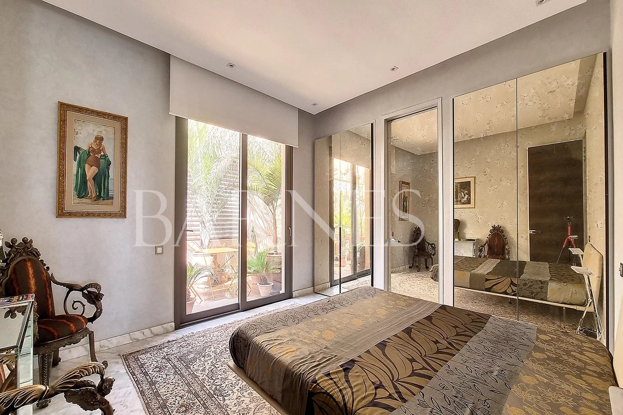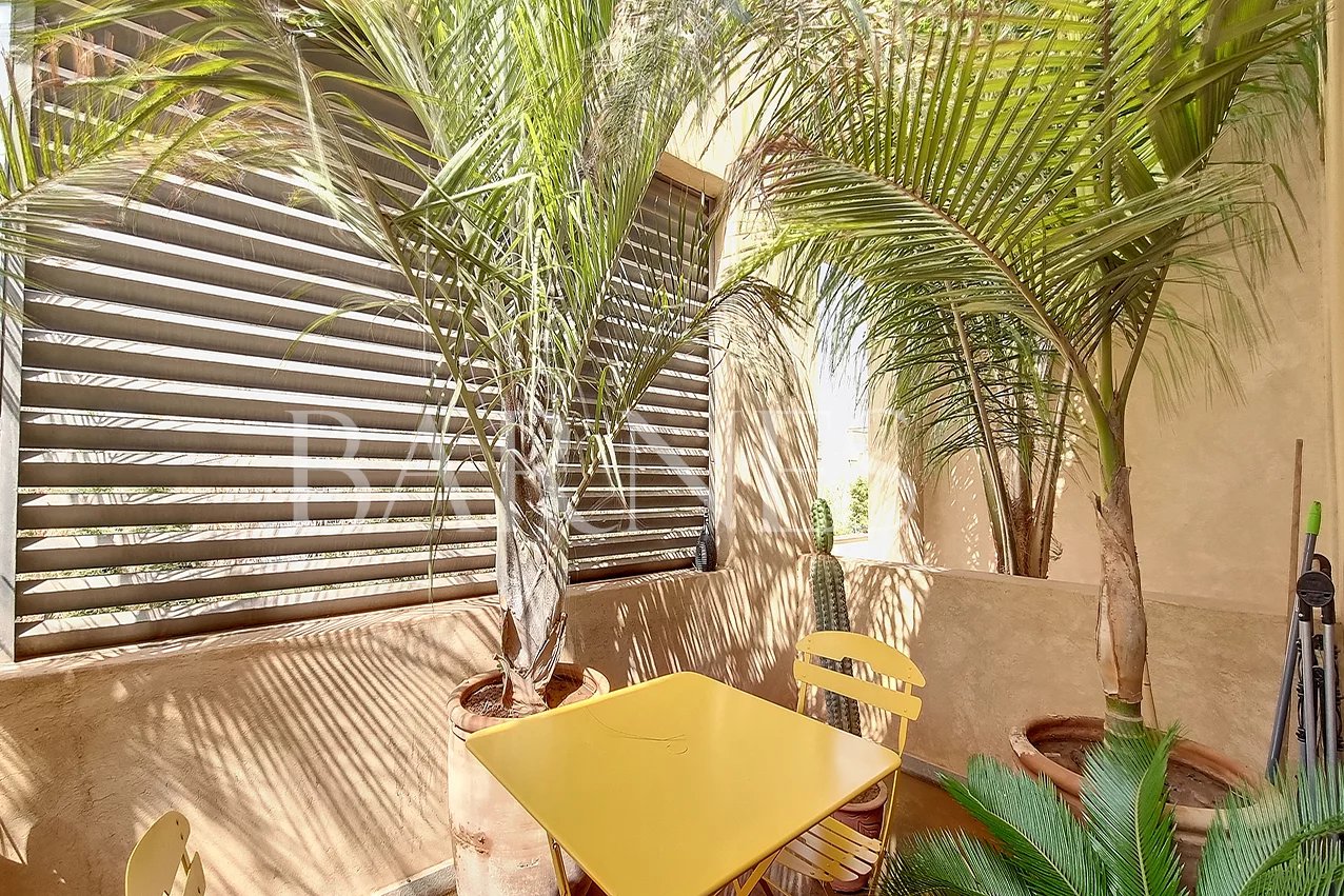We offer you a stylish apartment located in a residence 20 minutes from the city center. The 133m2 apartment features two bedrooms with two bathrooms, a fully equipped and closed kitchen, and a spacious living room with a beautiful terrace offering a view of the Atlas Mountains. The apartment is sold furnished and comes with a large garage of 35m2 that can accommodate 2 vehicles.