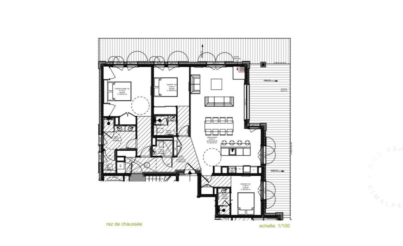With a nice surface area of about 117 sqm, this apartment located on the garden level can welcome up to 6 guests in optimal comfort, thanks to 3 large double bedrooms all benefiting from an adjoining shower room.