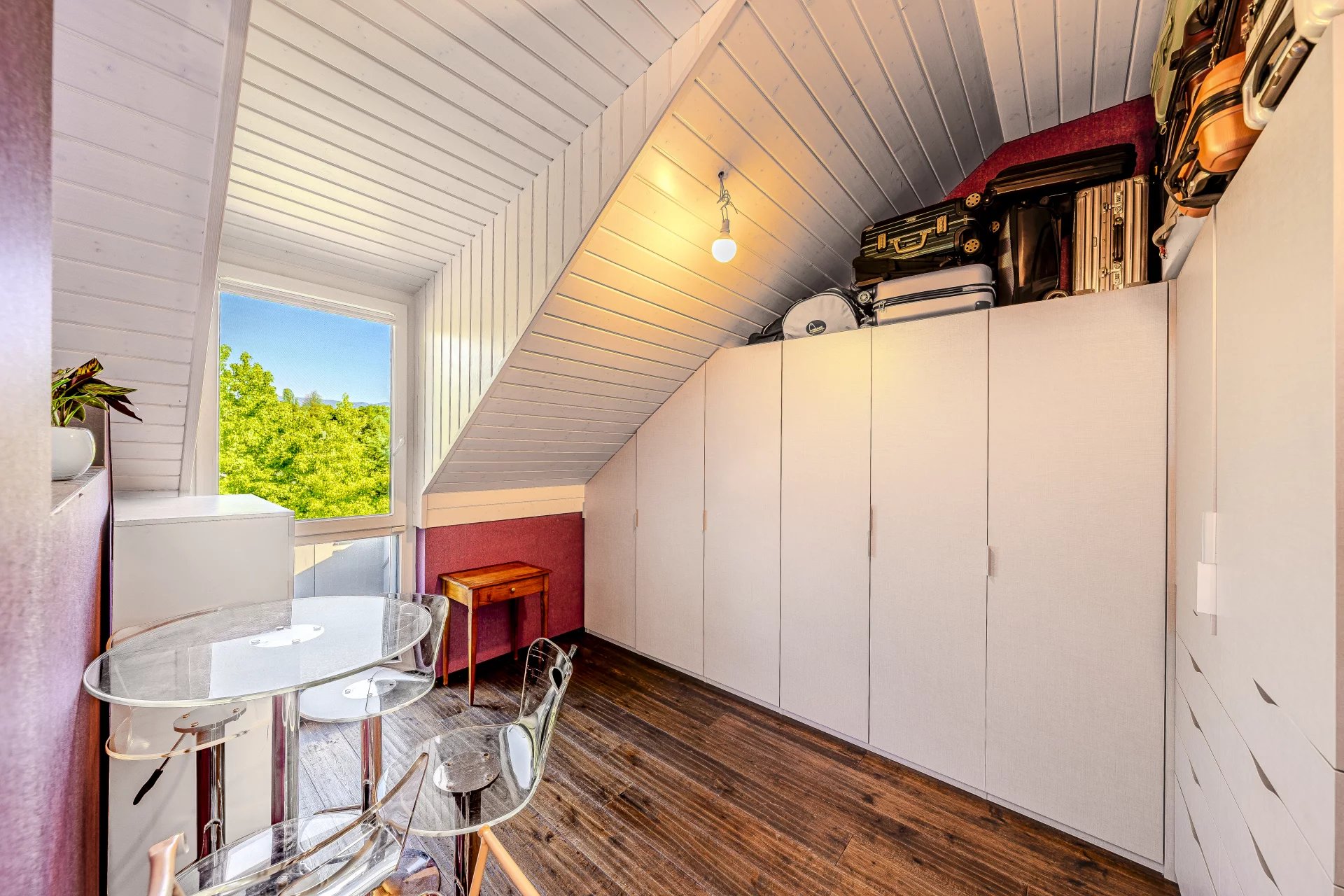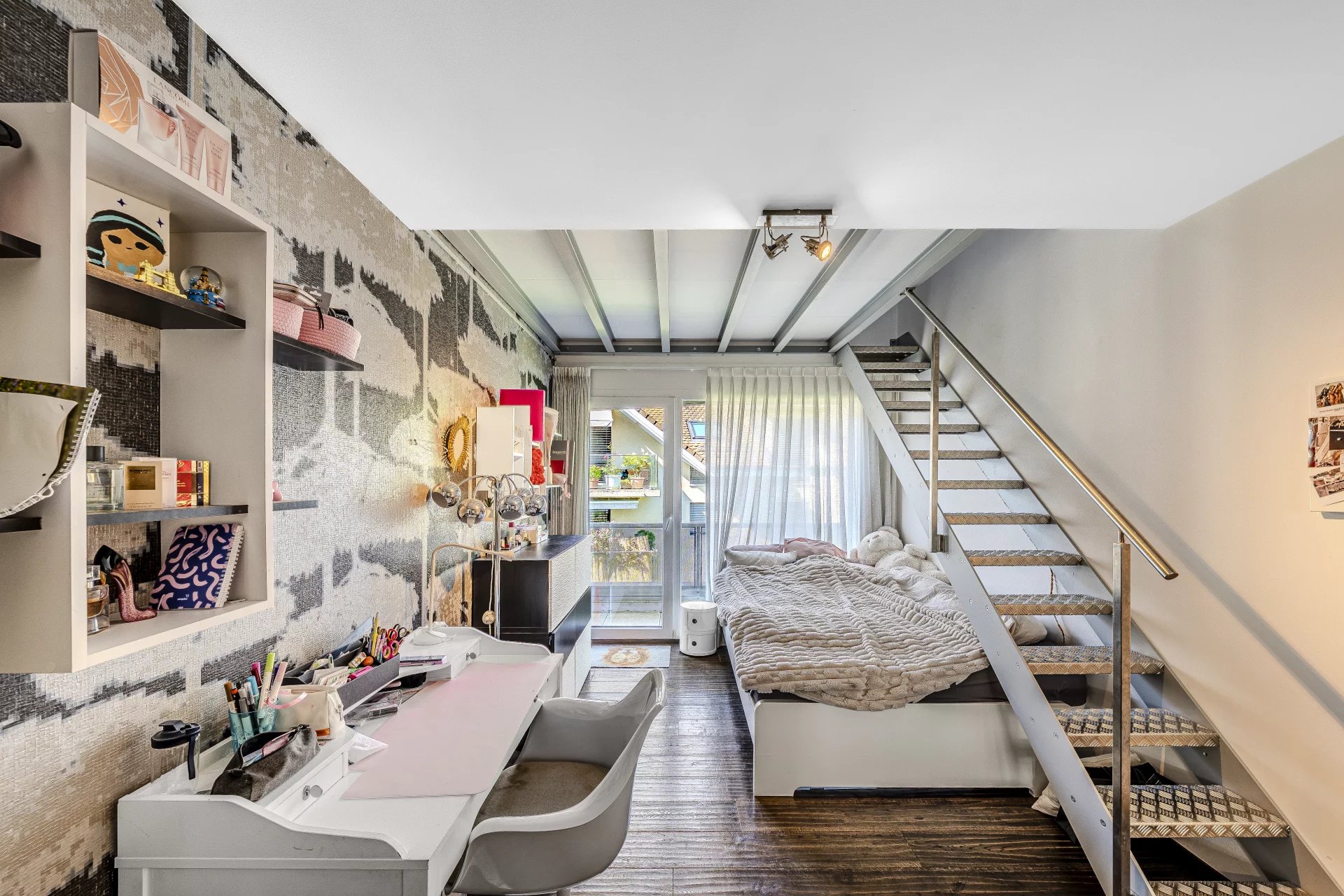 The upper level offers a versatile area that can be adapted to your needs—whether as a second living room, home office, playroom, or additional bedrooms.