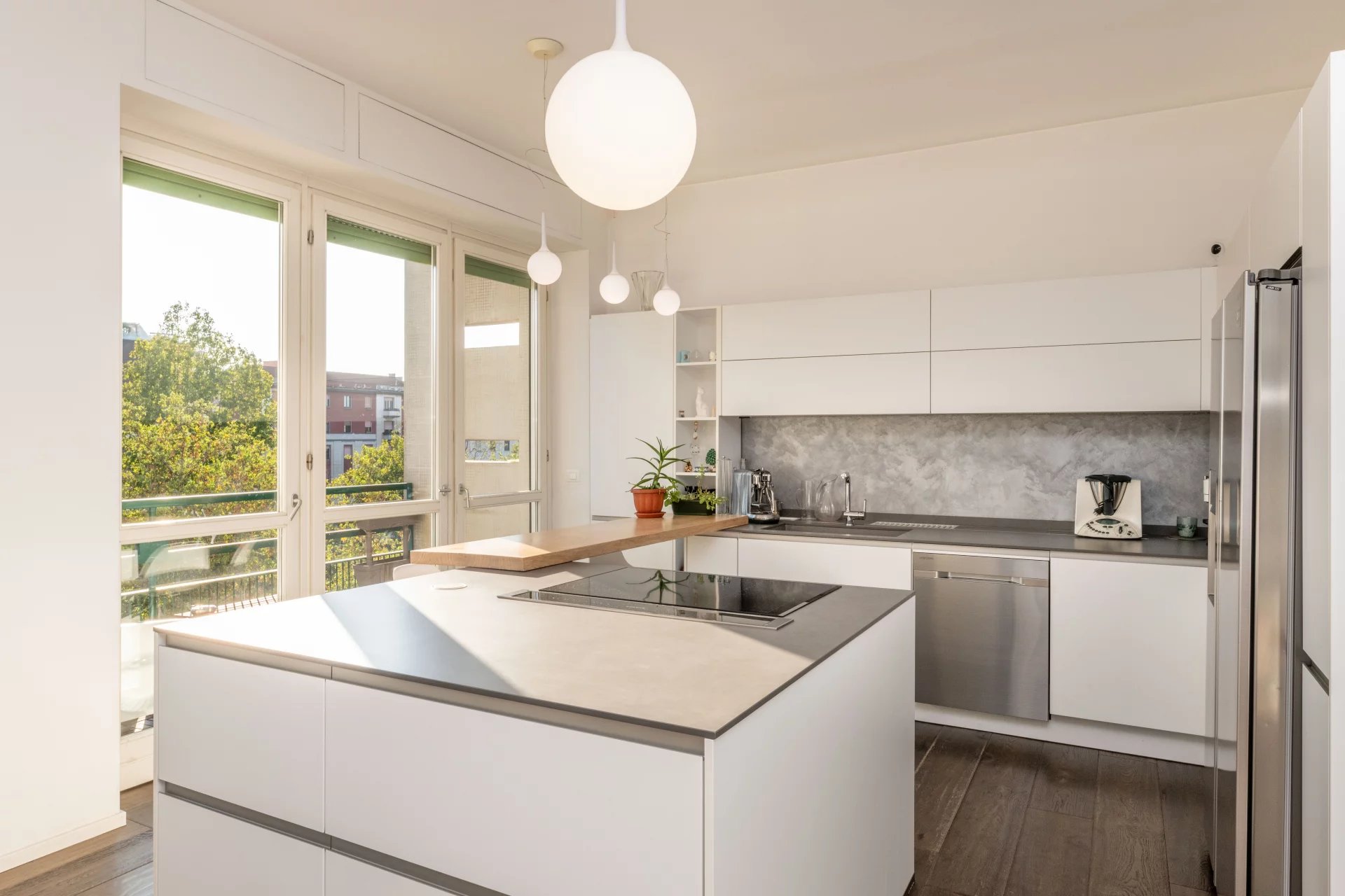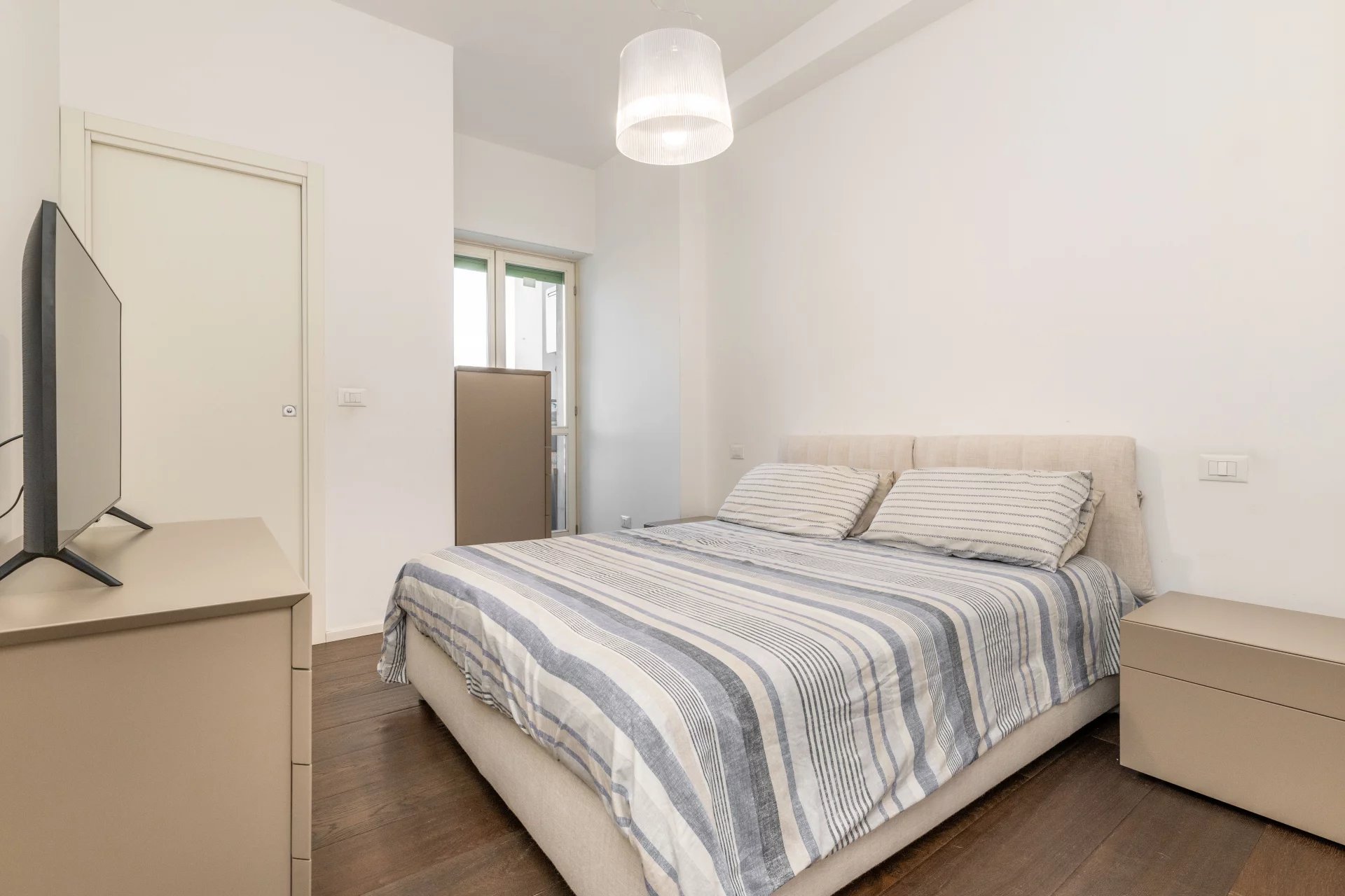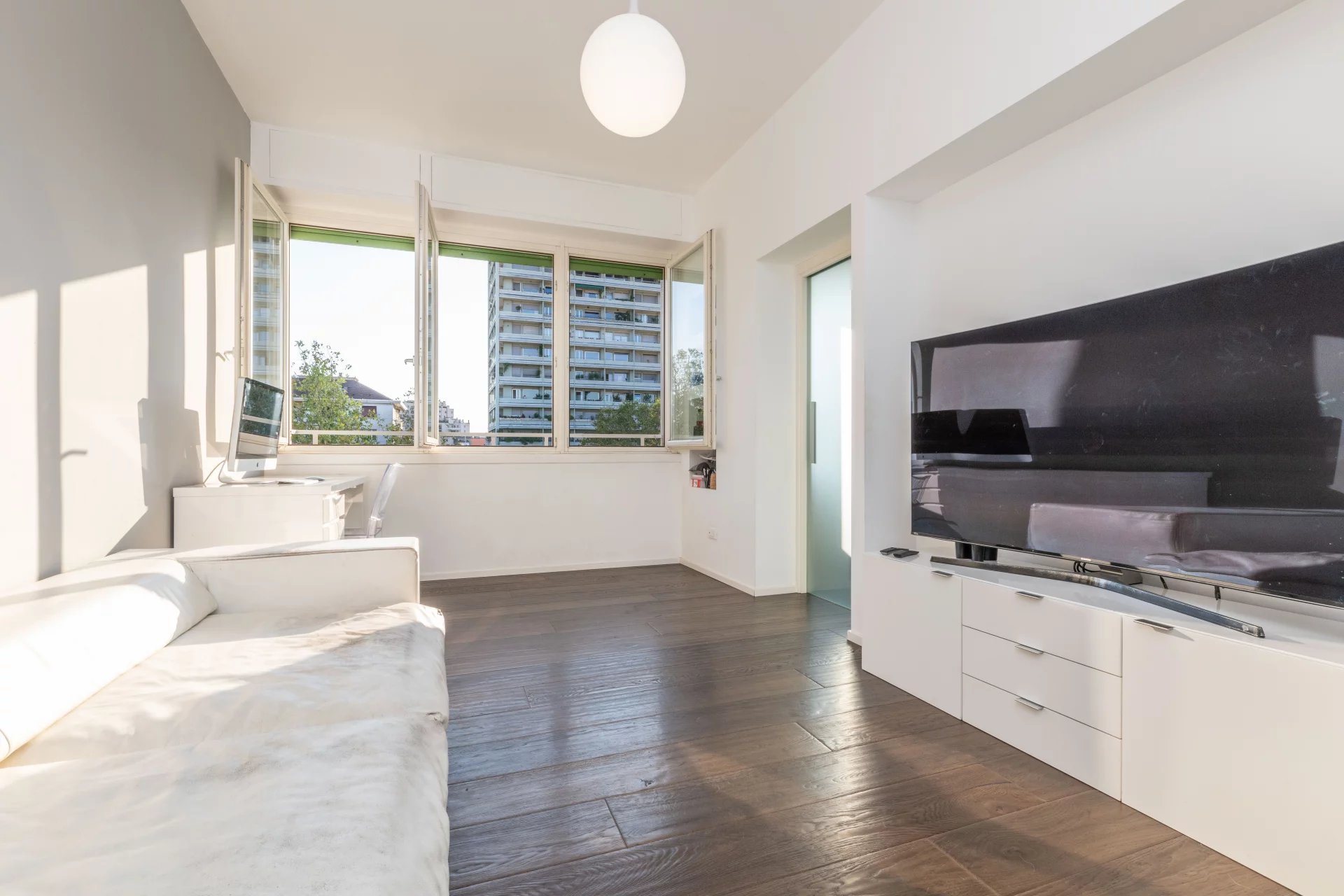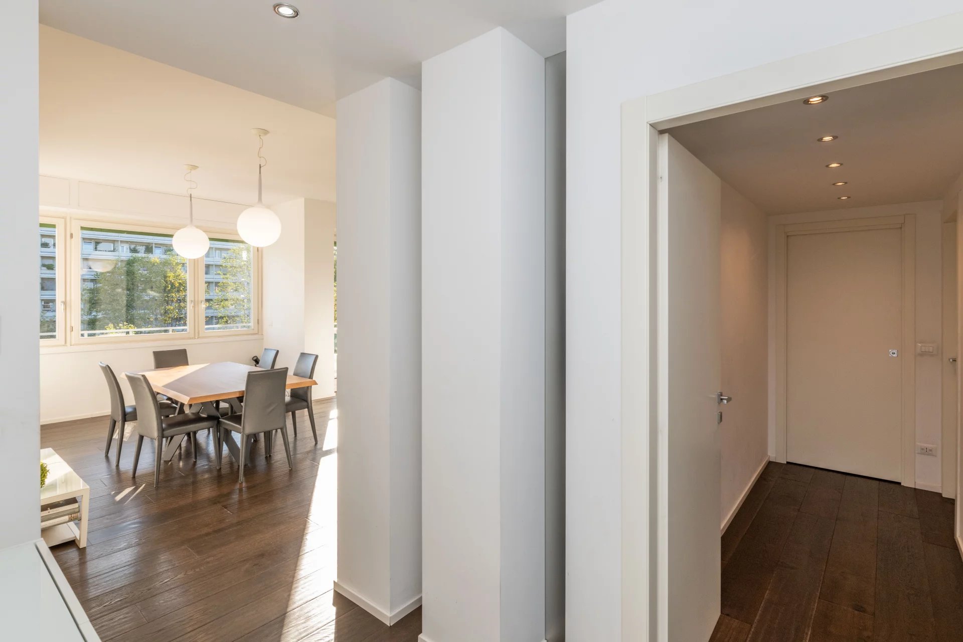 In elegant condominium with concierge all day, splendid apartment of approx. 130 sqm. on a high floor level, very bright and quiet, splendid panorama, finely restored with quality materials and a well-served position. Excellent internal distribution, comprising entrance hall, large living area, lounge with large kitchen area, three double bedrooms, two bathrooms and laundry room, 2 walk-in closets and storage room, 2 balconies. Large Cellar. Energy class .