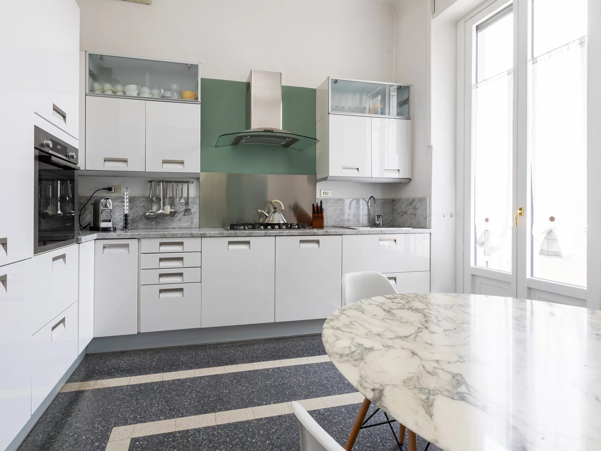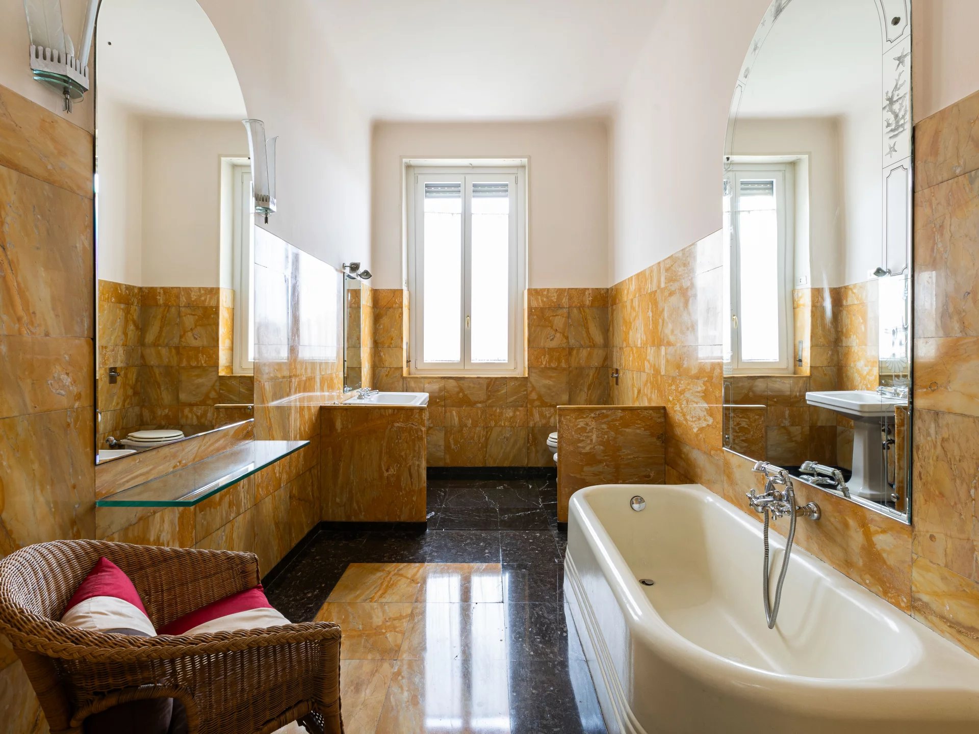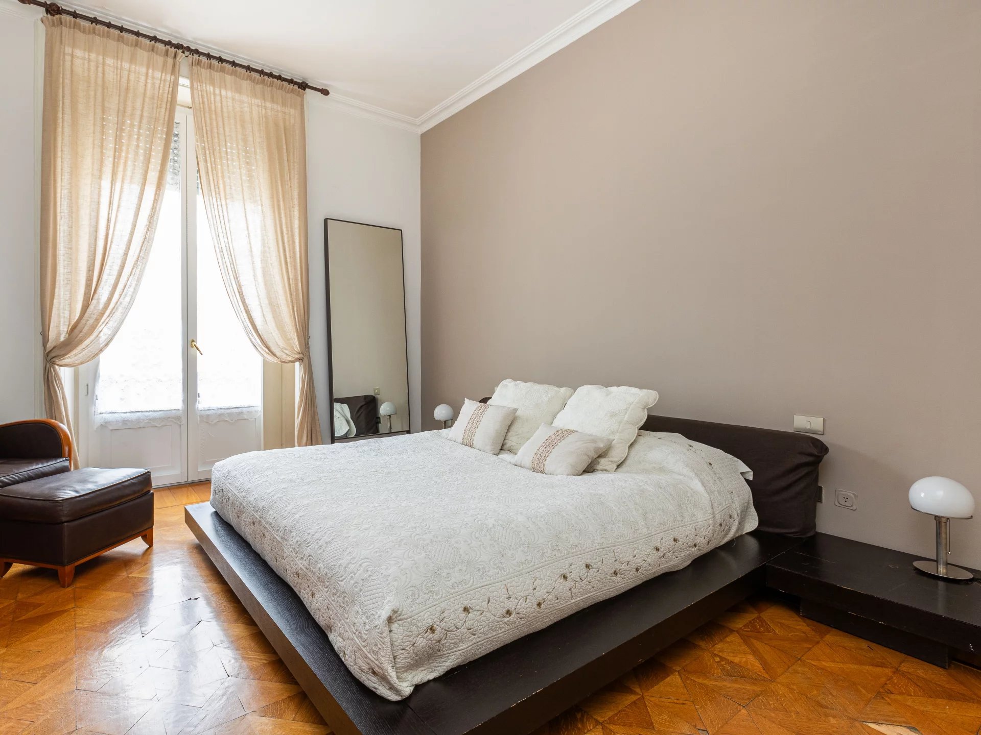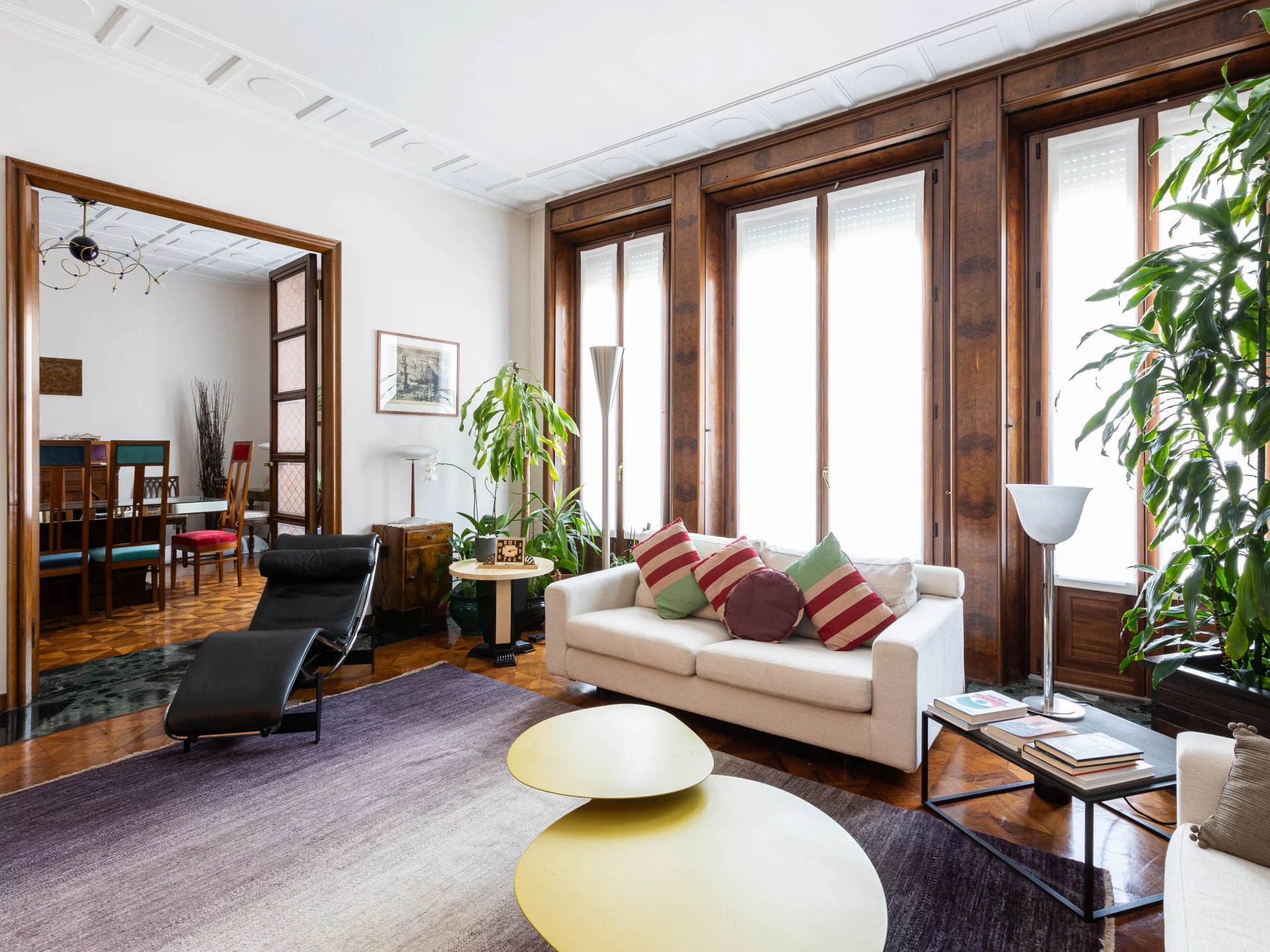 In an elegant period building internal context equipped with concierge service, elegant high floor apartment, very bright and quiet, of great charm, splendid and precious original finishes with high ceilings, very well laid out, composed of: two entrances and large entrance hall, large eat-in kitchen, triple living room, dining room, 4 bedrooms, storage closets and 2 bathrooms. 5 balconies. Attic and large cellar. Possibility of garage.