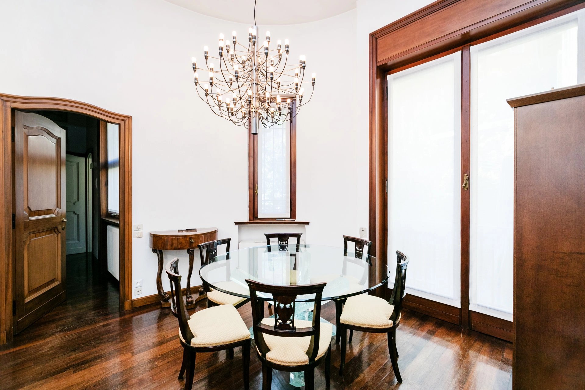Learn moreIn a very private location, exclusive elegant villa very bright and quiet of great charm and architectural value, sqm. 500 approx. Very well arranged, internal lift, precious original interiors with high ceilings, large terraces and large internal garden, outbuilding and three large garages. Energy class G.