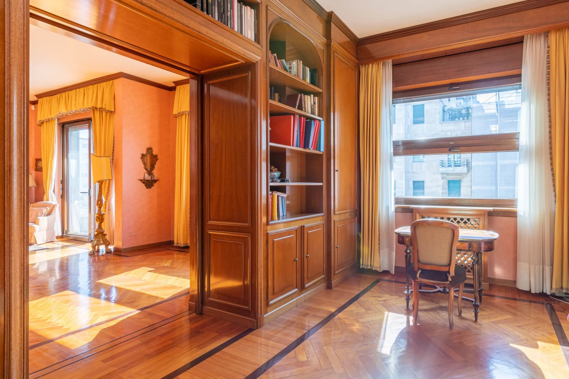 EXCLUSIVE TO JOHN TAYLOR,bright prestigious and elegant apartment, 170 sqm. approx. on the sixth floor of an elegant building with concierge and two lifts composed of a large entrance hall that opens onto the living room and dining room which leads to a large study in boiserie, parquet floors, spacious kitchen with laundry corner. The sleeping area consists of two double bedrooms with en-suite bathrooms and generous wardrobes. The property includes a cellar in the basement. Energy class G