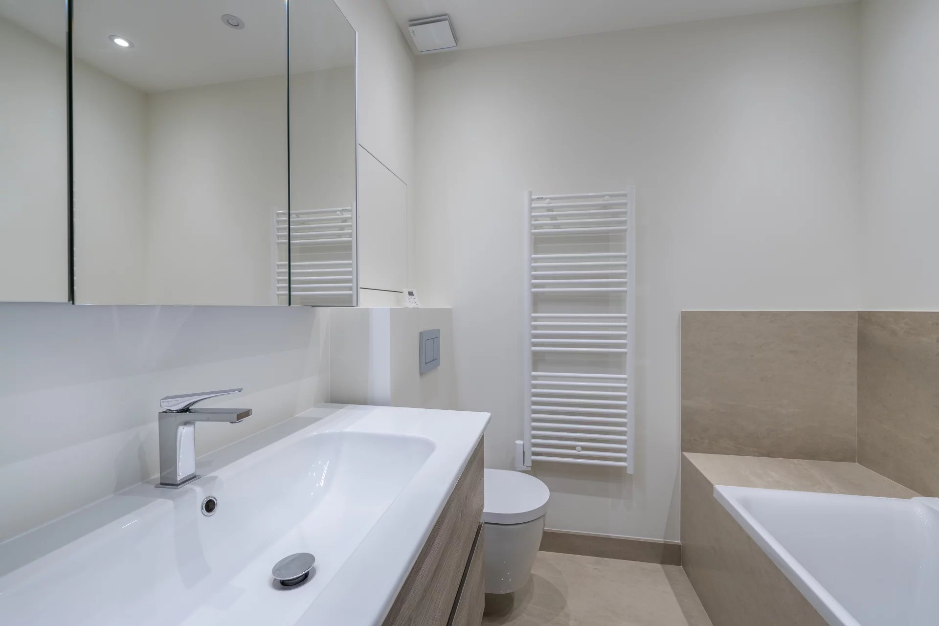 - a bedroom with its bathroom opening onto a rear loggia