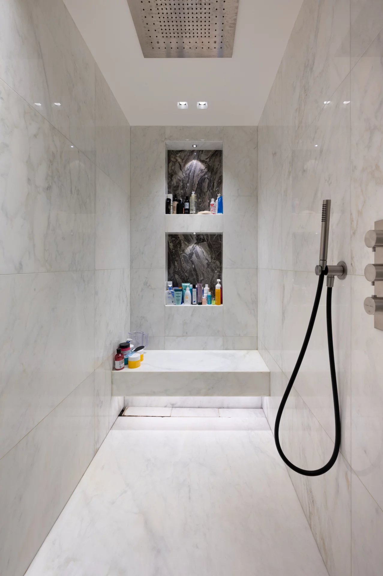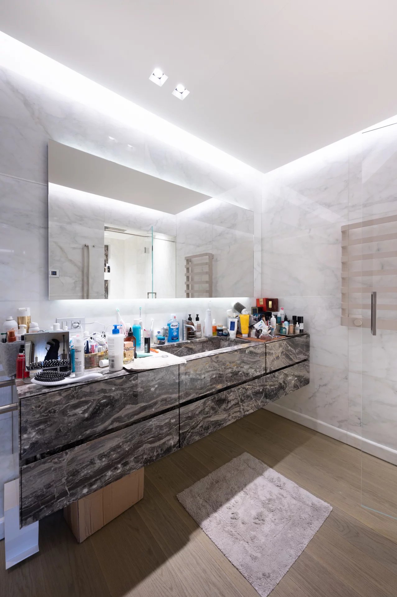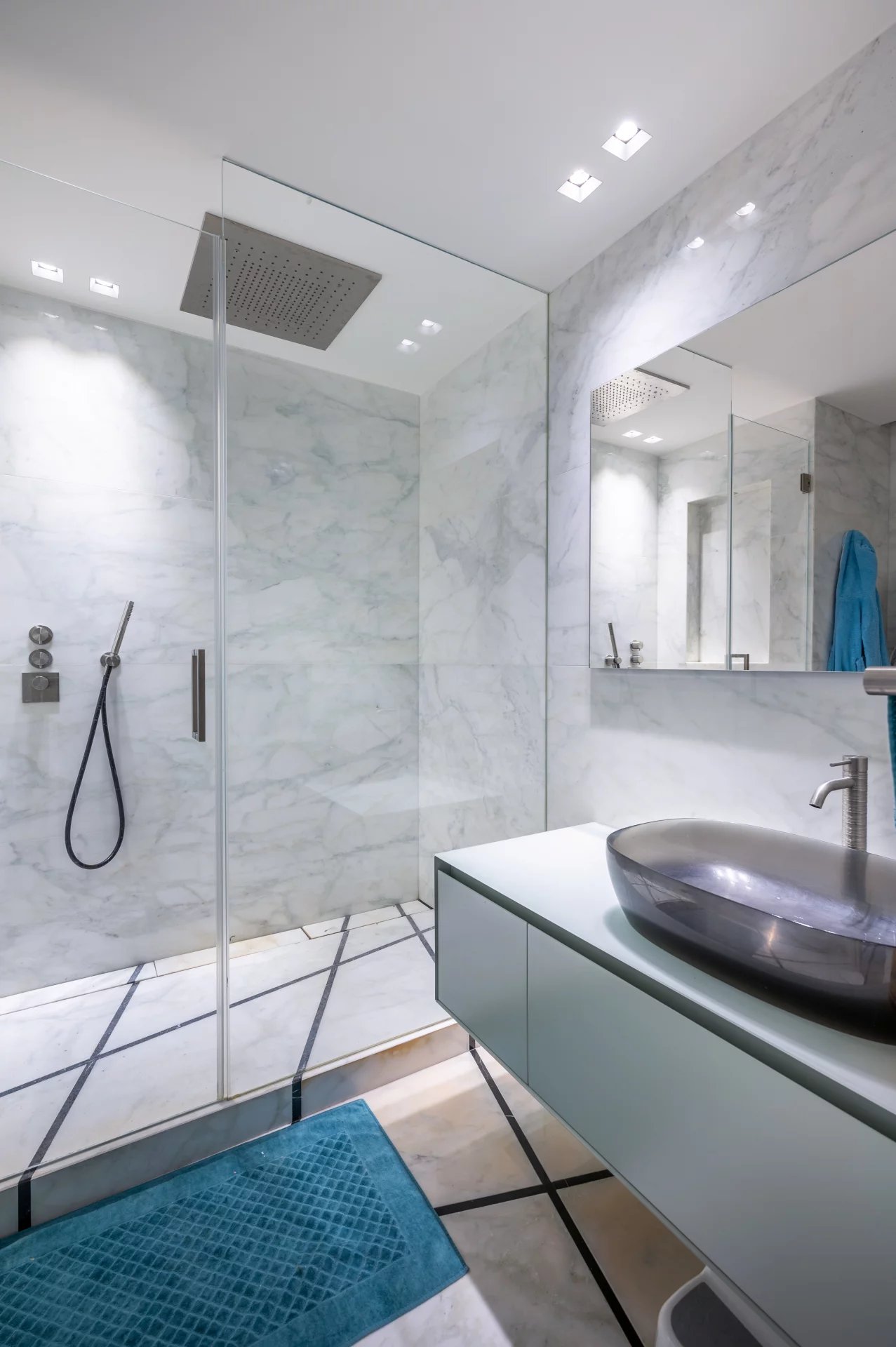 Among the particularities of this renovation are the magnificent volumes of all the rooms and the highest quality materials, parquet and precious marble for the floor and the coverings.