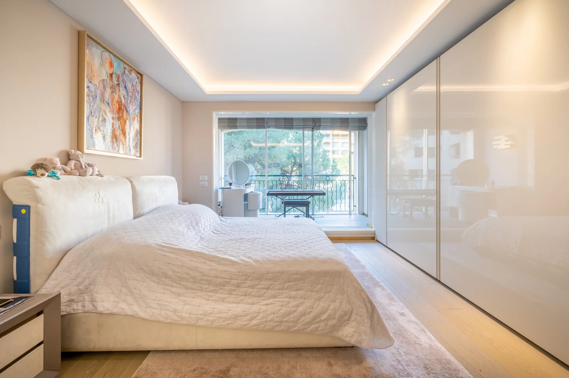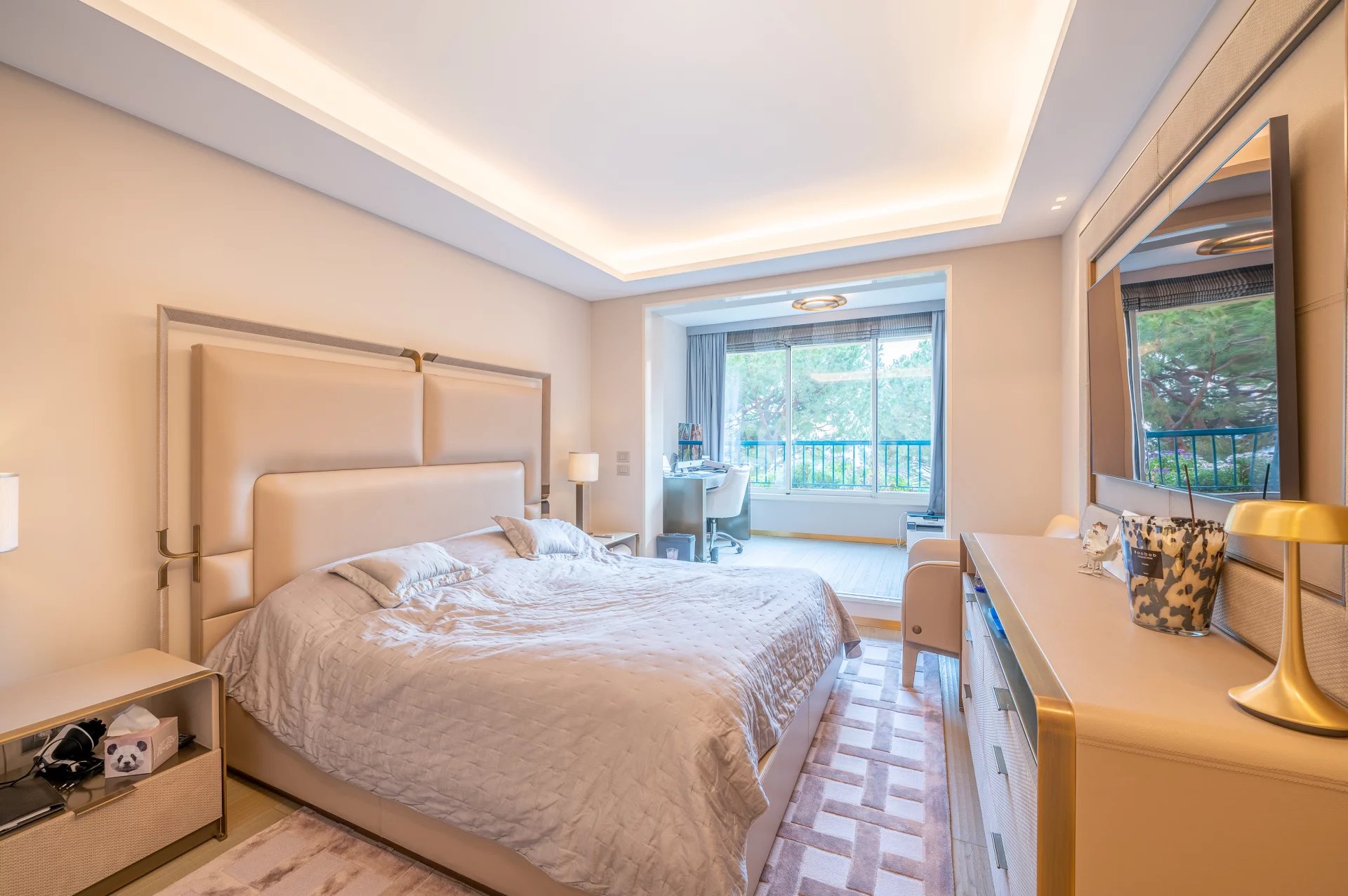 - Spacious master bedroom with an office overlooking the gardens, palm trees and the sea,