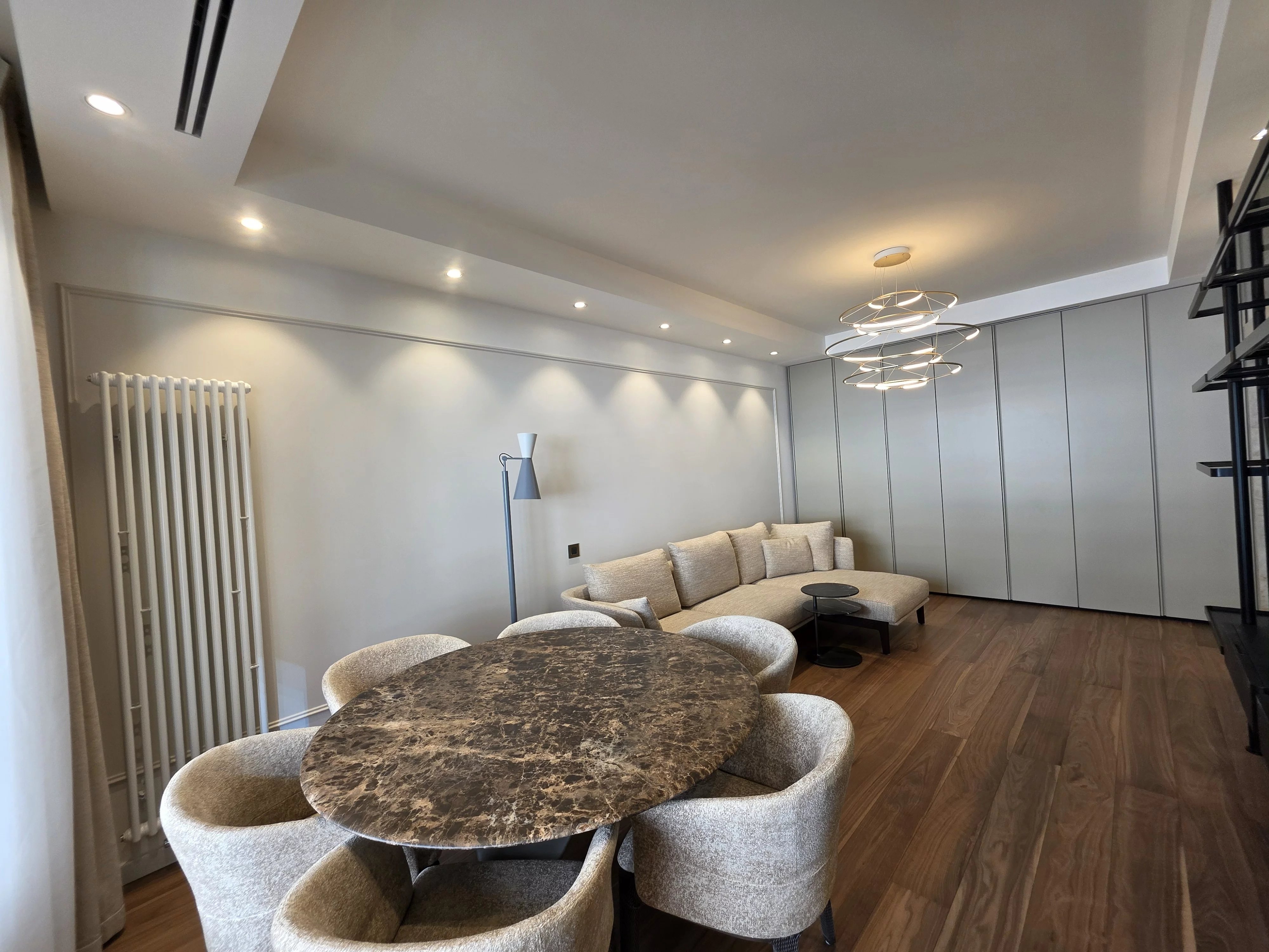 This superb 3-room apartment has been completely renovated to a high standard and fitted out with bespoke furniture, offering a refined, contemporary living environment.