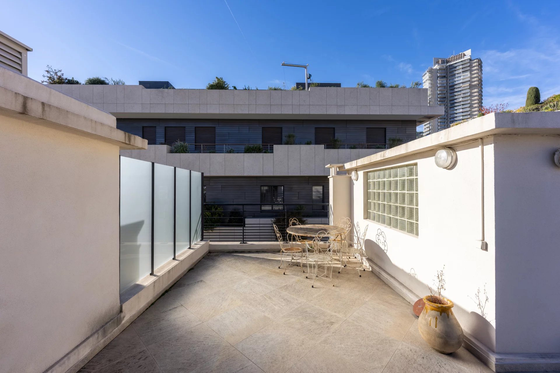 The upper floor unveils a superb 111.3 m² roof terrace, entirely private and equipped with an outdoor kitchen, ideal for outdoor living.