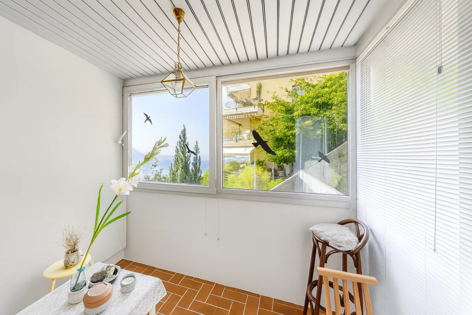 Very rare on the market, grab it now… be the first to visit! 2.5-room apartment in the heart of Montreux, close to all amenities (no car needed). Building constructed in 1999, equipped with an elevator. The apartment is located on the 4th floor. Renovated in 2021, it is in perfect condition. It offers a large 40 m² terrace with a magnificent lake view. Living room, closed kitchen, and 1 large bedroom, all rooms with outdoor access, 1 bathroom/shower, and 1 separate toilet. Large cellar. IMPORTANT: this apartment does not have a parking space, but one can be rented in the building or nearby.