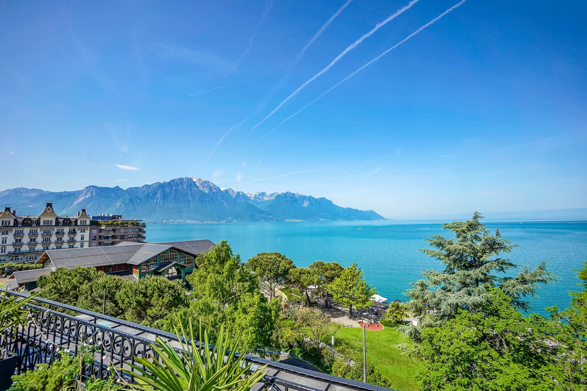 -Lovely view of the lake, the mountains and the city of Montreux.