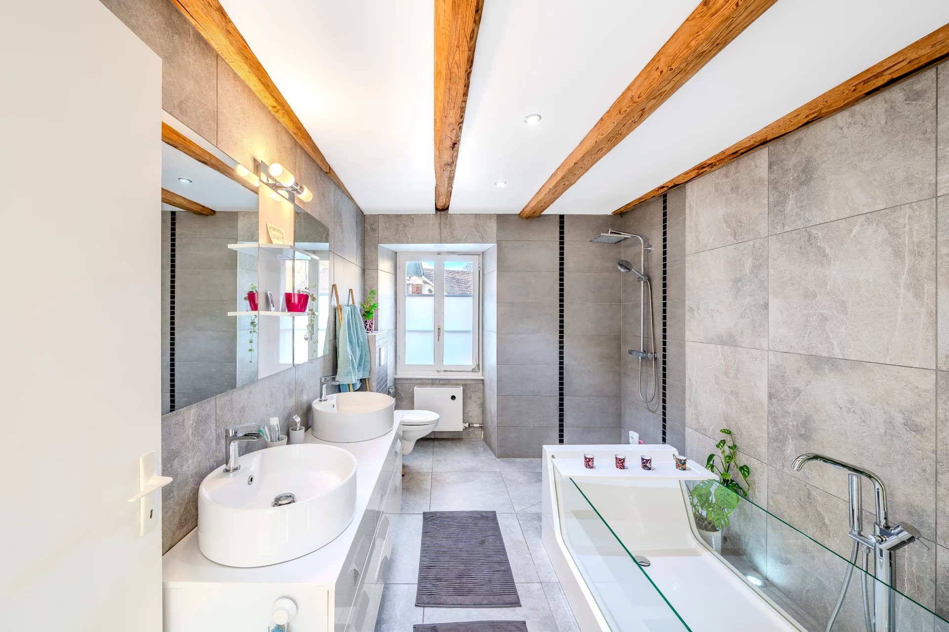 Located in a small condominium in a quiet, residential area, this 3.5-room apartment enjoys a privileged location in the heart of the vineyards, with unobstructed views of Lake Geneva and the mountains.