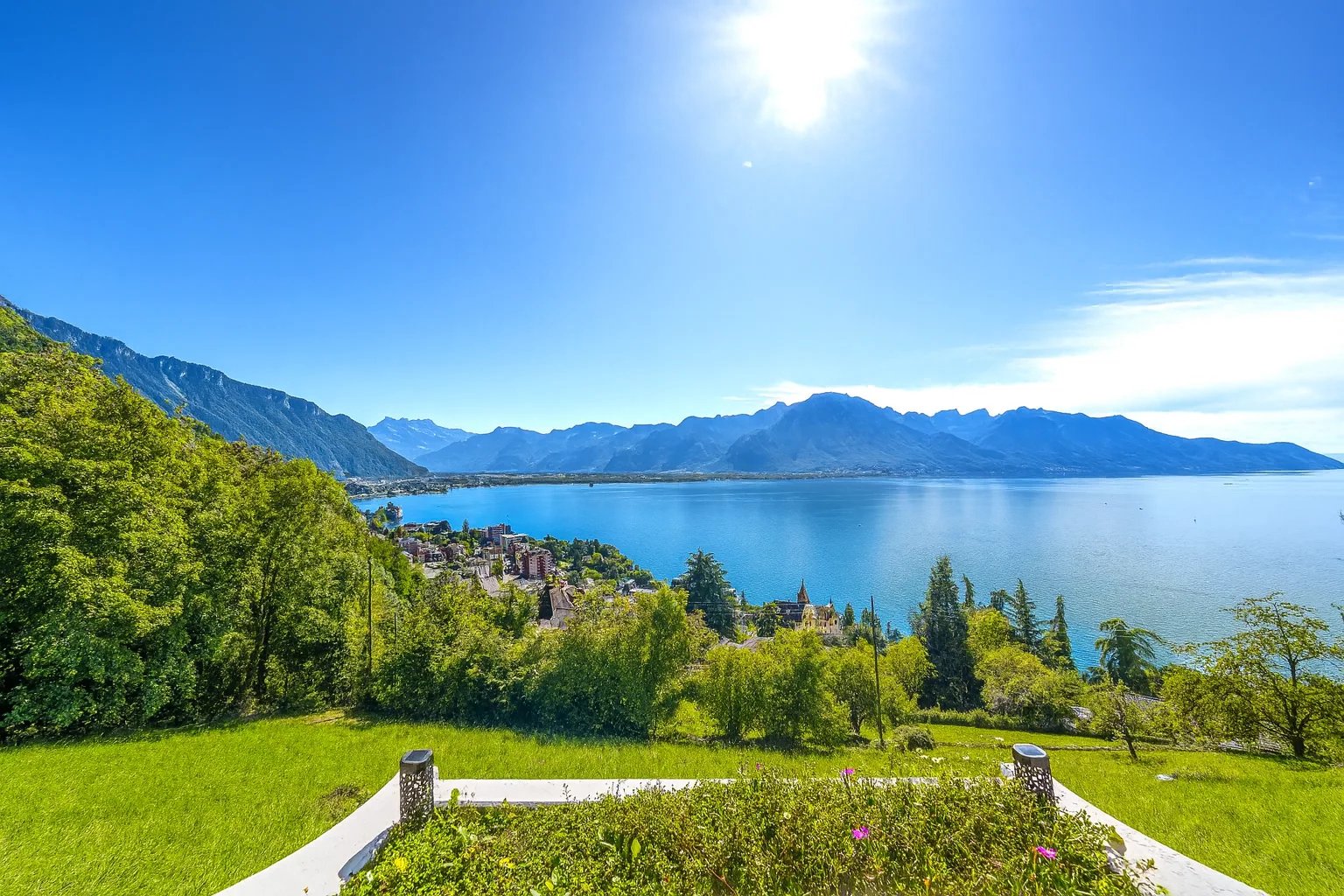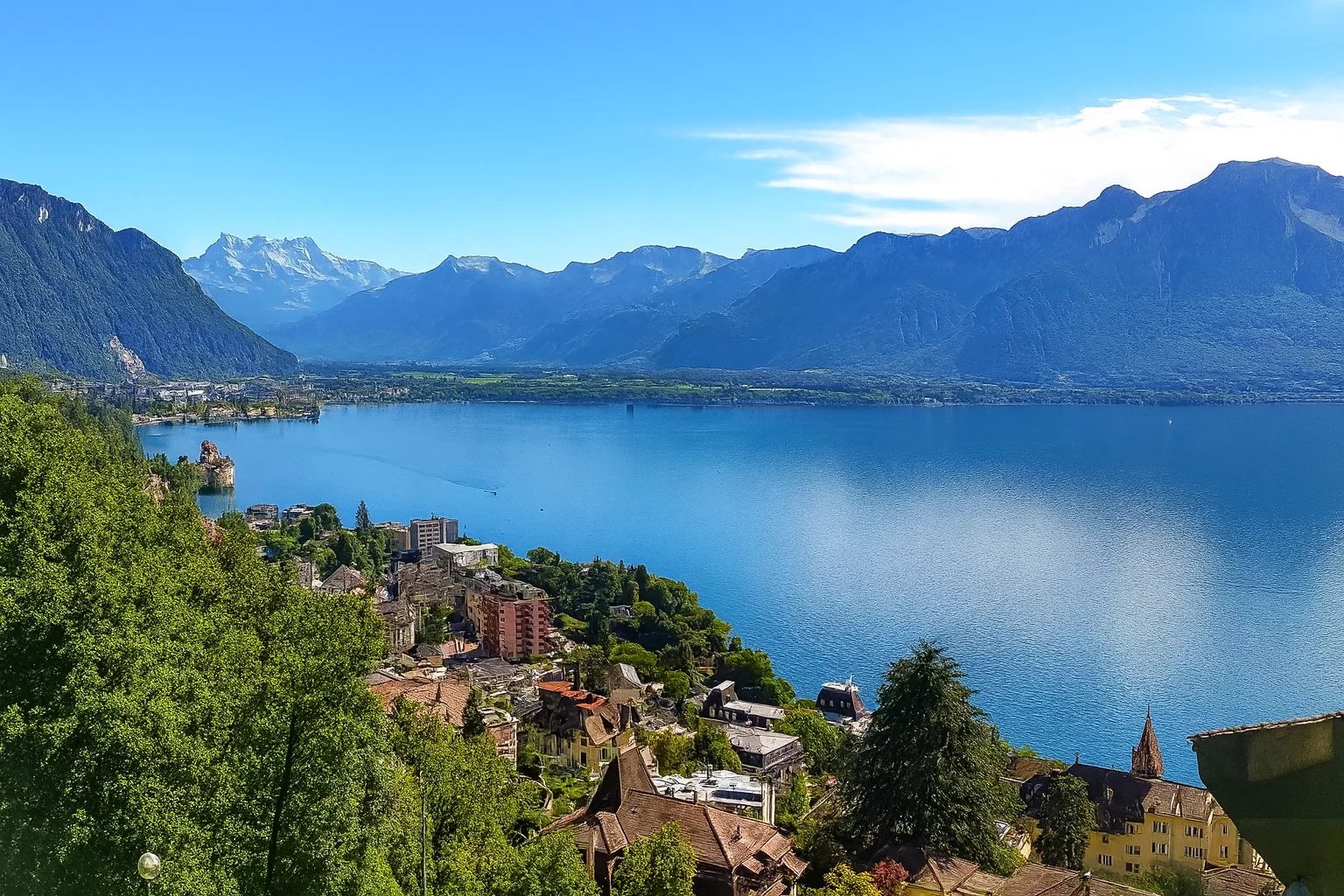 -180° panoramic view of Lake Geneva, the Alps and the entire Montreux region