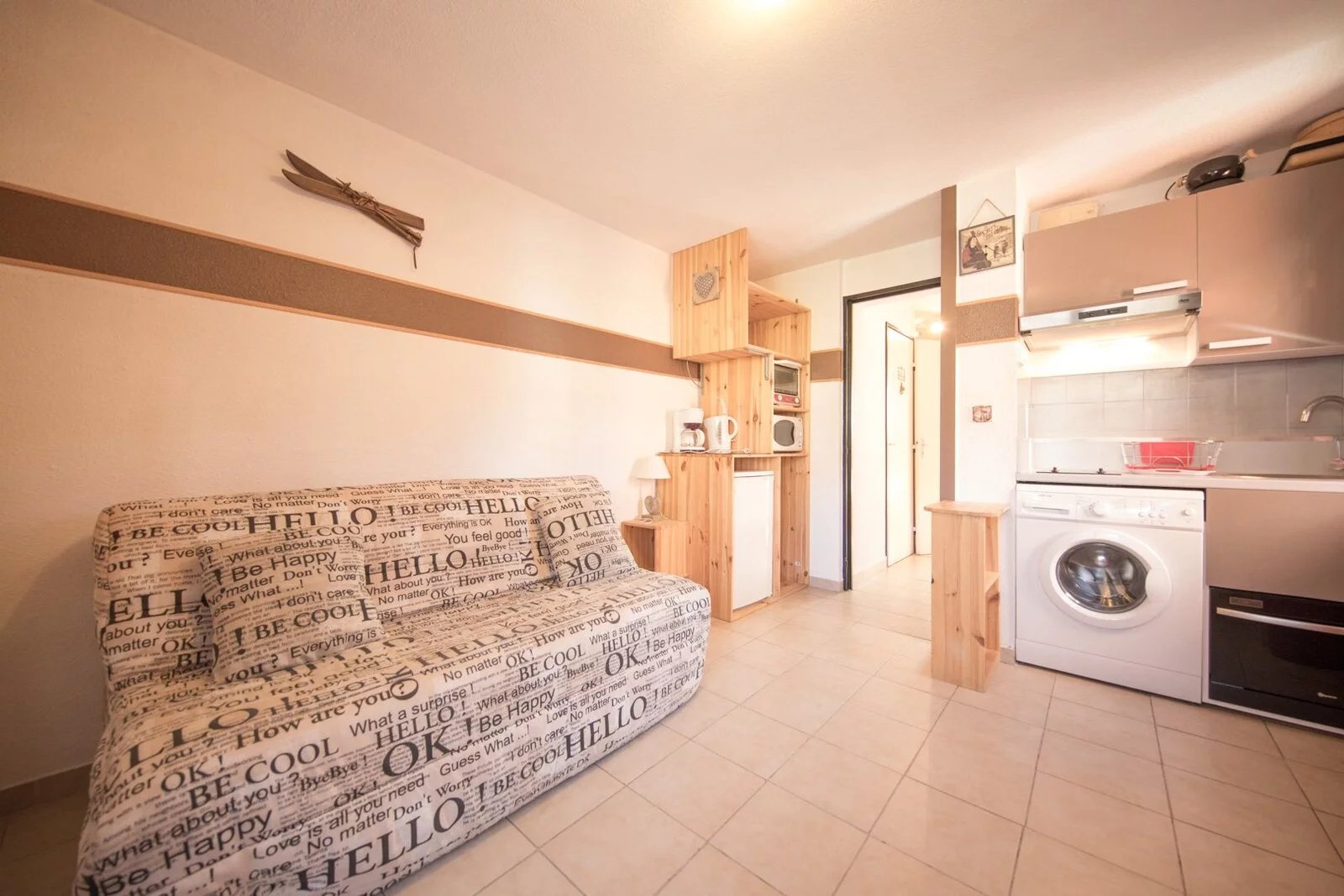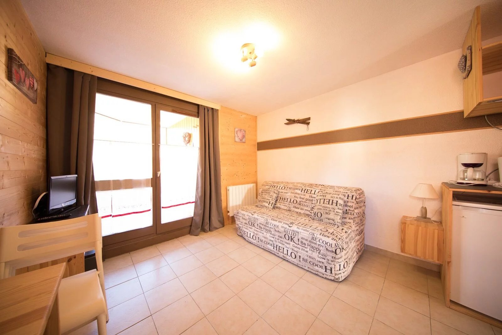 Located in a quiet area, close to the shuttle station, discover this 2 room apartment of 23 sq.m. It includes an entrance, an equipped kitchenette open on dining room and living room with access to a terrace, a bedroom with bunk beds, a bathroom and an independant toilet.
