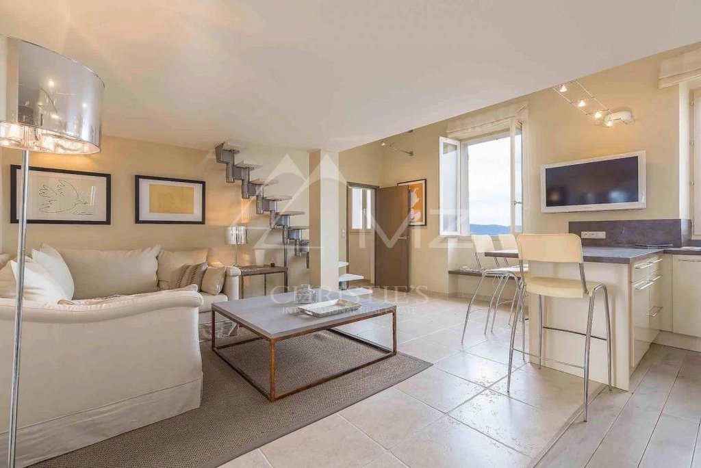 Situated in the heart of the old village of Mougins, on the main square, next to restaurants and art galleries, this sunny apartment consists of an open kitchen leading to the living room and two bedrooms with a bathroom