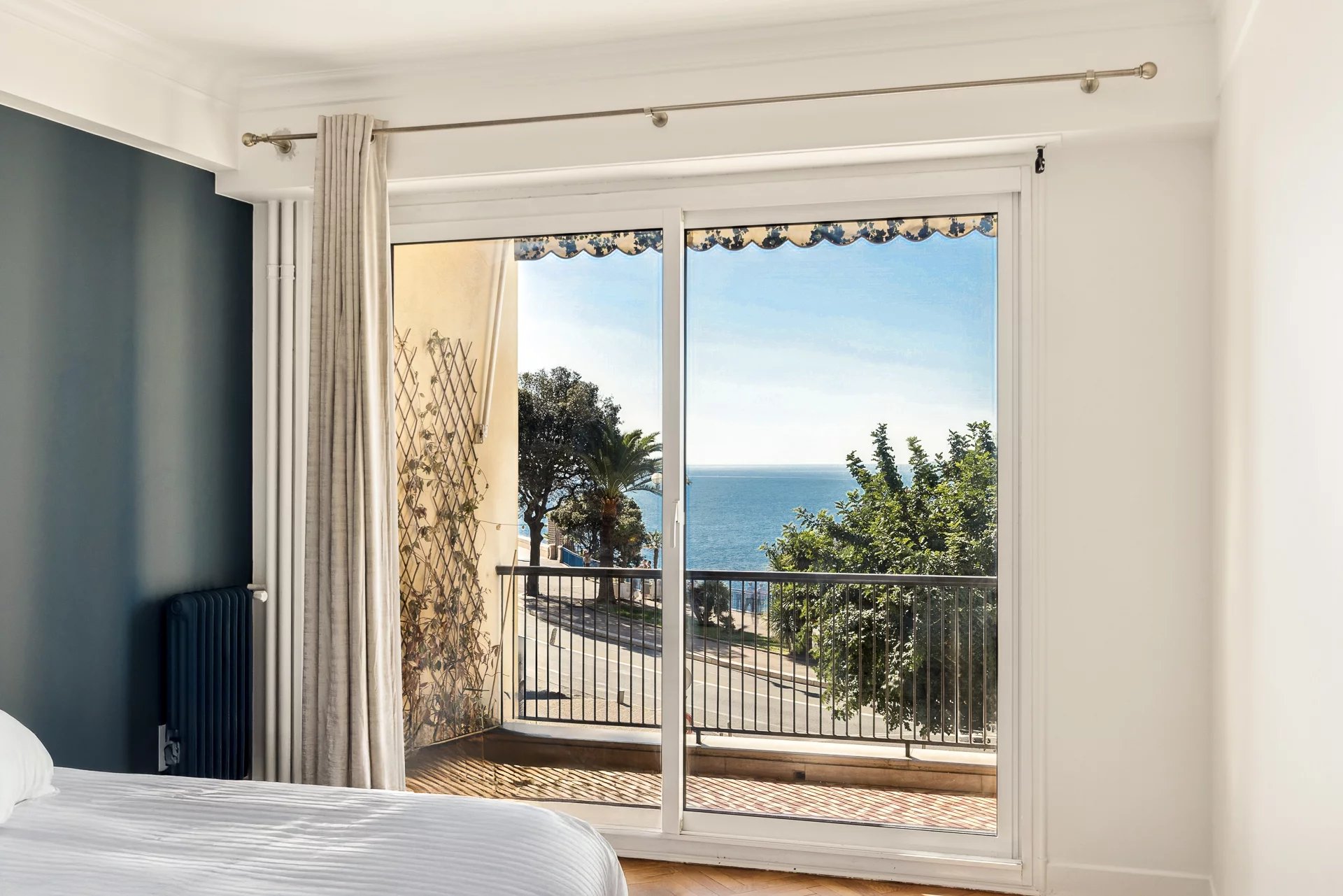 This stunning, fully air-conditioned apartment features a spacious entrance hall, a bright living room opening onto a terrace with a panoramic sea view, an independent kitchen with access to a balcony, two beautiful bedrooms with magnificent sea views, a bathroom, and a separate toilet. Numerous storage spaces. A unique property ideally located near the most prestigious areas of Nice, such as the Promenade des Anglais, Place Masséna, and the Port.