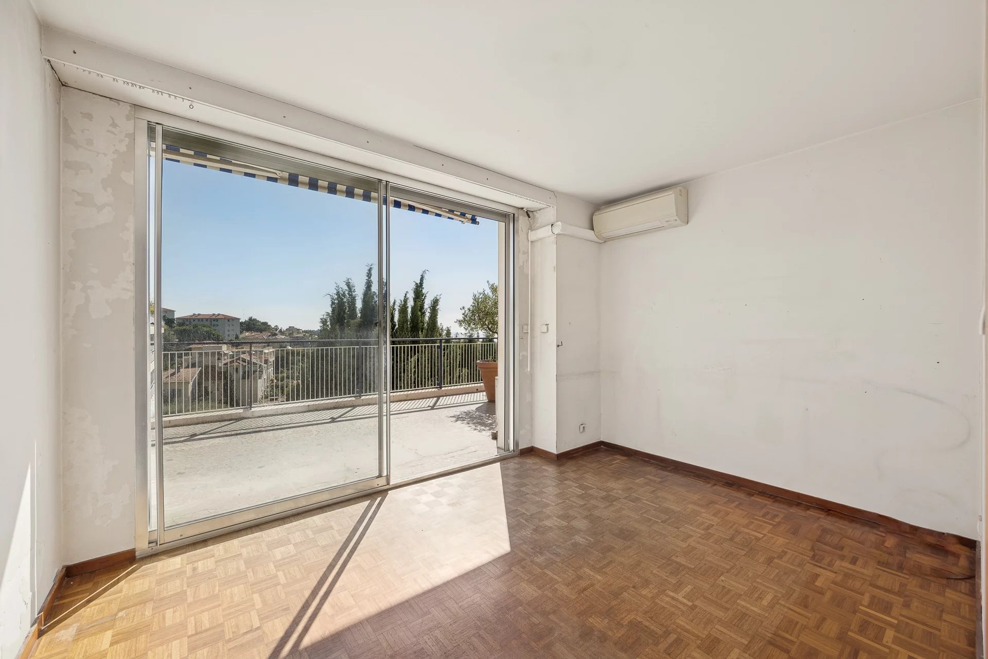 In the heart of Cimiez, a top-floor corner apartment in a prestigious residence with landscaped grounds and concierge service. Accessible via a private elevator, it features an entrance hall, a living room with office or lounge area, a fully equipped independent kitchen, two bedrooms, and a bathroom.