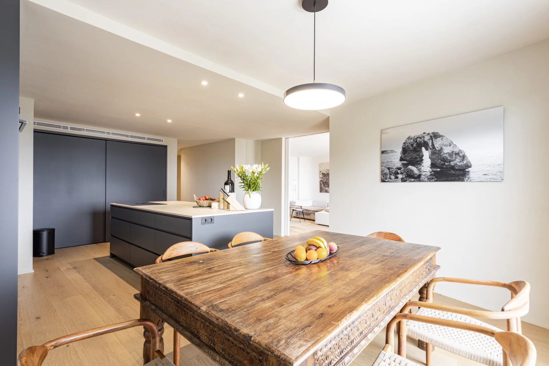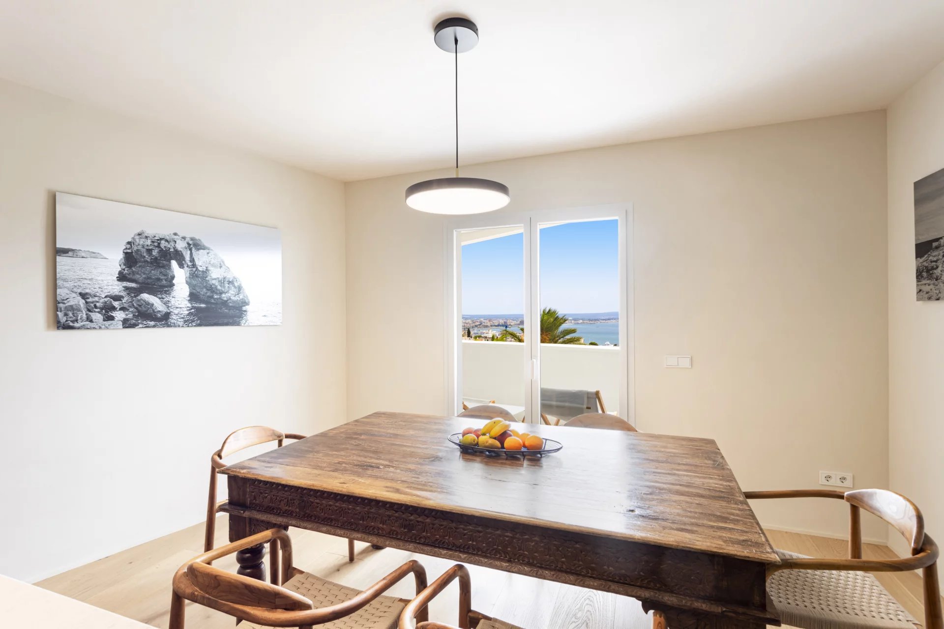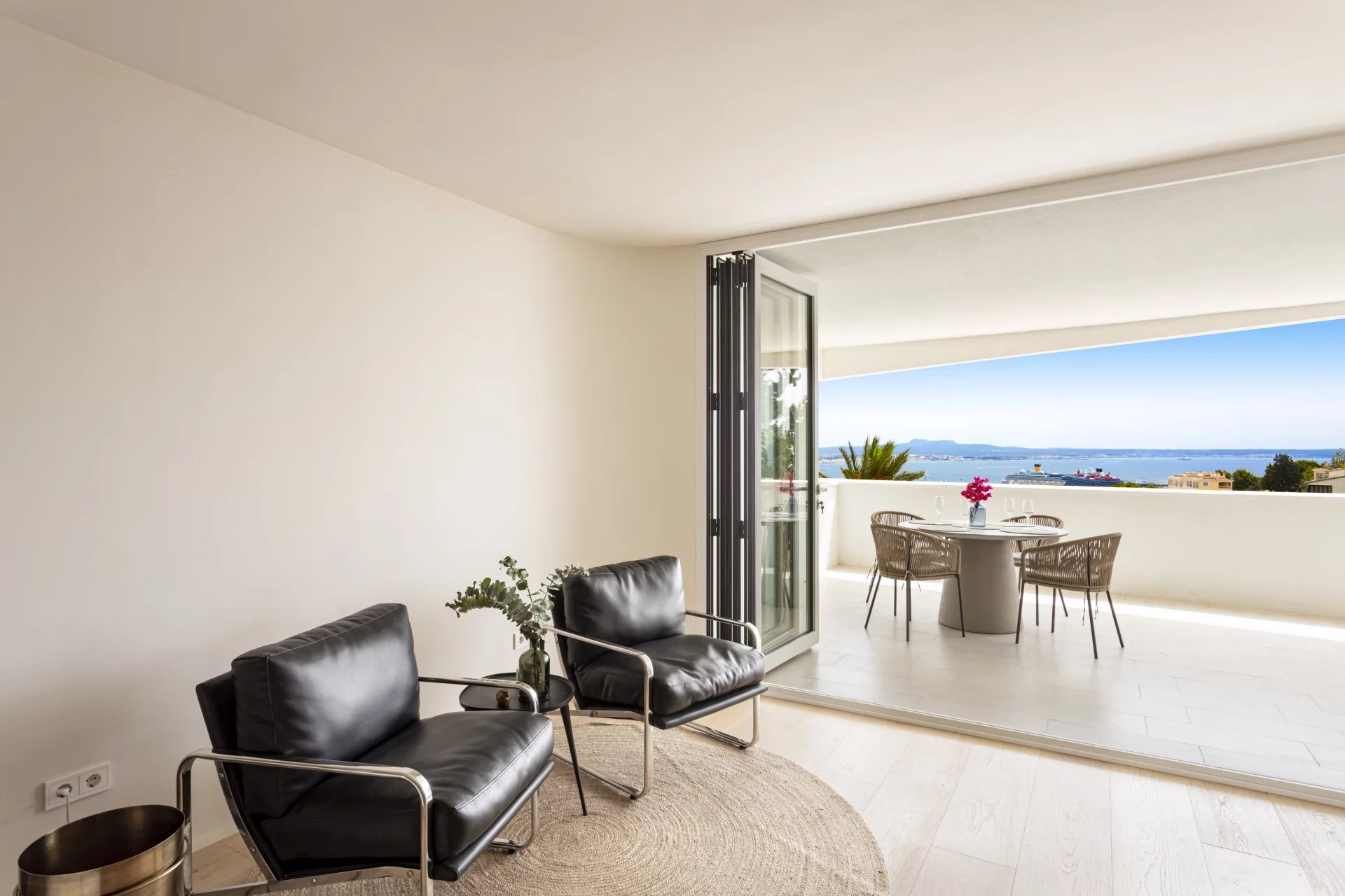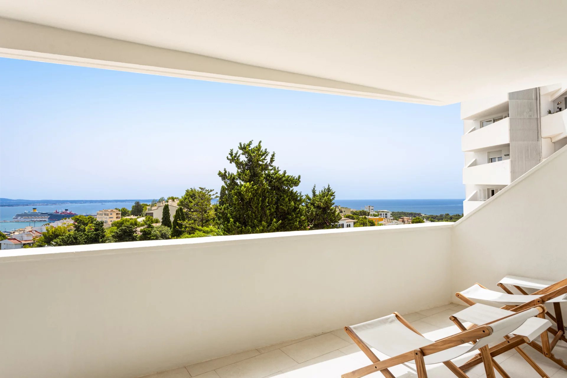 In the iconic community of Los Cipreses, with its unmistakable silhouette, this recently 100% renovated apartment is the reference to follow. Design, functionality, quality and refined taste are complemented by facilities that leave nothing to be desired; Care Taker, garage, storage room, well-kept communal gardens and swimming pool, children's area, new elevators, direct access to the Park, etc. The property has been completely renovated. On 176 m2 there are two bedrooms with en-suite bathrooms, one with a sauna and the other with its own terrace, a large and very impressive kitchen with its own dining area and access to the terrace, a spacious living room with different atmospheres, which also leads onto the large 20 m2 terrace which offers unbeatable panoramic views from Bellver Castle to the island of Cabrera, the cathedral and the bay of Palma. Underfloor heating under oak parquet flooring, air conditioning, windows and doors with frames and glass guarantee maximum energy efficiency and comfort.
