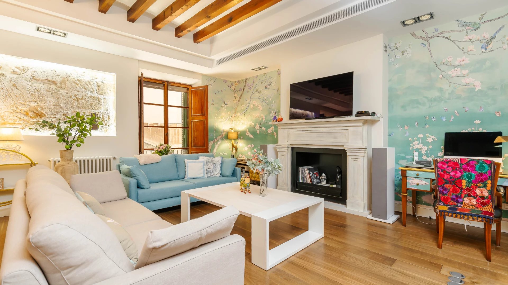 Located in the heart of Old Town Palma, right next to the Cathedral, this historical building represents the grandeur of the past with the advantage of having being completely reformed a few years ago. With only 5 residences, this duplex mezzanine apartment which was completely reformed in 2020 offers a very spacious interior, consisting of an open plan fully fitted kitchen, dining and living area with a representative fireplace, ideal for cosy evenings at home. Large windows throughout assure the maximum amount of natural light. The master bedroom with bathroom ensuite is also on the main floor. On the lower floor are two further bedrooms and one bathroom. The property comes with a/c h/c, and also gas central heating with guarentee the perfect temperature year round and private parking for one car. Without doubt the perfect option for those looking for a priviliged location that gives its owners access to everything that Old Town Palma offers.