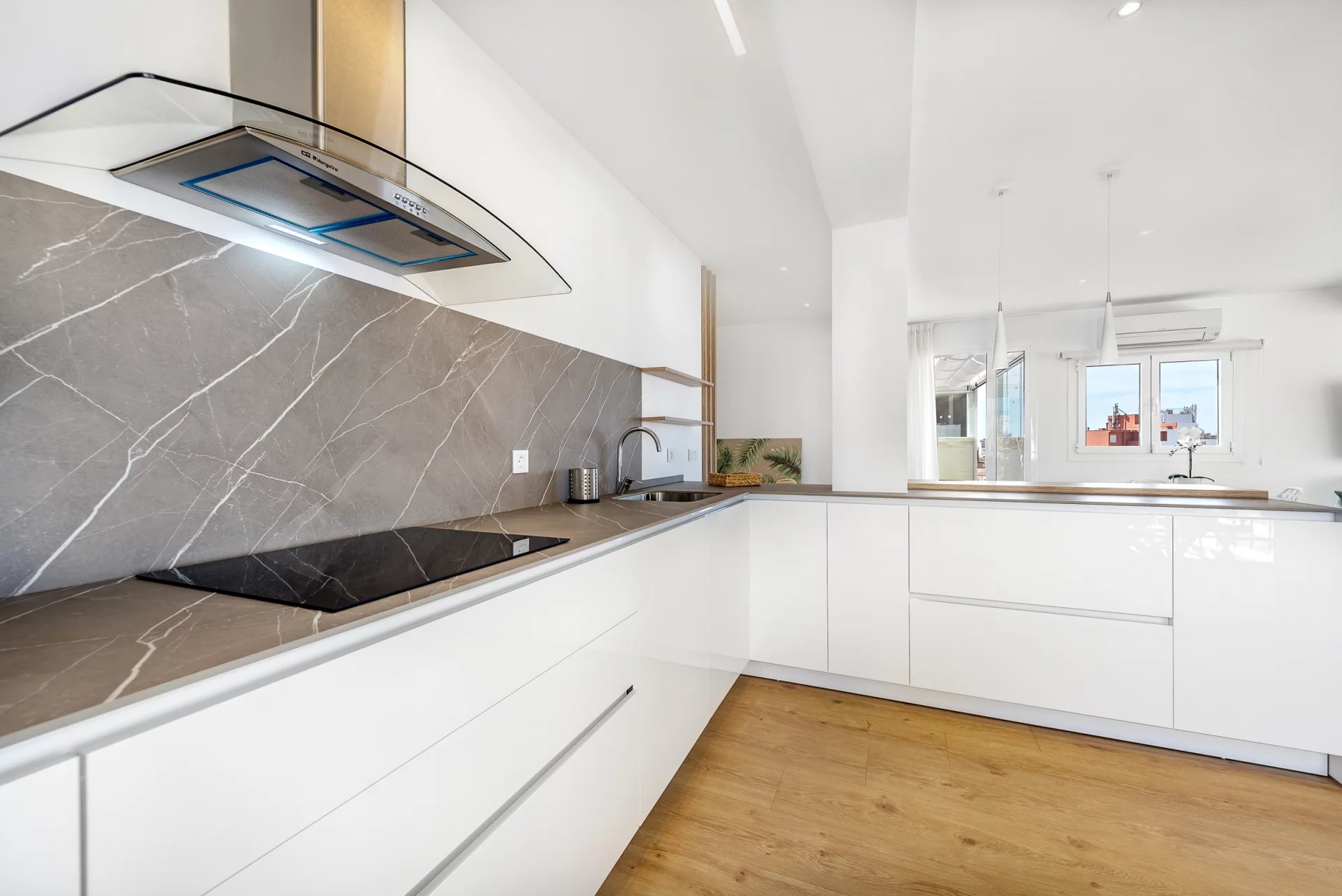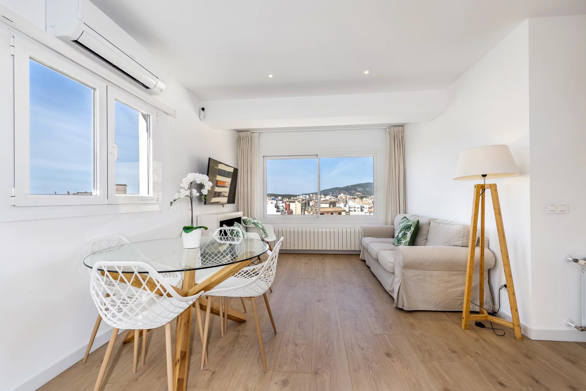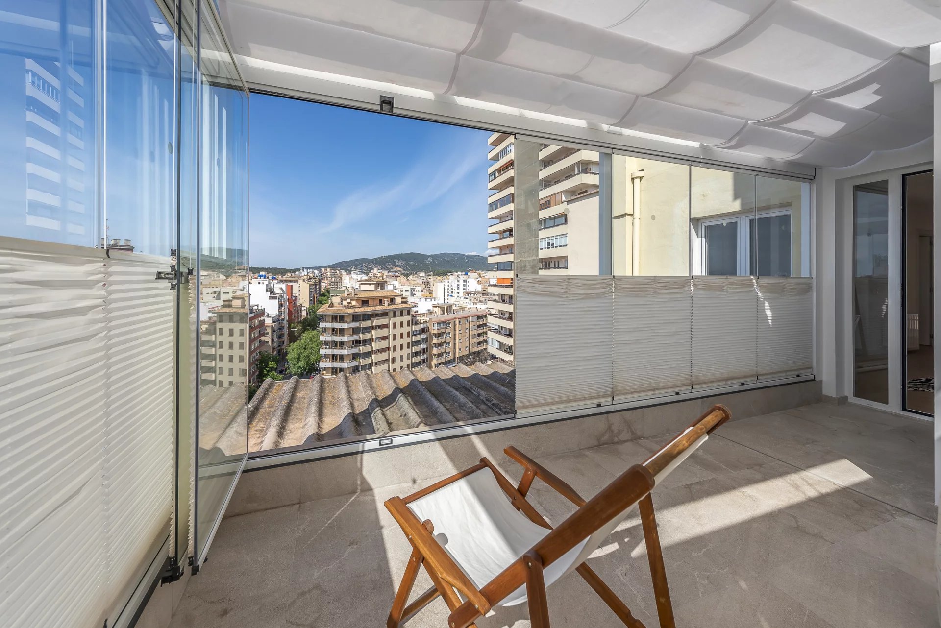 Bright penthouse recently renovated with spectacular views of Palma. Very cozy and with 2 large terraces to enjoy the sun or shade at any time of day. Of very modern and comfortable design, it offers two bedrooms, an open space kitchen, and a living room, very well differentiated from each other and with access to the terraces at the same level. Fully equipped kitchen, central heating and air conditioning, and a fireplace guarantee maximum comfort throughout the year.Parking.