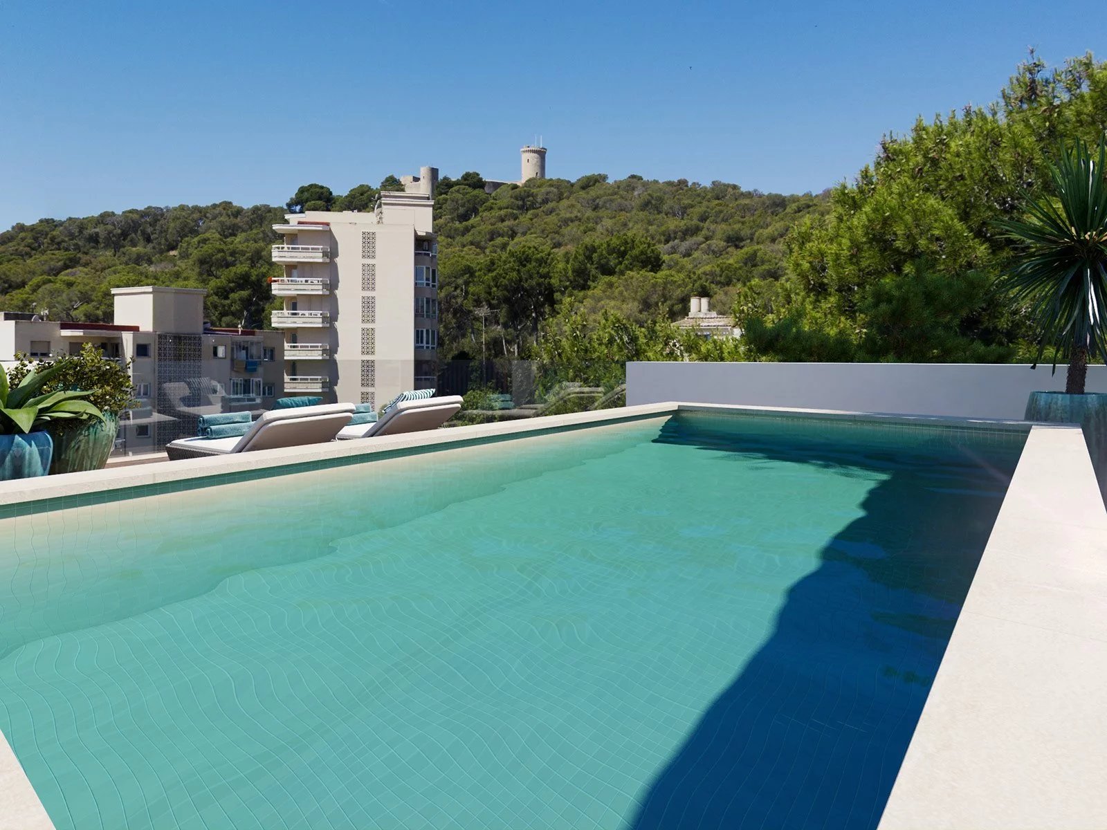 This apartment offers three bedrooms and two bathrooms with 86m2 indoor living and 36m2 of exterior covered and uncovered terrace. There is underfloor heating and air-conditioning throughout the apartment, indirect lighting, stone and wood floors and an excellent standard of appliances and all bathroom, kitchen and flooring materials are from Porcelanosa. One garage parking and a storage space are included in the price.