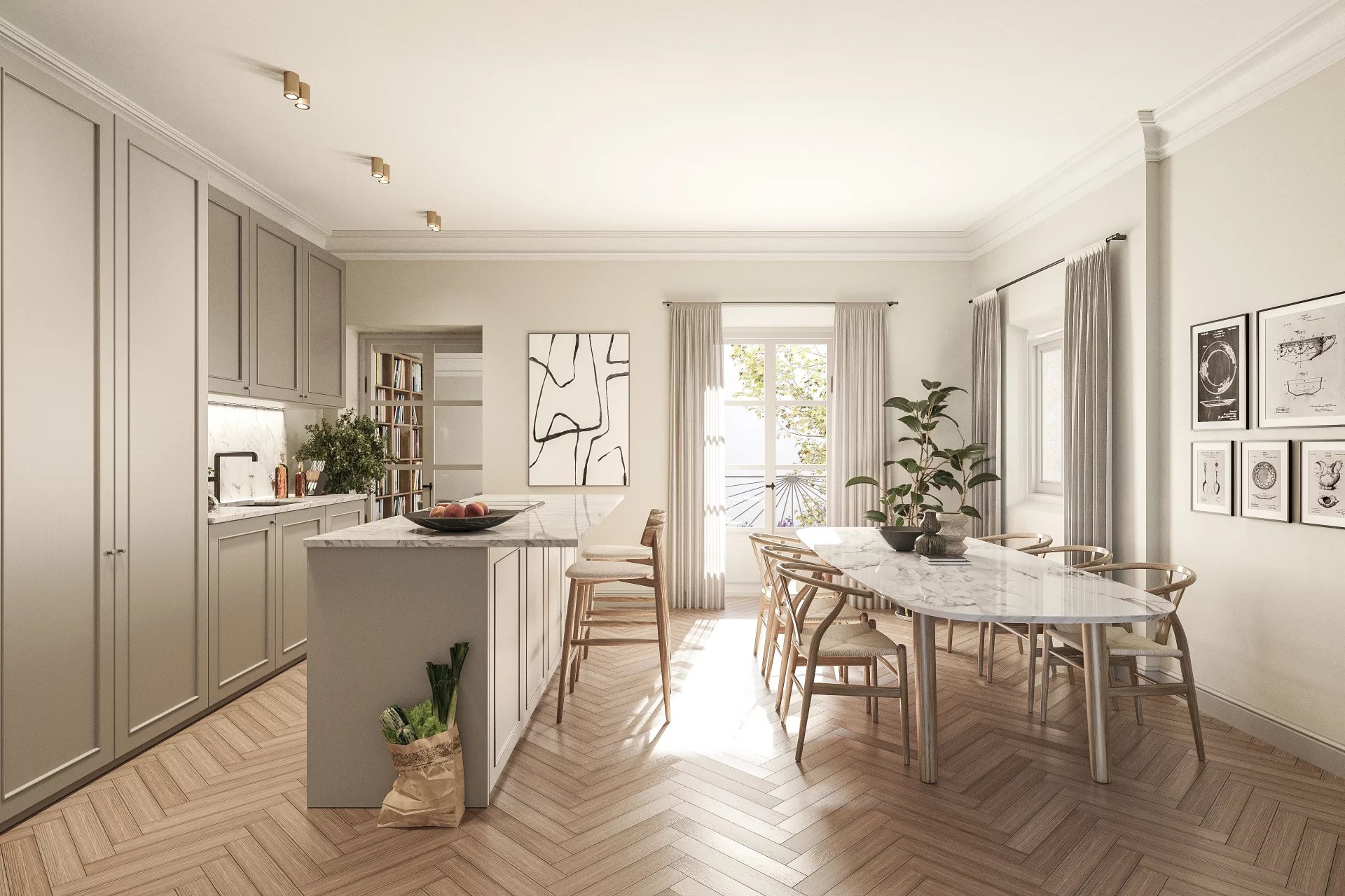 This ground-floor duplex, featuring a rooftop terrace, offers incredible natural light through its floor-to-ceiling windows that face the private 11 sqm garden. Its 35 sqm open-plan kitchen, dining, and living area are both comfortable and spacious. This floor is completed with a storage room and a guest lavatory. The first floor includes 2 large bedrooms with en suite bathrooms and a laundry room. Last but not least is the fantastic 18 sqm rooftop terrace, perfect for enjoying the best of the Mediterranean climate. All floors are accessible via a private lift, assuring maximum comfort.
