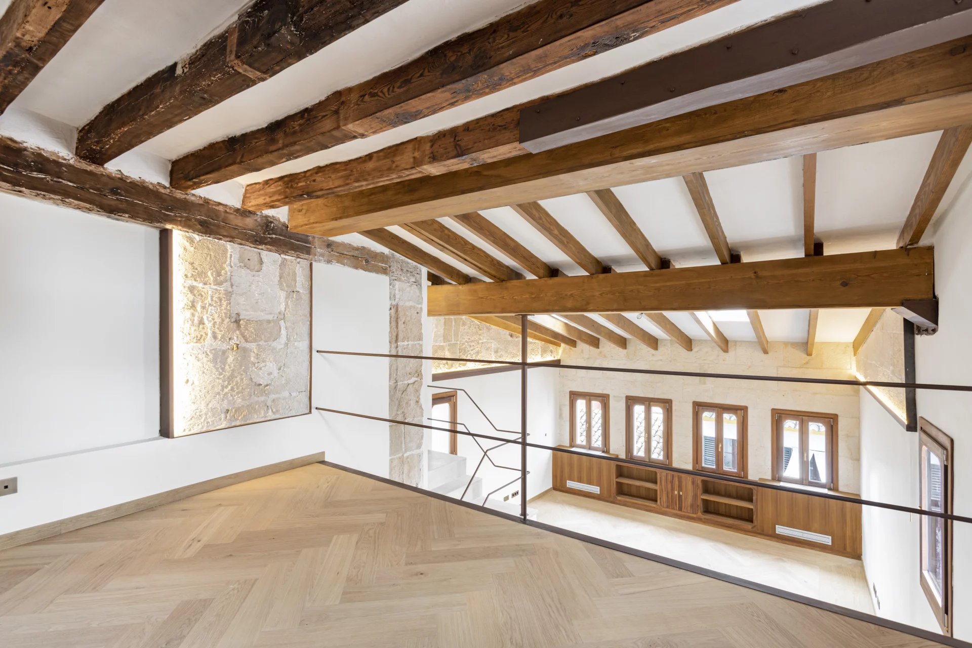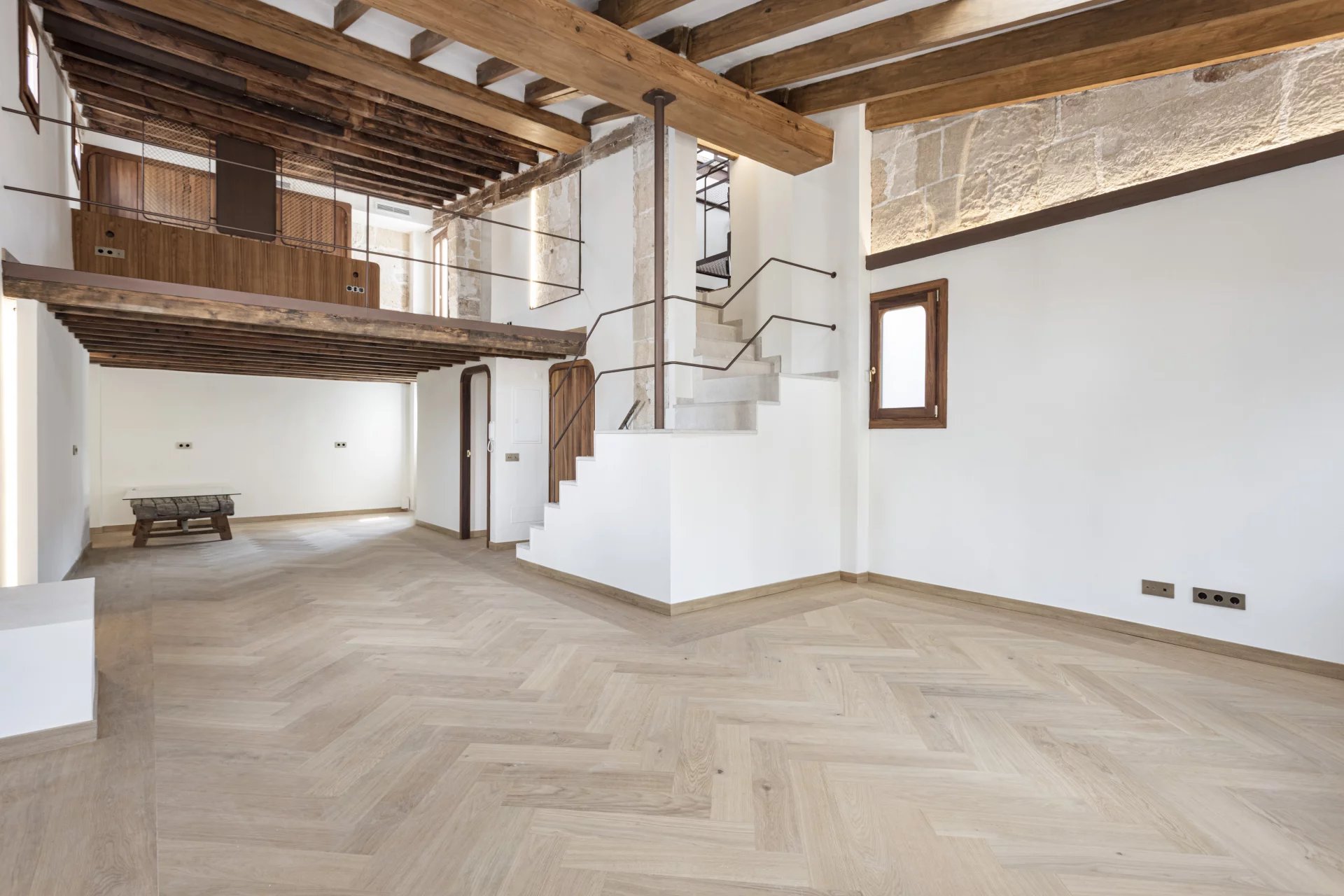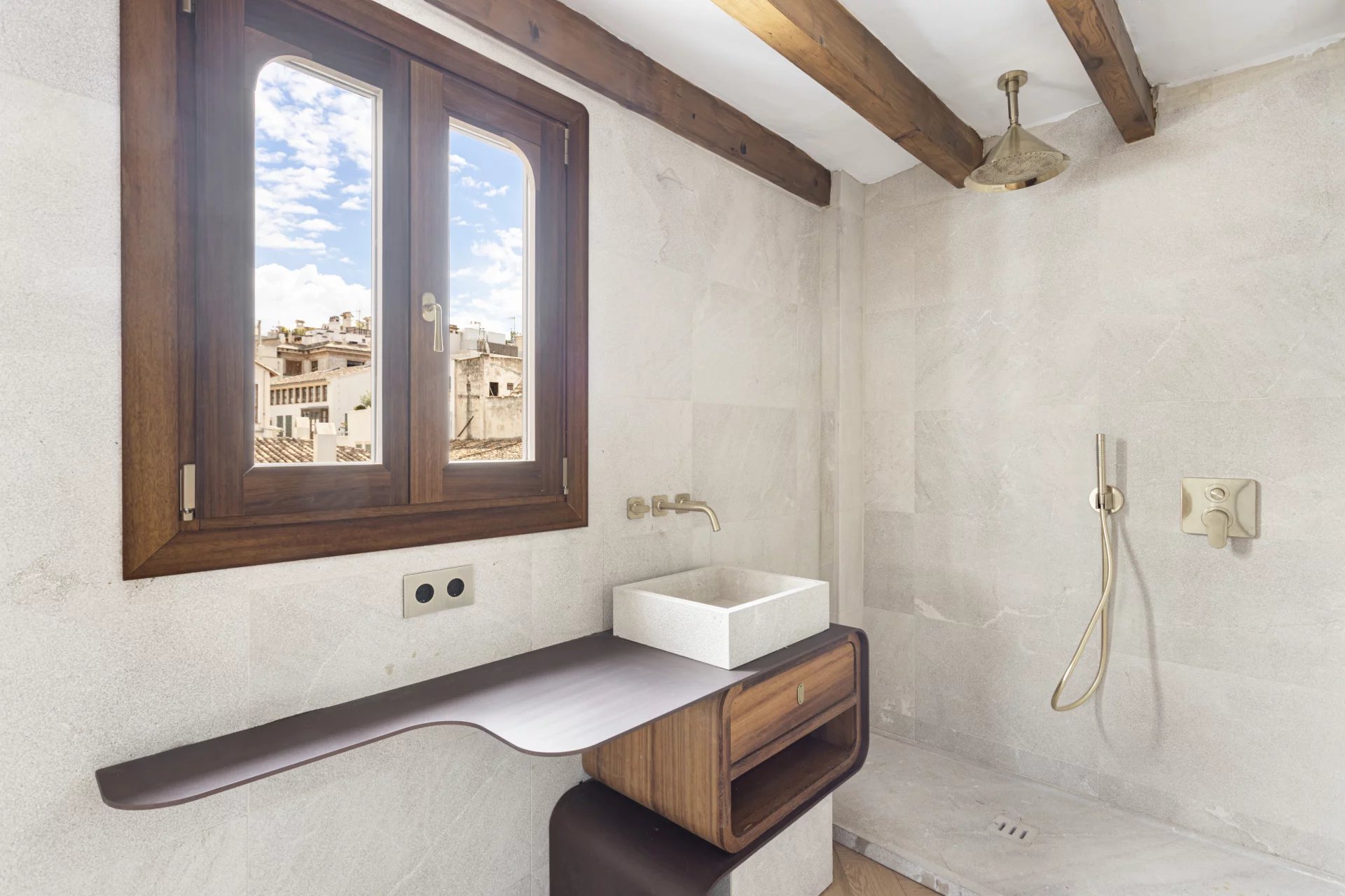 For sale exclusive refurbished duplex penthouse with a terrace in the old town of Palma de Mallorca, located in the prestigious Calle Brossa, next to the emblematic church of Sant Nicolás. This unique property combines historical charm with contemporary design and noble materials, offering a sophisticated living experience in one of the most sought-after areas in the centre of Palma. With a constructed area of 134 m² and a spectacular private terrace of 28 m², this luxury penthouse is distributed over two floors and has been completely renovated with high-quality finishes. The living-dining room, spacious and bright, is perfectly integrated with a modern and functional kitchen. It has two double bedrooms with built-in wardrobes and two complete bathrooms, as well as a third multi-purpose room ideal as an office, library or third bedroom, which has its toilet and direct access to the terrace which is a true urban oasis, with pre-installation for an outdoor kitchen, perfect for enjoying the Mediterranean climate all year round. All the interior and exterior carpentry has been made of teak wood, providing elegance, durability, and character, while the solid wood floors in all the rooms provide a warm and welcoming aesthetic. The integral refurbishment has included double glazing, air conditioning, hot/cold, and an optimised layout to make the most of natural light. This exclusive property is ideal both as a permanent residence and as a high-end investment property in Palma de Mallorca, thanks to its privileged location in the heart of the old town, surrounded by history, culture, shops, and restaurants. An authentic architectural jewel with Mallorcan soul and contemporary design, perfect for those looking to buy a penthouse in Palma centre with a terrace and high quality.