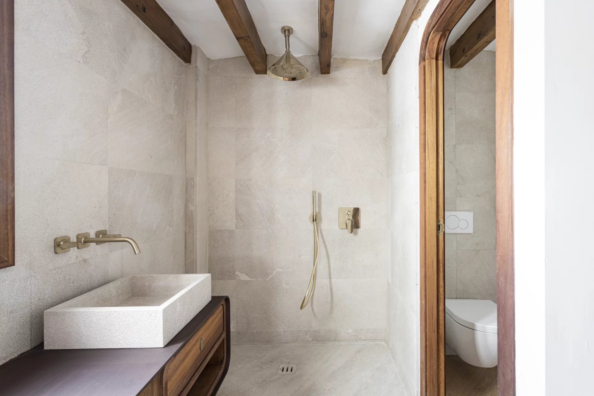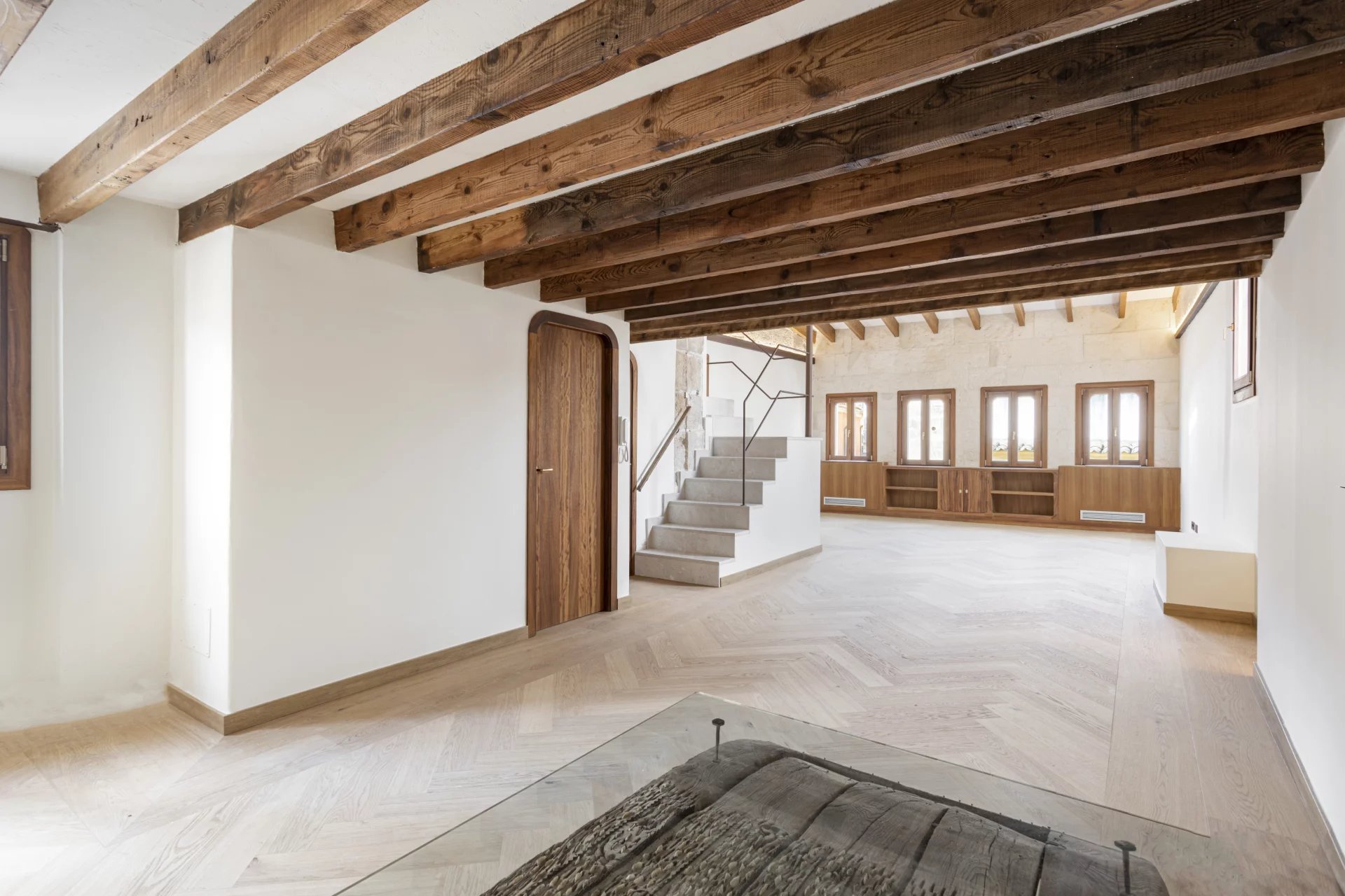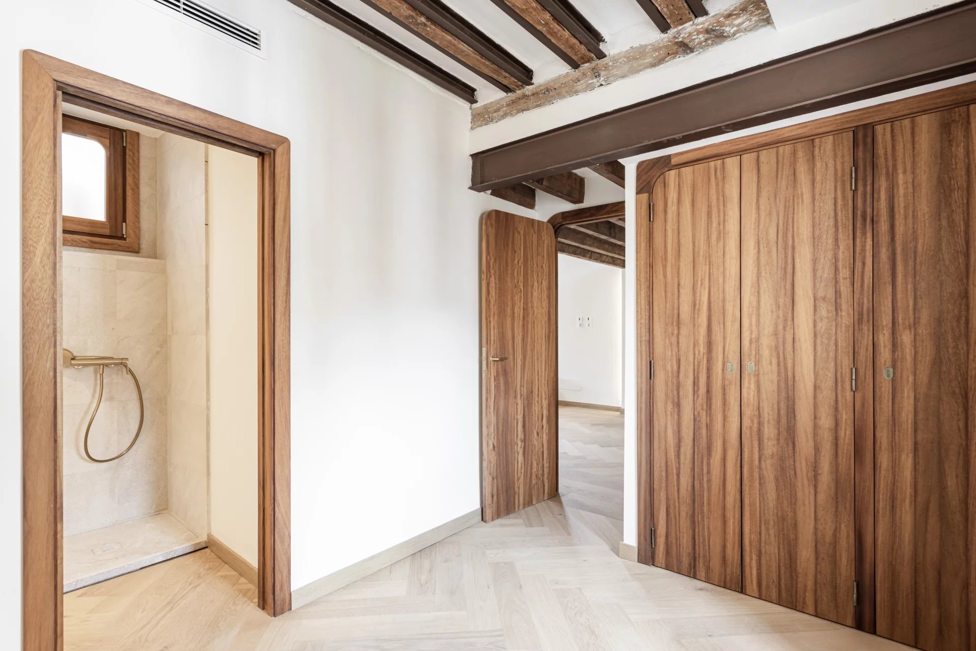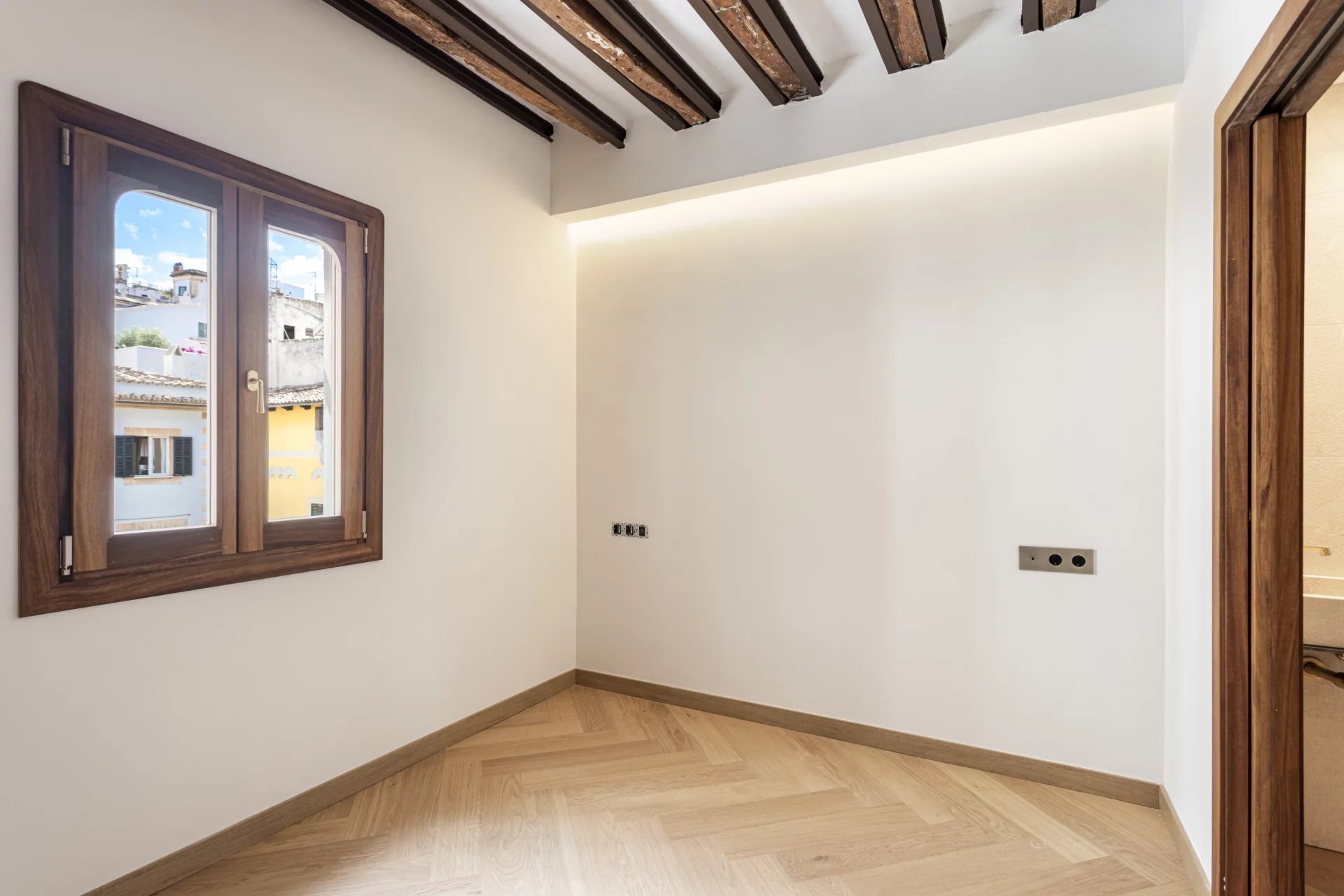 For sale exclusive refurbished duplex penthouse with a terrace in the old town of Palma de Mallorca, located in the prestigious Calle Brossa, next to the emblematic church of Sant Nicolás. This unique property combines historical charm with contemporary design and noble materials, offering a sophisticated living experience in one of the most sought-after areas in the centre of Palma. With a constructed area of 134 m² and a spectacular private terrace of 28 m², this luxury penthouse is distributed over two floors and has been completely renovated with high-quality finishes. The living-dining room, spacious and bright, is perfectly integrated with a modern and functional kitchen. It has two double bedrooms with built-in wardrobes and two complete bathrooms, as well as a third multi-purpose room ideal as an office, library or third bedroom, which has its toilet and direct access to the terrace which is a true urban oasis, with pre-installation for an outdoor kitchen, perfect for enjoying the Mediterranean climate all year round. All the interior and exterior carpentry has been made of teak wood, providing elegance, durability, and character, while the solid wood floors in all the rooms provide a warm and welcoming aesthetic. The integral refurbishment has included double glazing, air conditioning, hot/cold, and an optimised layout to make the most of natural light. This exclusive property is ideal both as a permanent residence and as a high-end investment property in Palma de Mallorca, thanks to its privileged location in the heart of the old town, surrounded by history, culture, shops, and restaurants. An authentic architectural jewel with Mallorcan soul and contemporary design, perfect for those looking to buy a penthouse in Palma centre with a terrace and high quality.