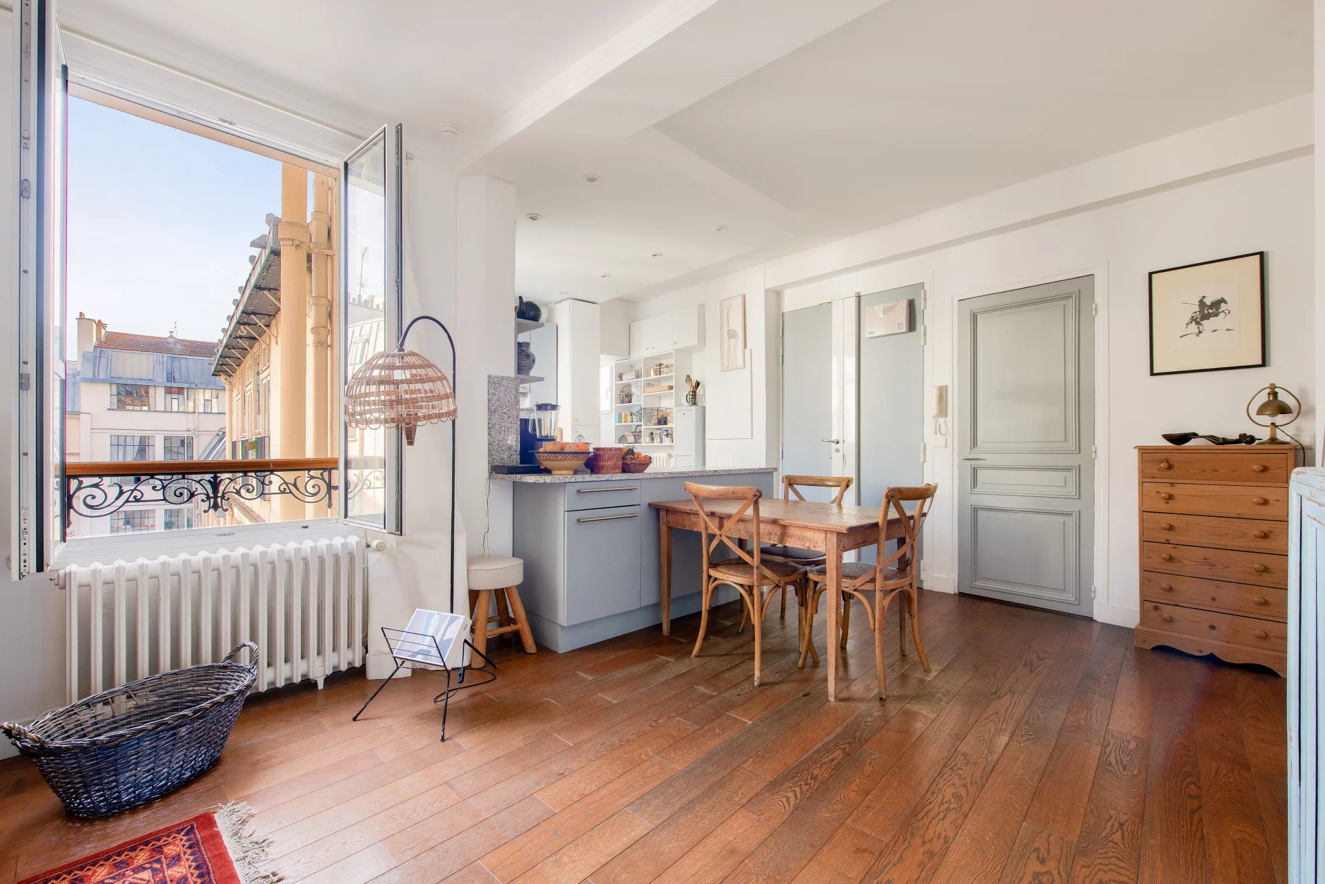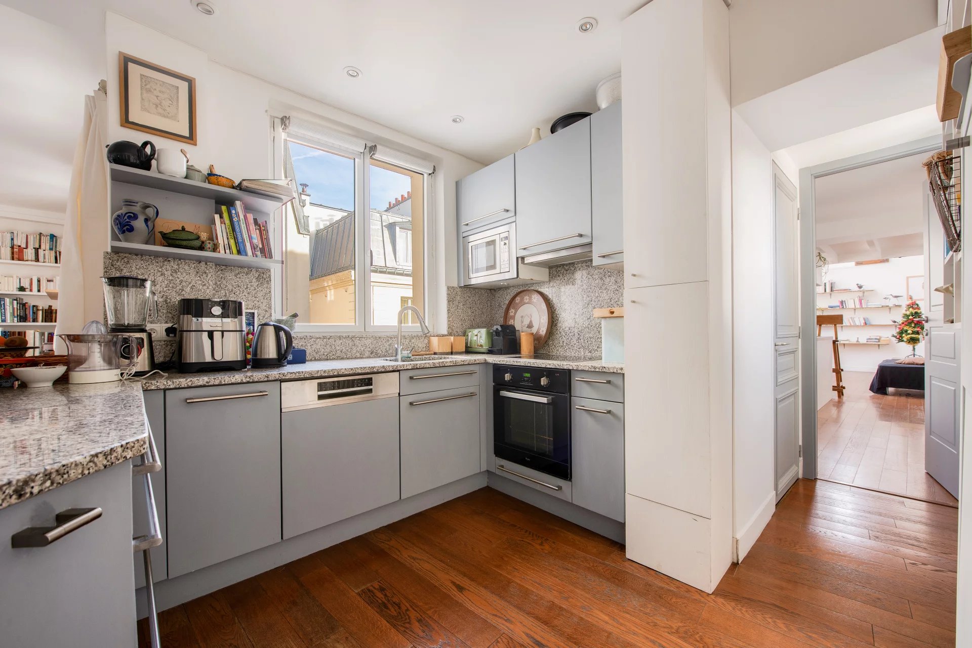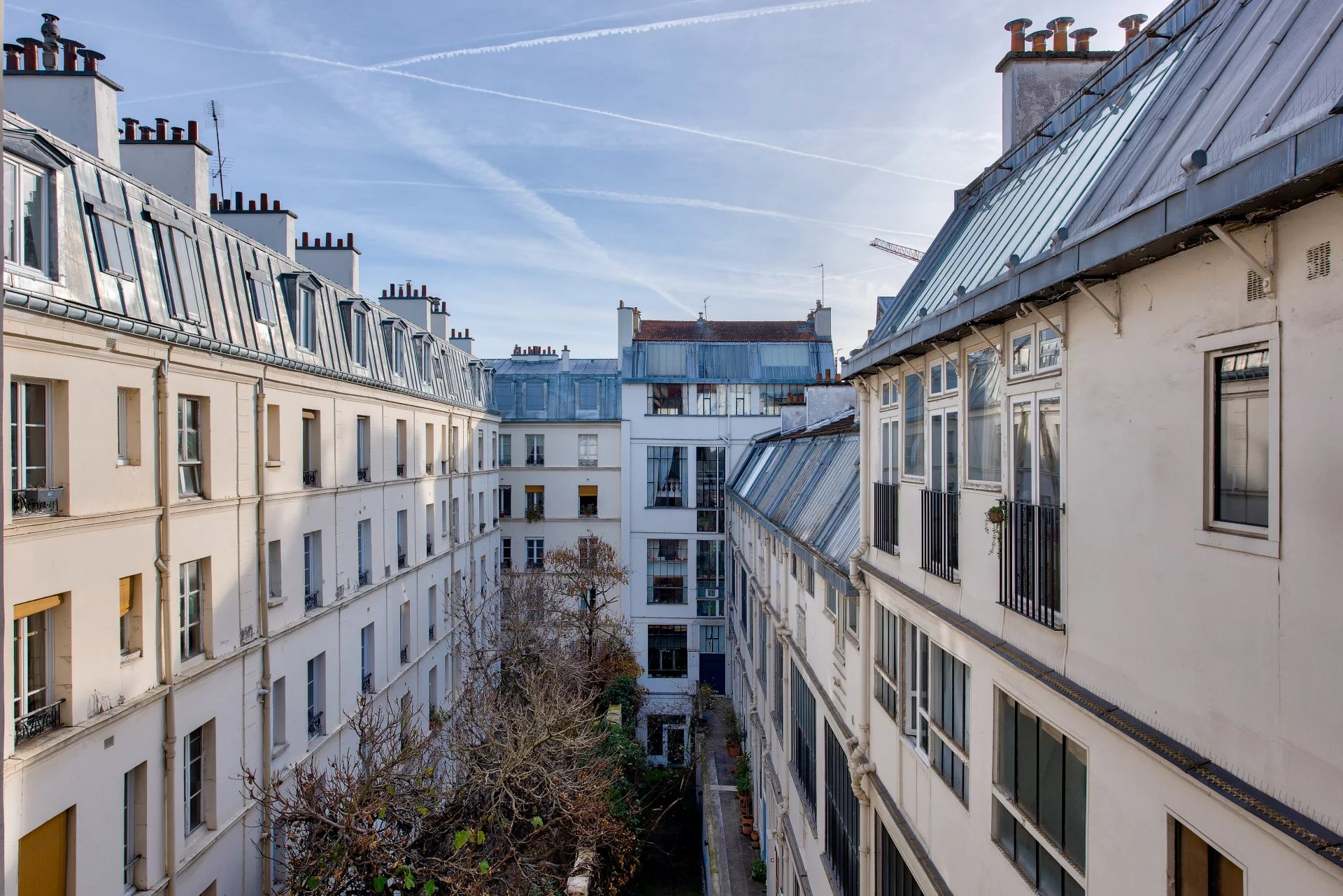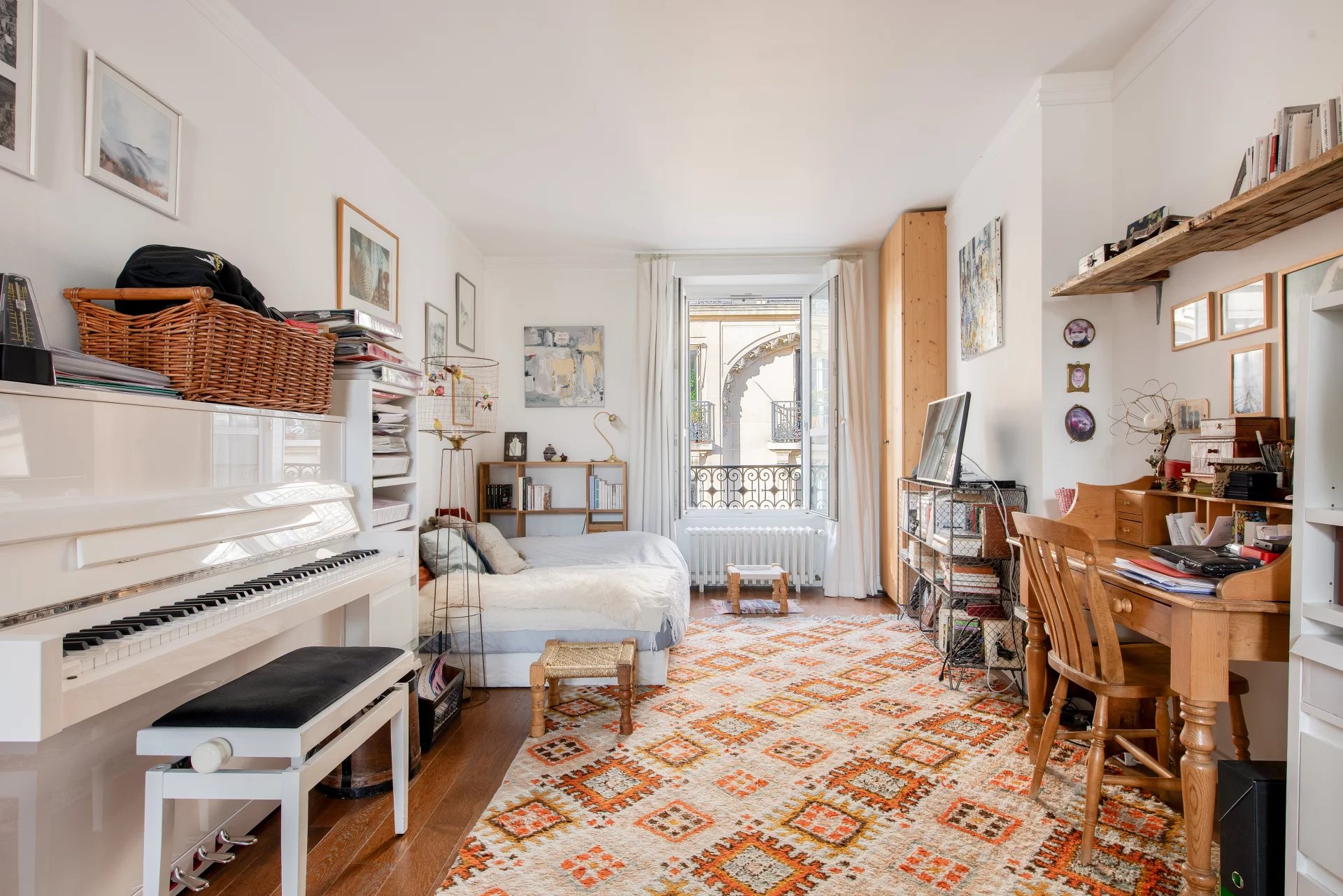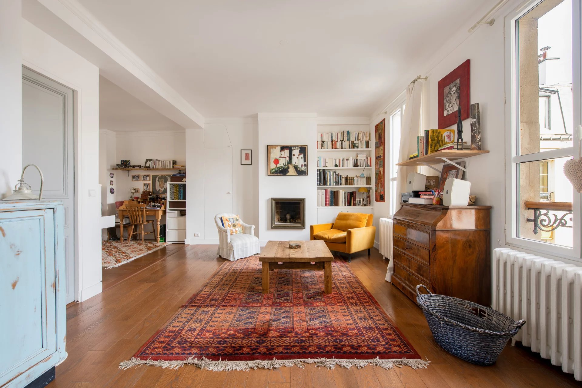 Located on the edge of the 6th arrondissement, on the legendary Rue Campagne Première—once a favorite gathering place for artists such as Modigliani, Giacometti, Kandinsky, and Miró—on the 4th floor with elevator of a beautiful building constructed in 1860, we offer a family apartment of 156.10 sqm (Carrez law), or 159.88 sqm of total floor area.