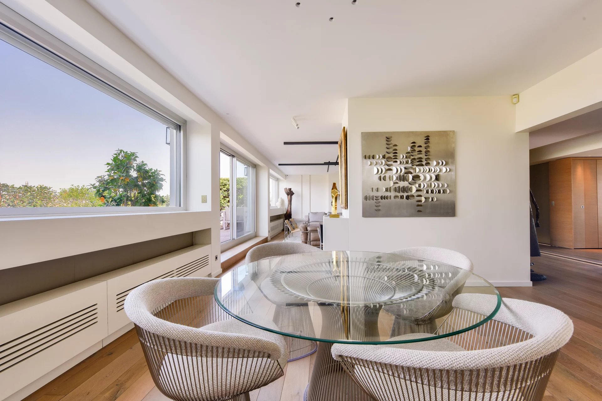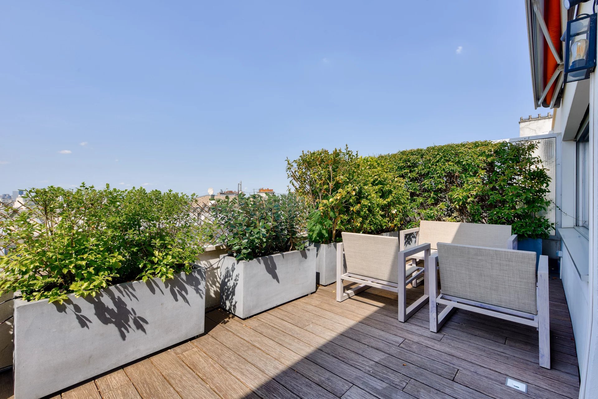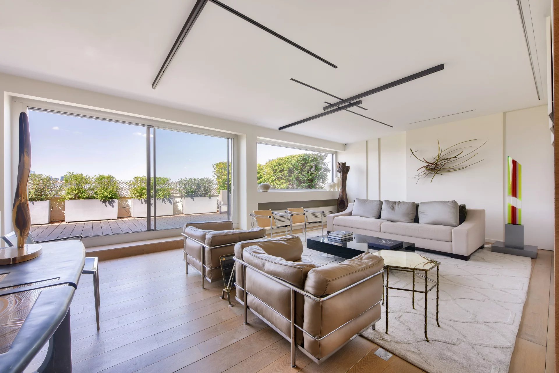 - A 52 m² living and dining room opening onto a large 40 m² terrace planted with trees