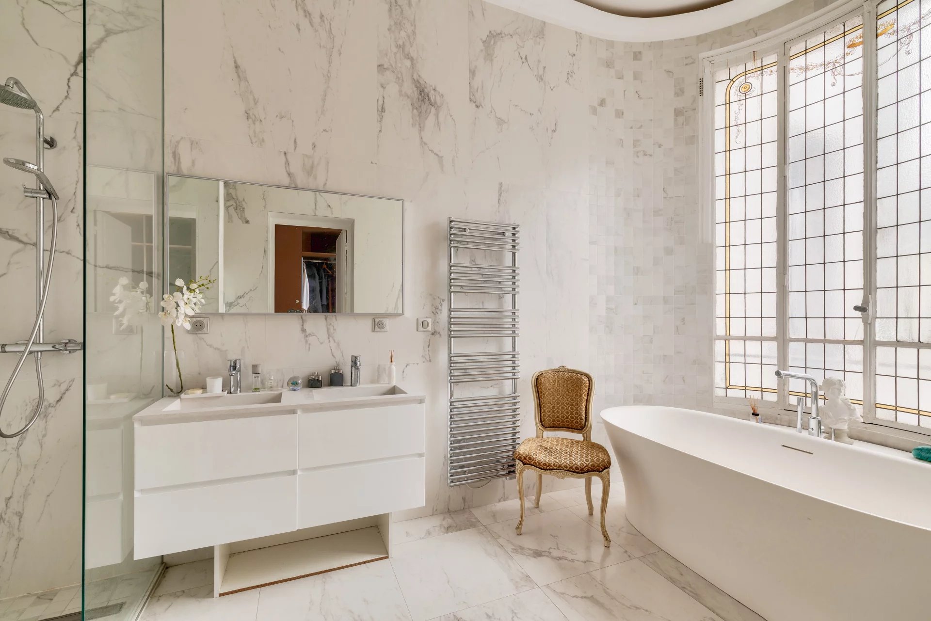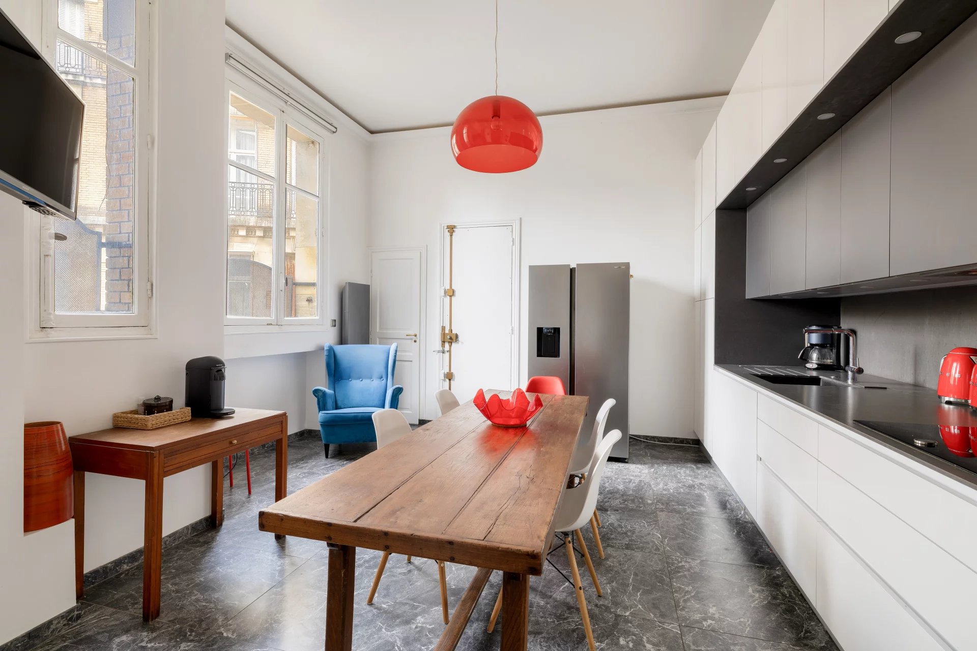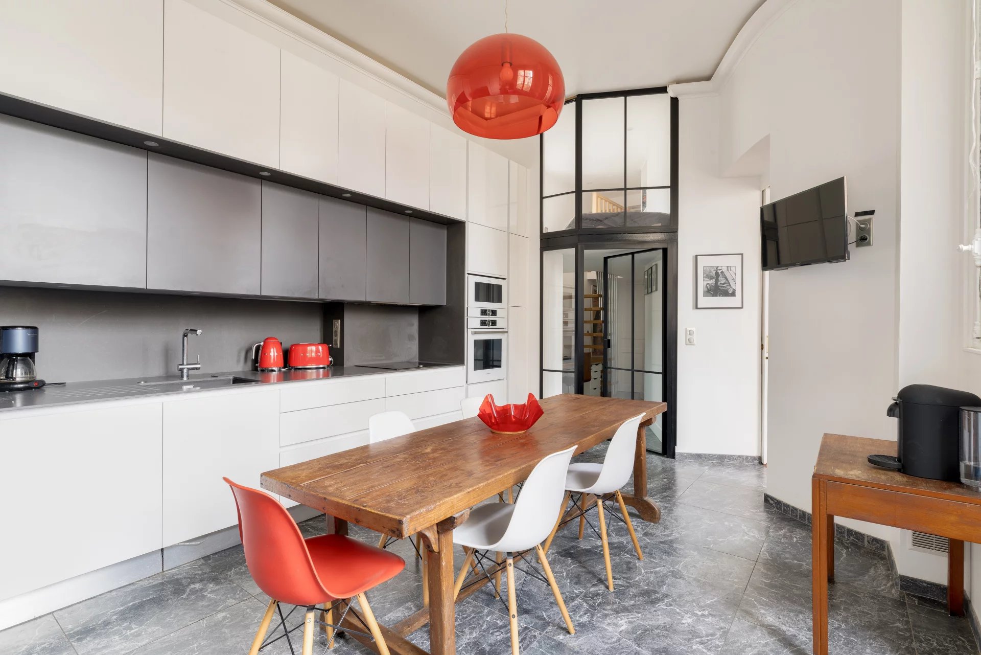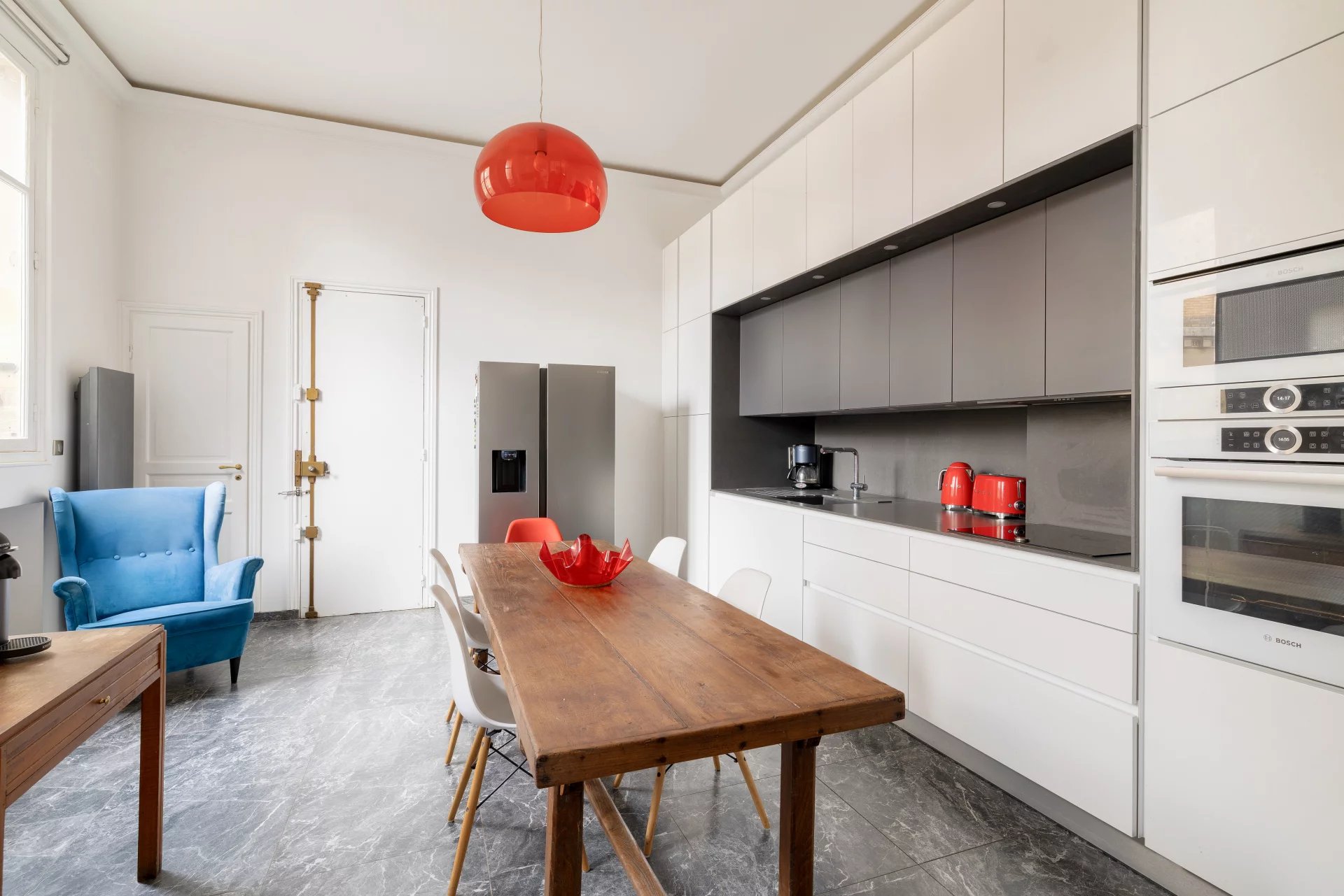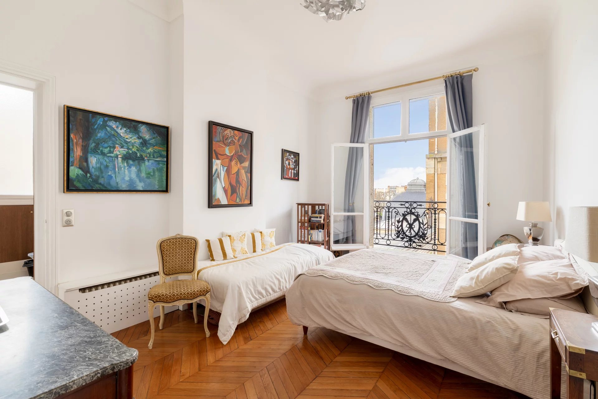 Very spacious apartment with over 3.60 m high ceilings, very bright, in absolute calm with unobstructed views from the living room and master bedroom.