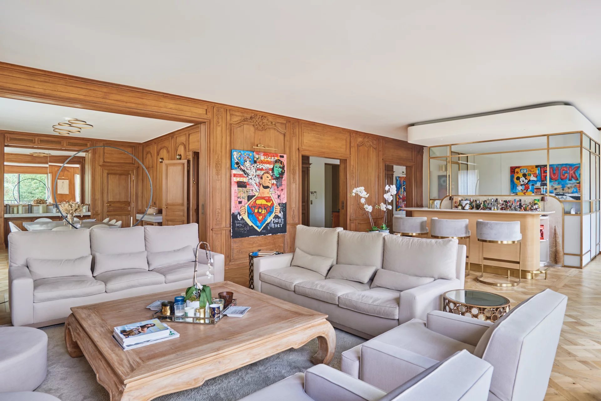 Discover an exquisite living experience in the prestigious Muette neighborhood of Paris 16th. This stunning apartment spans an expansive 326 m² and boasts an ideal setting for luxurious city living. Designed with sophistication, every detail of this home reflects elegance and comfort. The well-appointed residence features five spacious bedrooms, perfect for family and guests, and a total of seven rooms that provide ample space for both relaxation and entertainment.