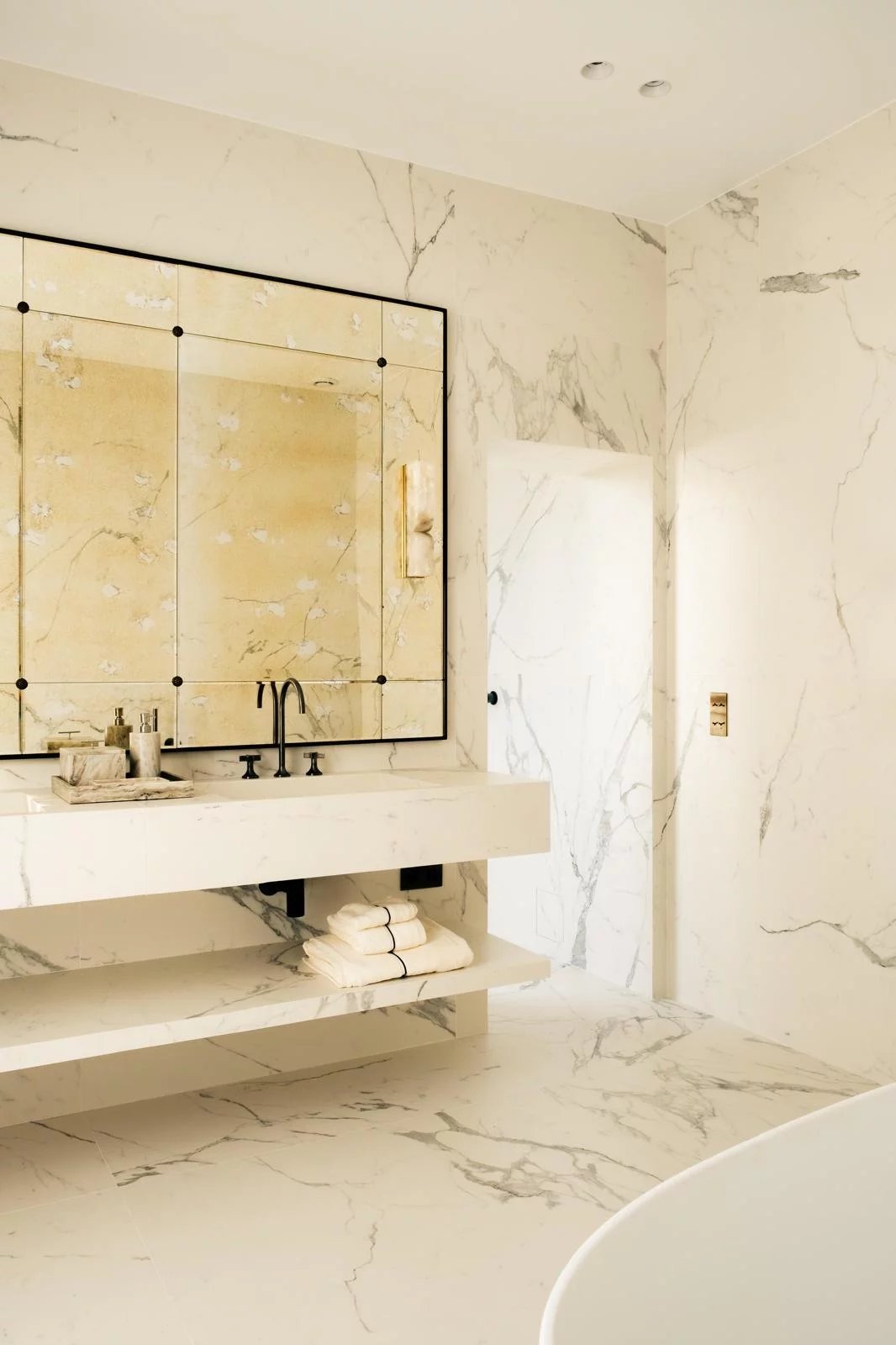 The night area features a master suite with custom-made dressing rooms and a refined en-suite bathroom, along with two spacious bedrooms, each with fitted wardrobes and elegant shower rooms.