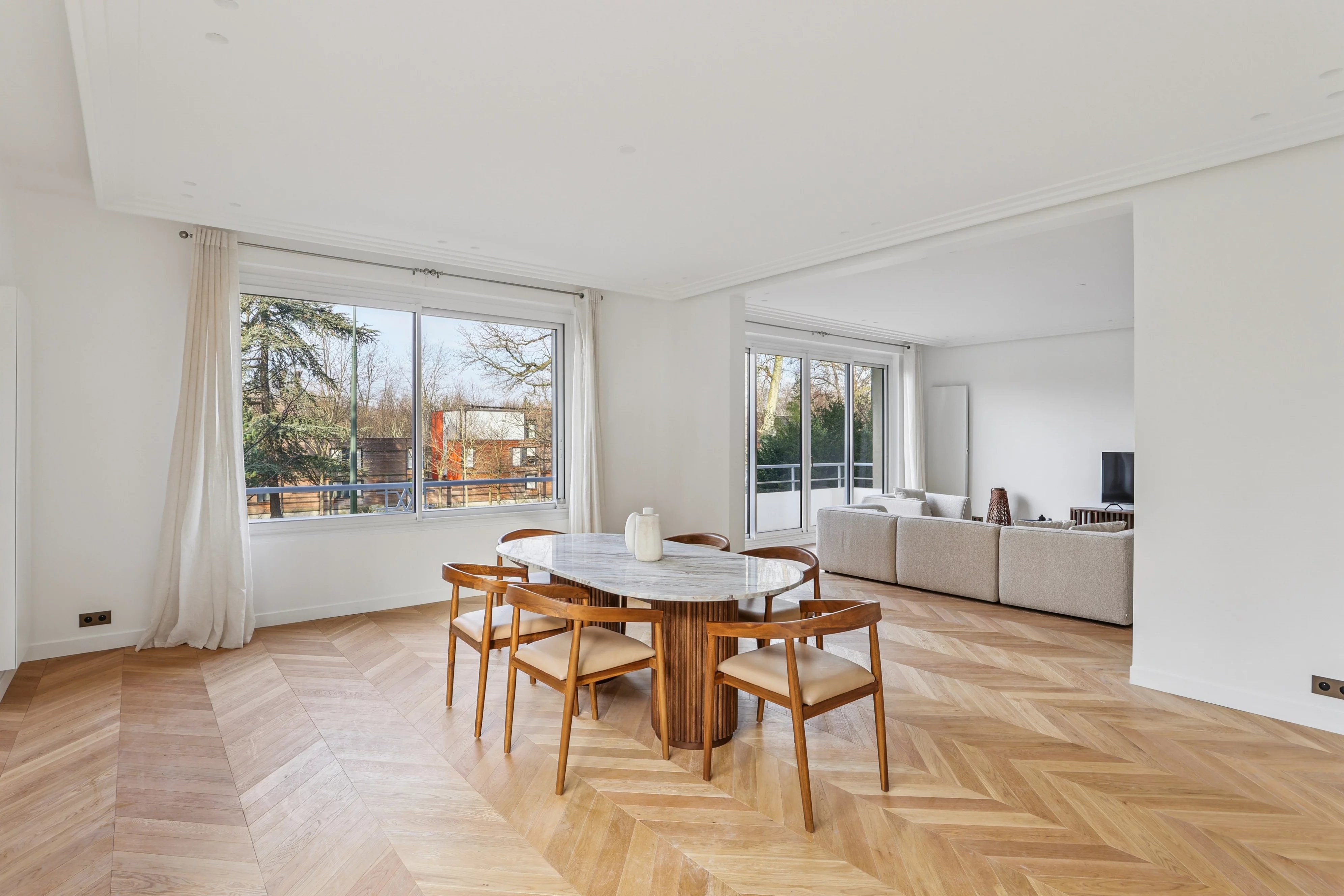 Entirely renovated with high-quality materials, it benefits from an unobstructed view and remarkable luminosity, surrounded by greenery bringing calm and freshness to everyday life.