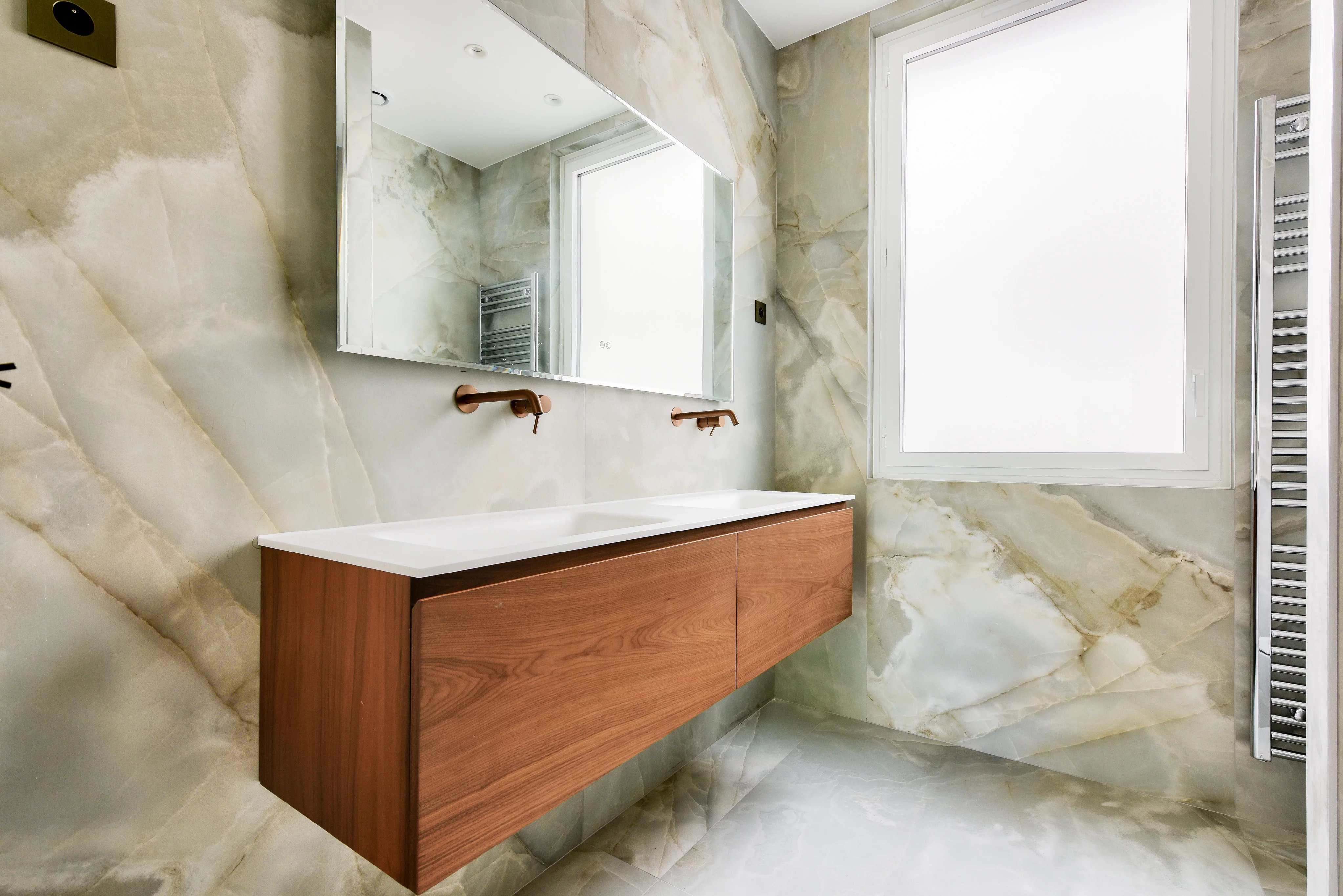 Entirely renovated with top-quality materials, it enjoys unobstructed views and remarkable brightness, surrounded by greenery bringing calm and freshness to everyday life.
