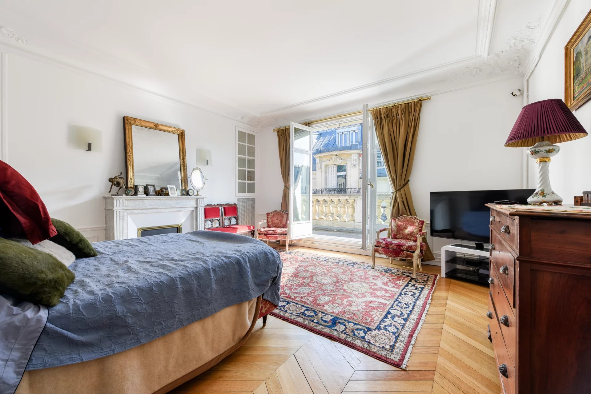 The apartment, in good condition, has retained its original decorative features (parquet floors, moldings and fireplaces). It has air-conditioning in the bedrooms and four windows.